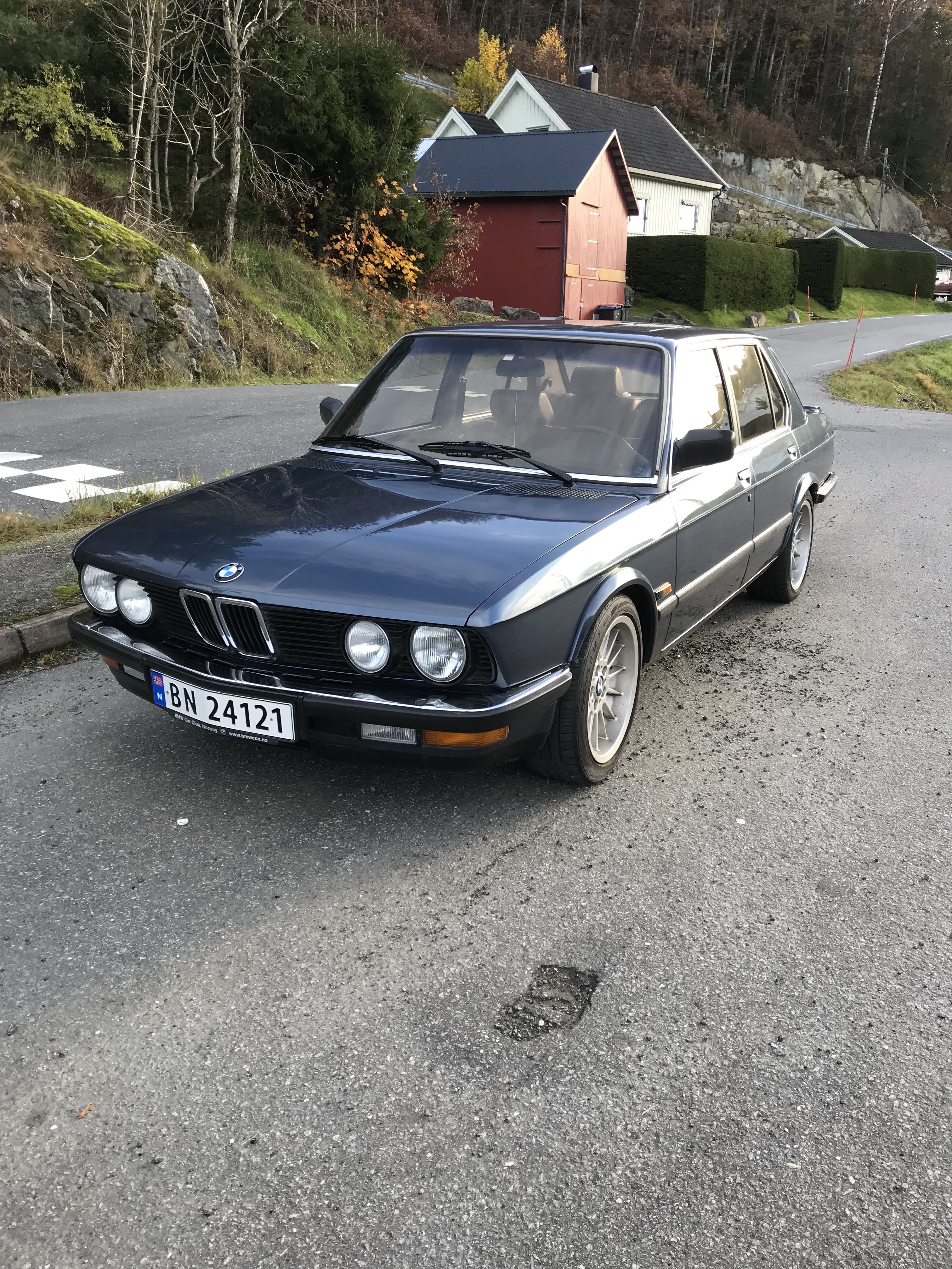 sveigis Skrevet Oktober 12 Forfatter Skrevet Oktober 12 En stund siden sist her ser jeg så på tide med en liten oppdatering 😊 E28 skal i hvert øyeblikk settes bort for i år og idag har jeg brukt store deler av dagen på og få vasket og klargjort den . Hadde håpet på en sjåfør før onsdag faktisk . Hvertfall så står den klar : Det prelles enda : Ferdig tørket : Front: Nå er det meste på stell her og igrunn klar for og settes bort : Så hadde jeg besøk av en entusiast her igår ettermiddag . Har noe skog som skal bort og hadde en på besøk og jeg visste jeg hadde sett han før for mange årsiden .😊 Hvertfall han var jo oppslukt i e28en og måtte både sitte og starte . Ha sier at han hadde hatt en 1980 modell e12 528 i fra 1991 til 1993 . Den var brun med soltak .Da spør jeg han om han kjørte mye rundt i Arendal sentrum på den tiden og om der var 16 toms Rial ,noe han kunne bekrefte det og 😅 Den bilen husker jeg for den var syyyyykt deilig . Han som kjøpte den lakket den rød og ble levert til vrak på slutten av 90 tallet 😊 Morro og treffe entusiaster . Sett på en frontspoiler ,samt 16 toms rial på denne så var den lik : Fine biler 😊 Og siden e28 skal bort ,kommer denne : Og det gleder jeg meg til helt ærlig og den skal brukes fremover . Kjerringa får ta den på jobb nå etterhvert og se at den fungerer 😊 Dusy, eivi91, Møkki og 2 andre reagerte på dette 5