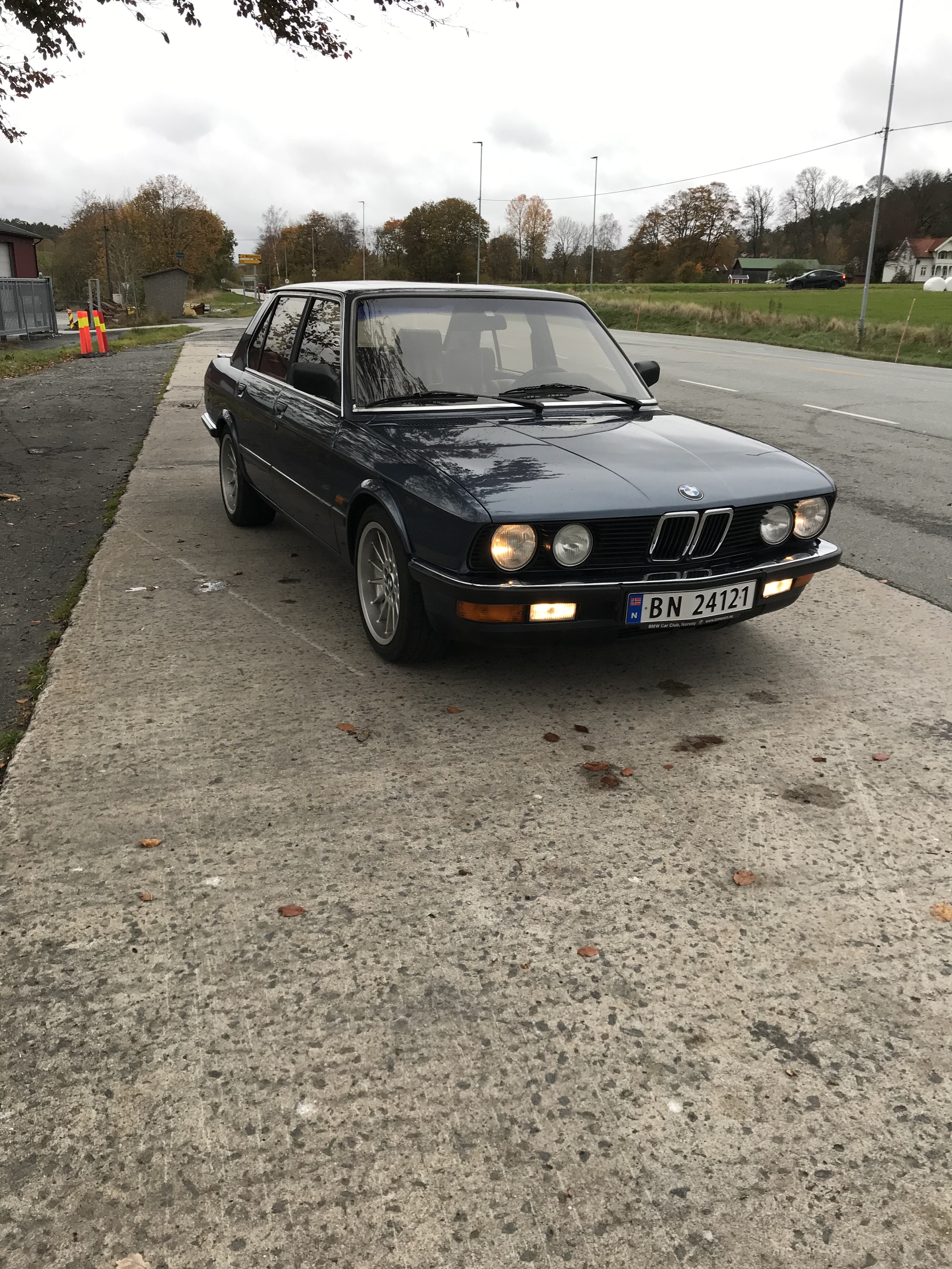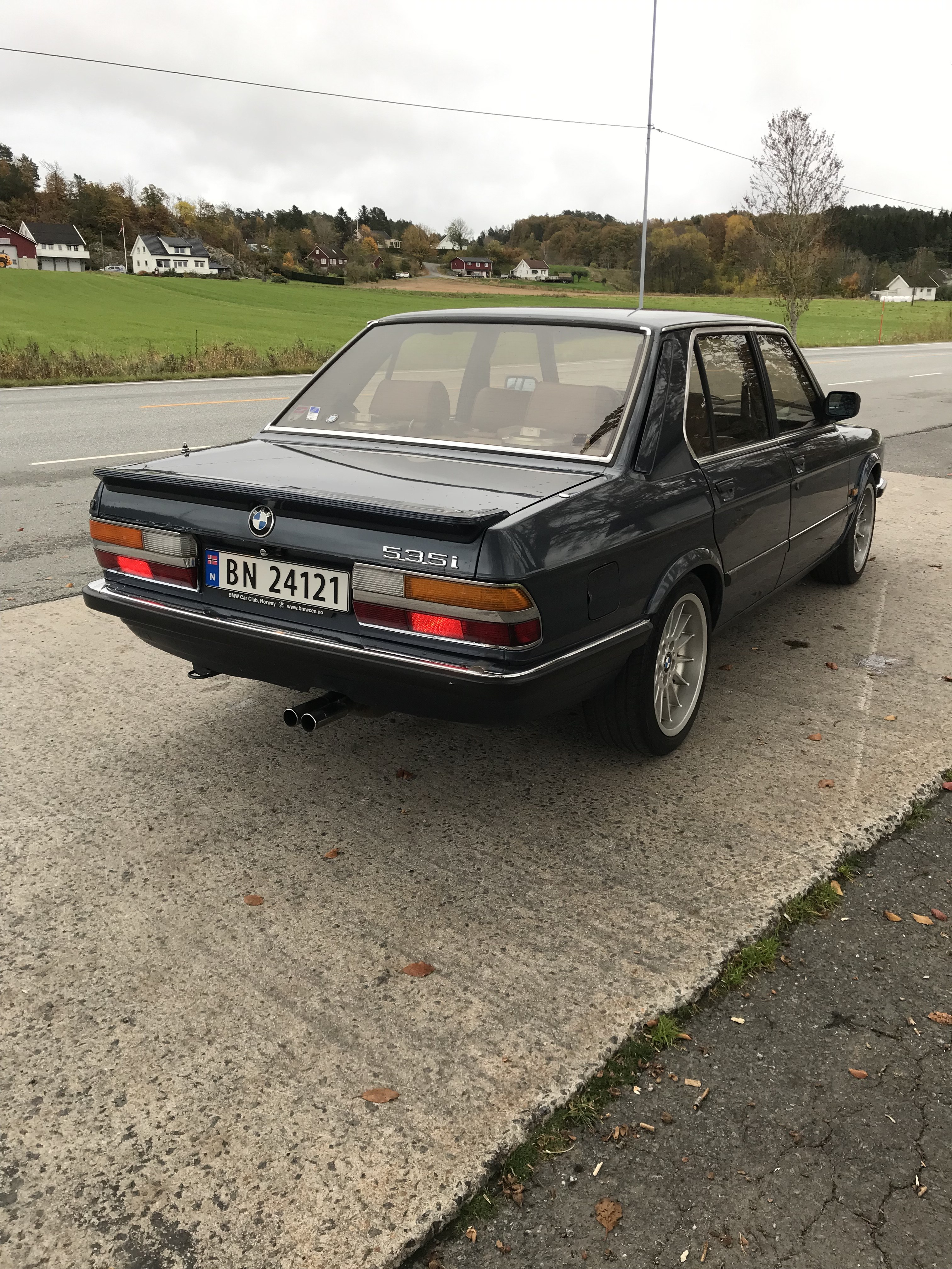 sveigis Skrevet Oktober 12 Forfatter Skrevet Oktober 12 En stund siden sist her ser jeg så på tide med en liten oppdatering 😊 E28 skal i hvert øyeblikk settes bort for i år og idag har jeg brukt store deler av dagen på og få vasket og klargjort den . Hadde håpet på en sjåfør før onsdag faktisk . Hvertfall så står den klar : Det prelles enda : Ferdig tørket : Front: Nå er det meste på stell her og igrunn klar for og settes bort : Så hadde jeg besøk av en entusiast her igår ettermiddag . Har noe skog som skal bort og hadde en på besøk og jeg visste jeg hadde sett han før for mange årsiden .😊 Hvertfall han var jo oppslukt i e28en og måtte både sitte og starte . Ha sier at han hadde hatt en 1980 modell e12 528 i fra 1991 til 1993 . Den var brun med soltak .Da spør jeg han om han kjørte mye rundt i Arendal sentrum på den tiden og om der var 16 toms Rial ,noe han kunne bekrefte det og 😅 Den bilen husker jeg for den var syyyyykt deilig . Han som kjøpte den lakket den rød og ble levert til vrak på slutten av 90 tallet 😊 Morro og treffe entusiaster . Sett på en frontspoiler ,samt 16 toms rial på denne så var den lik : Fine biler 😊 Og siden e28 skal bort ,kommer denne : Og det gleder jeg meg til helt ærlig og den skal brukes fremover . Kjerringa får ta den på jobb nå etterhvert og se at den fungerer 😊 viggo E34, eivi91, Dusy og 1 annen reagerte på dette 4
