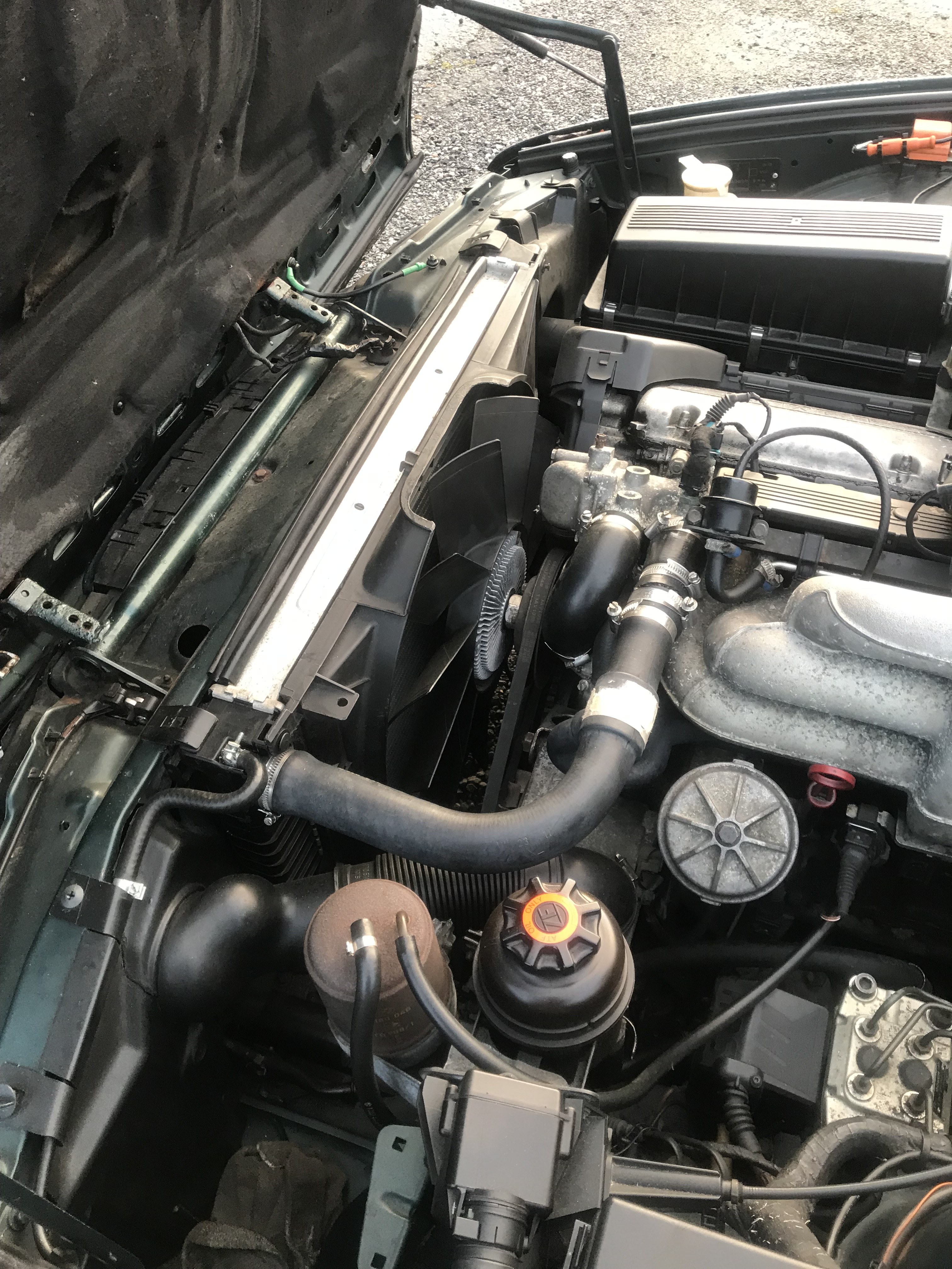 sveigis Skrevet Lørdag kl. 08:56 Forfatter Skrevet Lørdag kl. 08:56 Da fikk jeg startet helgen med brask og bram igår 😊 Var ute og kjørte og plutselig begynte bil og jukse og det noe så ekstremt og . Var akkurat som om du tok av fordelerlokk og satte det på . Det snodige var at det begynte å ryke noe voldsomt venstre side mot vindu ,og selvsagt temp begynte å bevege seg !Typisk ikke sant ? Heldigvis var jeg i nærheten av hjemme og parkerte . sees ikke på bilde men her er det grått av damp:• Og av med dekslet: Og her er synderen : Rett og slett en slange som var hoppet av .😩😩 Og jeg tenker at grunn til akutt fjusking er jo denne slangen har jo pumpet ut vann overalt ved sikringsboks og selve kontakt til alt det viktige ,men fant jo ut hva det var 😊 Hvertfall her var det bare å sette på slange og skru den til . Men hadde jo ikke kjølevæske ,da er det greit å ha ei datter i rekivista avd . Ringte henne og hun kom hjem sporenstreks med frostvæske : Men jeg gadd ikke fylle opp noe nå da jeg har ny radiator liggende . Så tar alt til uken mest sannsynlig mandag ,så blir en kjølevanns oppdatering da . Skal og da bytte noe annet småting samtidig . Idag har jeg andre planer så no e34 today .😊😊 E.C., Olaandref, Ampera og 1 annen reagerte på dette 4