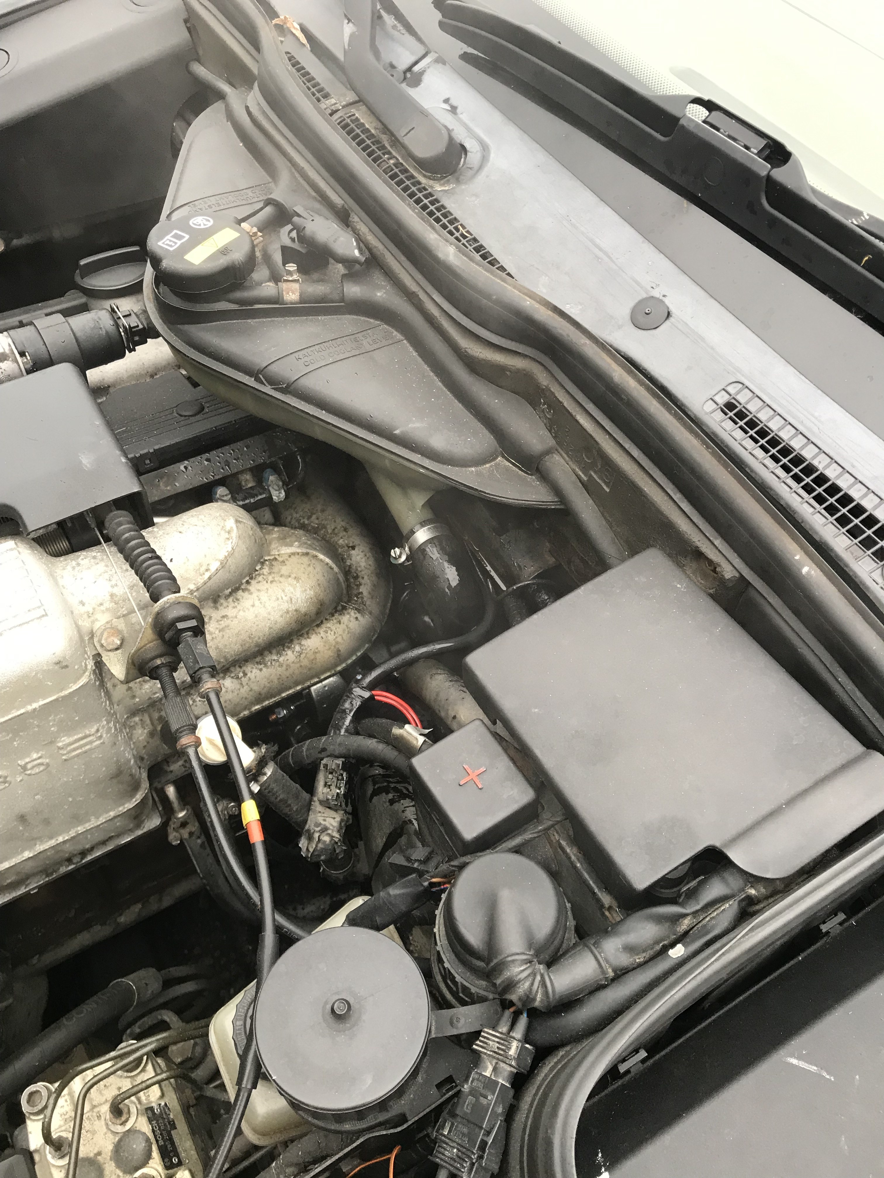 sveigis Skrevet 4 timer siden Forfatter Skrevet 4 timer siden Da fikk jeg startet helgen med brask og bram igår 😊 Var ute og kjørte og plutselig begynte bil og jukse og det noe så ekstremt og . Var akkurat som om du tok av fordelerlokk og satte det på . Det snodige var at det begynte å ryke noe voldsomt venstre side mot vindu ,og selvsagt temp begynte å bevege seg !Typisk ikke sant ? Heldigvis var jeg i nærheten av hjemme og parkerte . sees ikke på bilde men her er det grått av damp:• Og av med dekslet: Og her er synderen : Rett og slett en slange som var hoppet av .😩😩 Og jeg tenker at grunn til akutt fjusking er jo denne slangen har jo pumpet ut vann overalt ved sikringsboks og selve kontakt til alt det viktige ,men fant jo ut hva det var 😊 Hvertfall her var det bare å sette på slange og skru den til . Men hadde jo ikke kjølevæske ,da er det greit å ha ei datter i rekivista avd . Ringte henne og hun kom hjem sporenstreks med frostvæske : Men jeg gadd ikke fylle opp noe nå da jeg har ny radiator liggende . Så tar alt til uken mest sannsynlig mandag ,så blir en kjølevanns oppdatering da . Skal og da bytte noe annet småting samtidig . Idag har jeg andre planer så no e34 today .😊😊 Marius2002, Olaandref, E.C. og 1 annen reagerte på dette 4