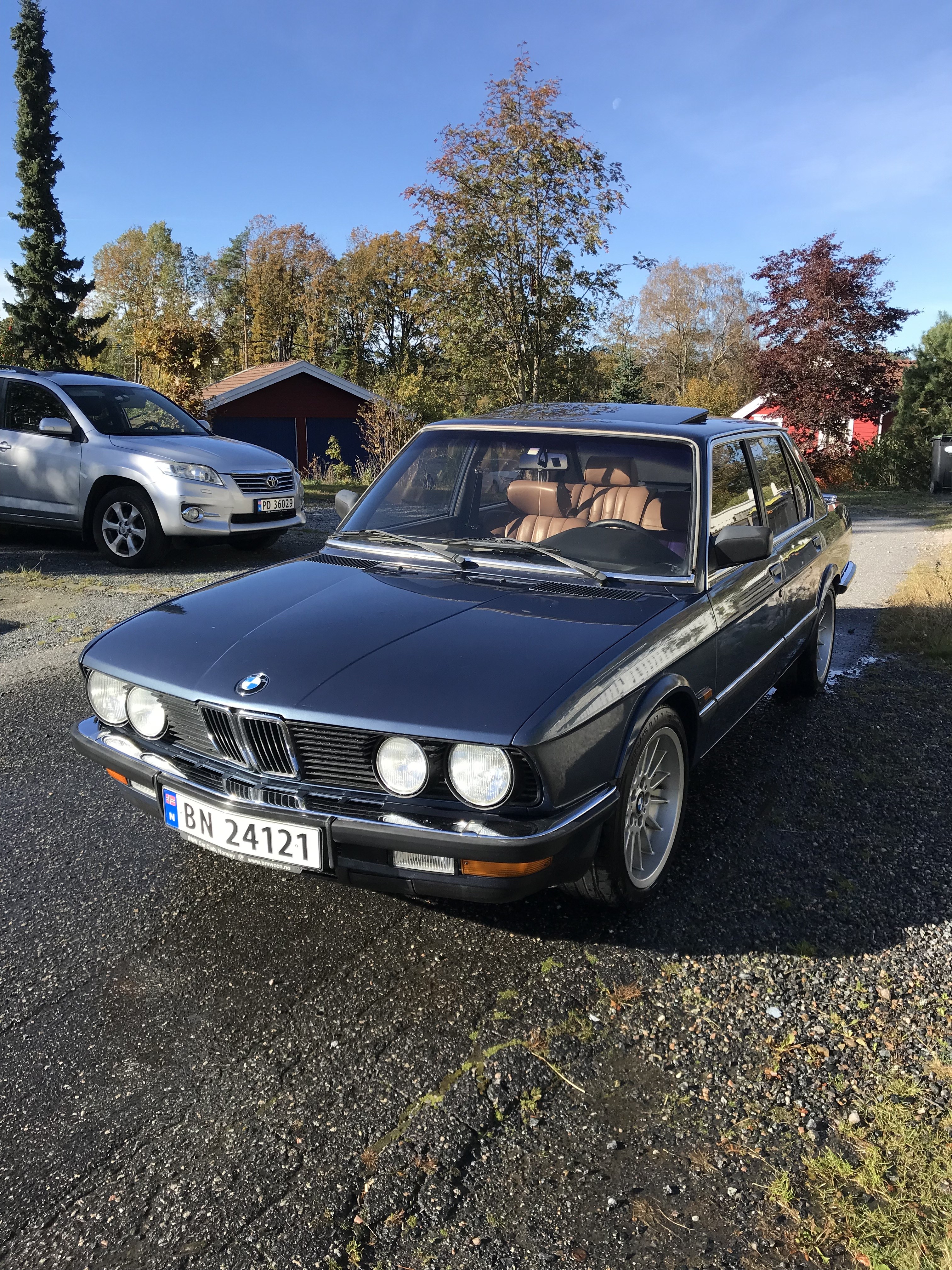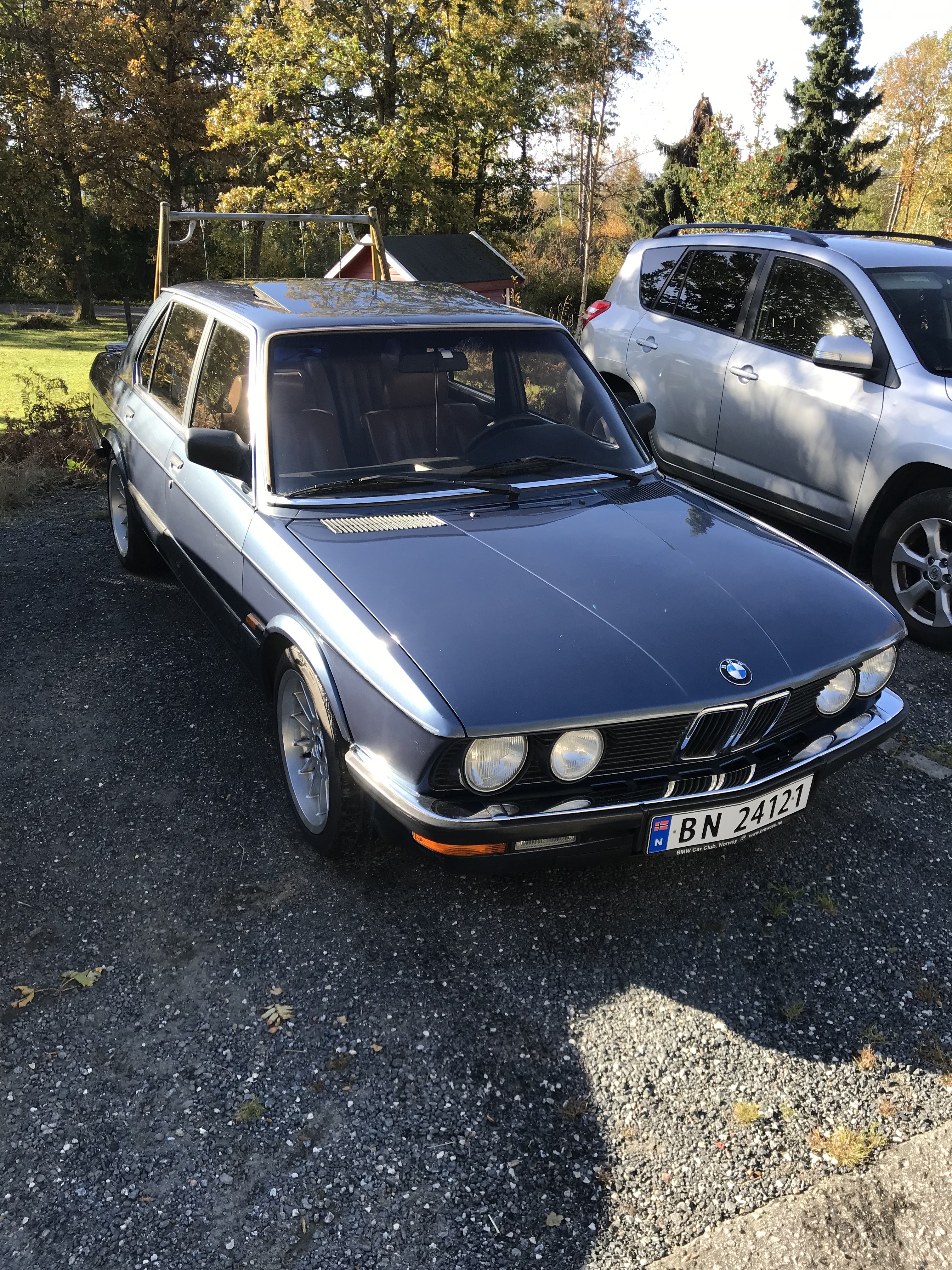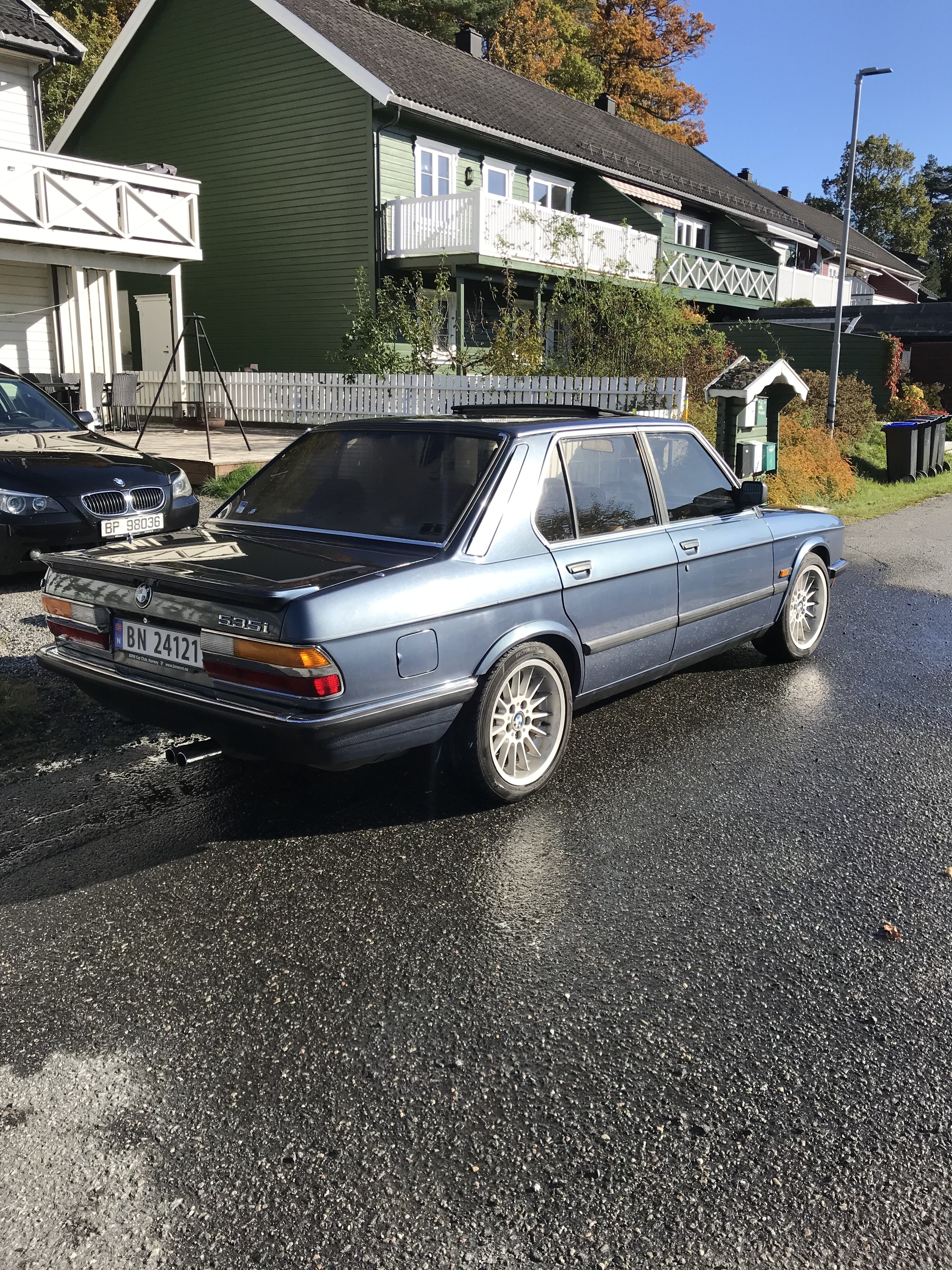 sveigis Skrevet 6 timer siden Forfatter Skrevet 6 timer siden En stund siden sist her ser jeg så på tide med en liten oppdatering 😊 E28 skal i hvert øyeblikk settes bort for i år og idag har jeg brukt store deler av dagen på og få vasket og klargjort den . Hadde håpet på en sjåfør før onsdag faktisk . Hvertfall så står den klar : Det prelles enda : Ferdig tørket : Front: Nå er det meste på stell her og igrunn klar for og settes bort : Så hadde jeg besøk av en entusiast her igår ettermiddag . Har noe skog som skal bort og hadde en på besøk og jeg visste jeg hadde sett han før for mange årsiden .😊 Hvertfall han var jo oppslukt i e28en og måtte både sitte og starte . Ha sier at han hadde hatt en 1980 modell e12 528 i fra 1991 til 1993 . Den var brun med soltak .Da spør jeg han om han kjørte mye rundt i Arendal sentrum på den tiden og om der var 16 toms Rial ,noe han kunne bekrefte det og 😅 Den bilen husker jeg for den var syyyyykt deilig . Han som kjøpte den lakket den rød og ble levert til vrak på slutten av 90 tallet 😊 Morro og treffe entusiaster . Sett på en frontspoiler ,samt 16 toms rial på denne så var den lik : Fine biler 😊 Og siden e28 skal bort ,kommer denne : Og det gleder jeg meg til helt ærlig og den skal brukes fremover . Kjerringa får ta den på jobb nå etterhvert og se at den fungerer 😊 Dusy og Ampera reagerte på dette 2