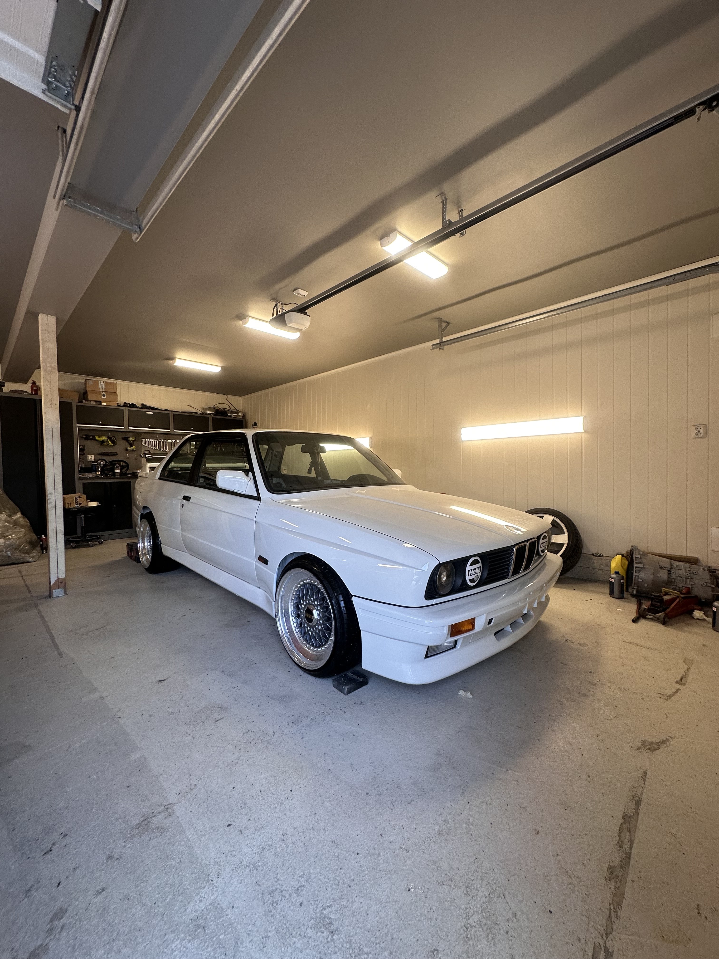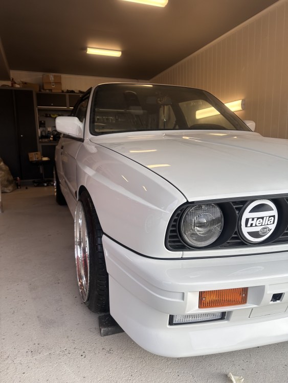 Glenny93 Skrevet Januar 3 Forfatter Skrevet Januar 3 Lenge siden oppdatering her nå, pøser på med litt bilder fra året😃 fikk tak i orginal bakluke, ein del bedre passform en den eg hadde. fekk lakkert opp siste delene før vinteren tilpassing av oljekjøler og vifte. Er ikkje plass til viften på andre siden på grunn av den breie radiatoren. sjekka heila ledningsnette og teipa opp på nytt🤩 montering av blinklys og tåkelys. Alt nytt👌🏻 komm over ett m3 interiør, planen var egentlig å ha skinnseter. Men er så sjeldent det kommer for salg så måtte bare slå til. Liten skade på førerstolen. Så vis noen har trekk til sidestøtter venstre side i anthrazit 0211 er eg interessert skal farge teppe svart, prøvde først tekstilfarge men det funka ikkje. Kjøpte meg vinyl spray og det funka. Men kjøpte for lite😂 Alt av klips nytt sånn står bilen idag, måtte selfølgelig hive på bbs felgane for å se🤩 fekk lagd meg m3 spaceren til hattehyllå, hattehylle og spacer blei trekkt i høytaler stoff👌🏻 ehaugsnes, Ampera, Tony Soprano og 14 andre reagerte på dette 17