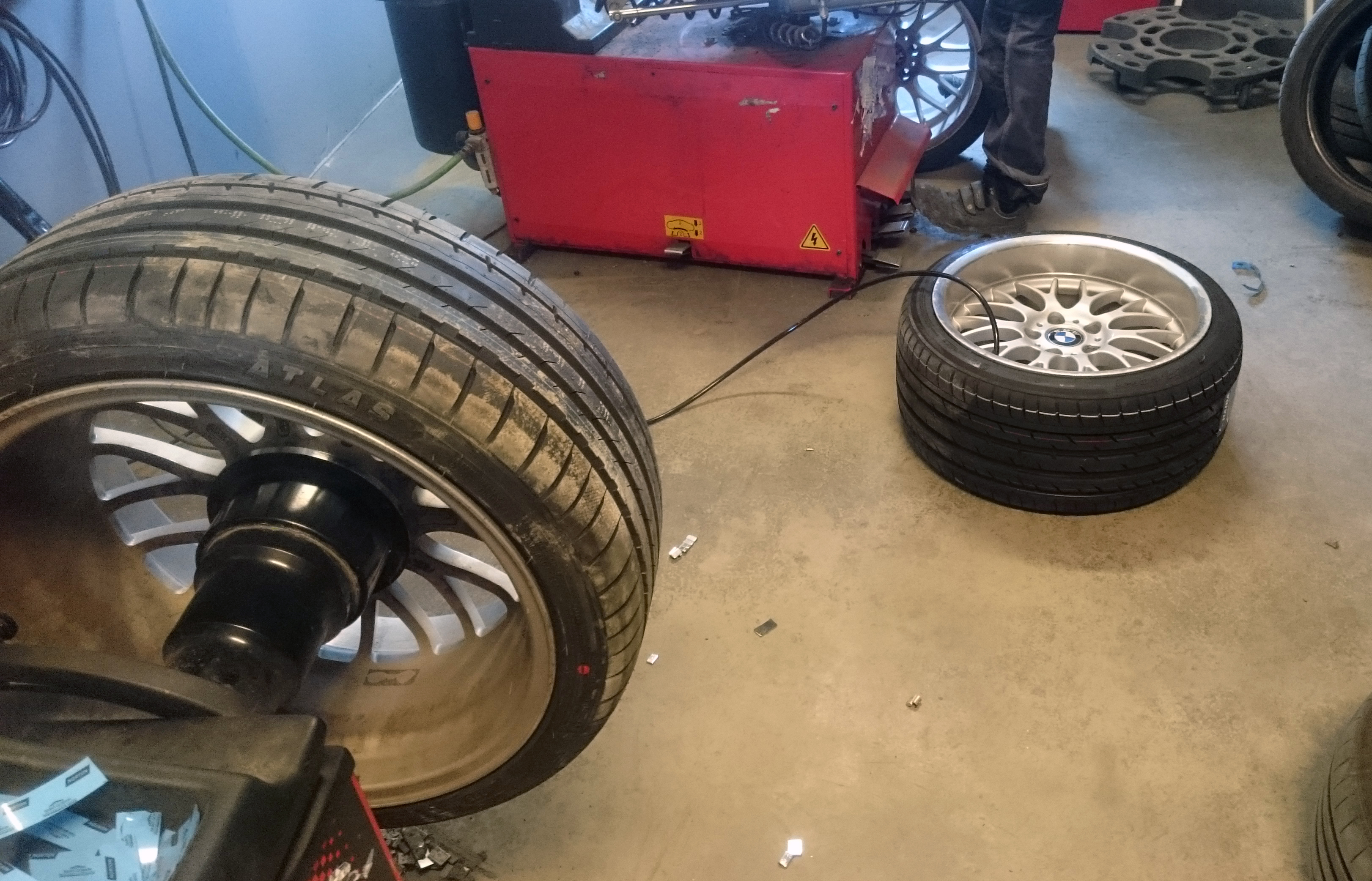 Gabz Skrevet Juni 16, 2016 Forfatter Skrevet Juni 16, 2016 Nye dekk idag! I og med at jeg snart skal inn for godkjenning av senk og felger var det på tide med nye dekk, så fikk ordnet det idag. Ble da Atlas Sport Green i 225/40R18 foran og Haida HD927 bak i 255/35R18, da de hadde fin pris og dette er smaleste godkjente dimensjonene på disse felgene, da de skal godkjennes i vognkortet. Opp og av med hjul: Passe slitne de gamle. Ca 1,5mm mønster igjen bak og 3-ish foran. På med de nye: Framdekk på: Bakdekk på: Montert på bil. Ble fort mye mindre strekk med disse dekkene til tross for samme dim. Men blir nok smalere dekk uansett hvis jeg skal kjøre mye lavere. Ble lite strekk bak og. Menmen, veldig digg med fersk gummi! Utnyttet muligheten når bilen var løftet til å skru opp coiloverne enda litt til, så det er klart til godkjenning. Og slik ble da høyden med 33cm fra nav til bue både foran og bak. Dette skal selvfølgelig ned igjen når bilen er godkjent. Spacere skal også snart skaffes. Har fått time til hjulstilling på mandagen, og godkjenning på tirsdag. Jeg ble visst opptatt på tirsdag, så må få faren min til å ta den med på godkjenning, så håper alt går som smurt! Hostine, Thundercoil, HenrikSolberg og 1 annen reagerte på dette 4