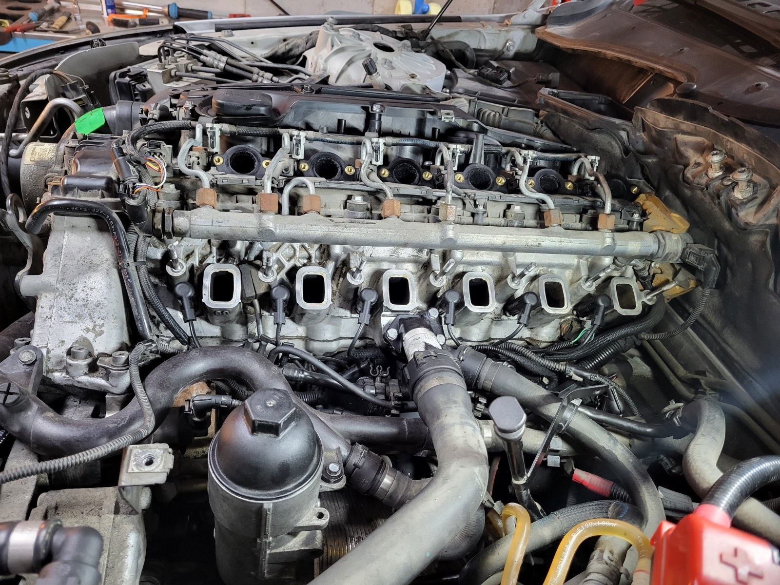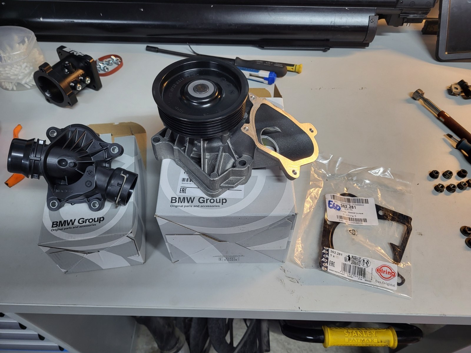 E.C. Skrevet 11 timer siden Forfatter Skrevet 11 timer siden Var en kjedelig avslutning på 2025 med den taklekkasjen, men sett under ett så var ikke året så ille, selv om det (som vanlig) har blitt litt vel mye uplanlagt skruing. Noen høydepunkter fra 2025: E91: Startet sterkt med et fjærbrudd foran, så det ble to nye fjærbein der: Og pga. lekkasje i bakdemper ble det etter hvert to nye dempere bak også: Og to hjullagere bak: Samt, komplette bakbremser inkl. calipere og brekk i løpet av 1,5 år: Forhåpentligvis ingen hengende bremser bak på en god stund. Litt bedre opplegg for musikk ble det også: Så da var det litt greiere å kjøre på tur med henger for å hente ting og tang: Var ingen bananas år for verktøy eller garasjeinnredning, men var et par hydrauliske høydepunkter. Pressa: Og den portable pressa og tilbehøret for hjullager og slikt: E60: Største hendelsen i 2025 må være at det ble en ekstra bil med hengerfeste på tunet, kjedelig å gå glipp av muligheten til å hente spennende ting til garasjen om E91 skulle være i ustand igjen Her pågår det fortsatt en solid vedlikeholdsrunde på løftebukken for å sikre pålitelig fremtidig drift. Er bl.a. en del som byttes preventivt for å ha ro i sjela: E39: Sommerbilen har stort sett ikke gjort annet enn å fungere gjennom 2025, fikk seg et sett nye dekk og litt service. Kjørte bort til Stockholm og tilbake uten problemer: E61: Går litt sakte fremover for "flaggskipet", men det går nå i riktig retning. Quaife diff har blitt montert: Et gromt stabstag montert foran: og bak: Bremsene er endelig 100 % etter overhaling av caliper og bytte av skiver + klosser: Fine sommerhjul har også kommet på plass: Og som vanlig er det en haug med deler som flyter rundt: Som sakte, men sikkert, kokes ned til klargjorte deler som etter hvert skal på bilen: Delebilen har fortsatt mer å gi: Men også der begynner ting å bli ferdig demontert og ligger klart: Som vanlig optimist mtp. å få gjort mer ting i 2026, men vi får nå se hvordan det går. Ønsker alle et godt nytt år og lykke til med prosjektene dere måtte ha! KMT, Saltkjelen, BMWE39turbo og 8 andre reagerte på dette 11
