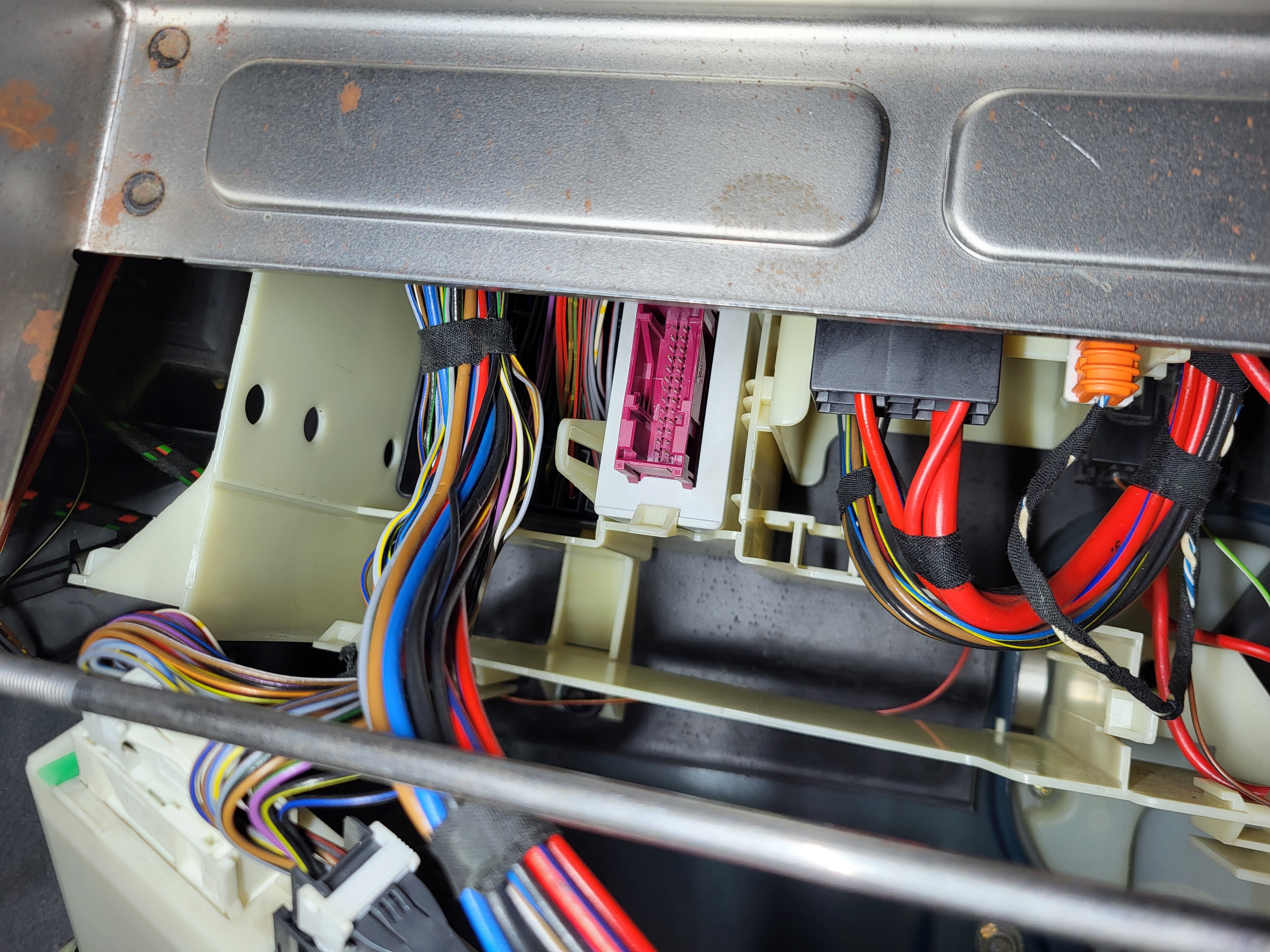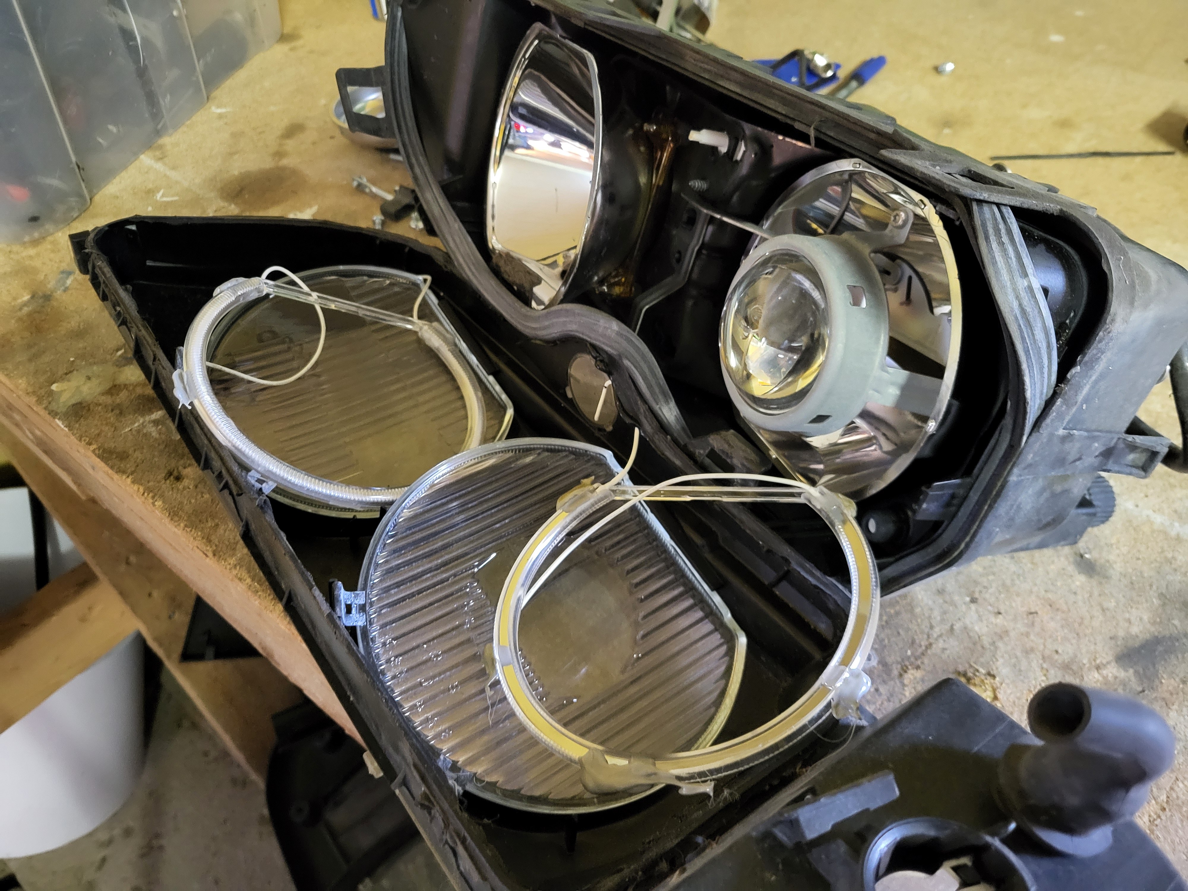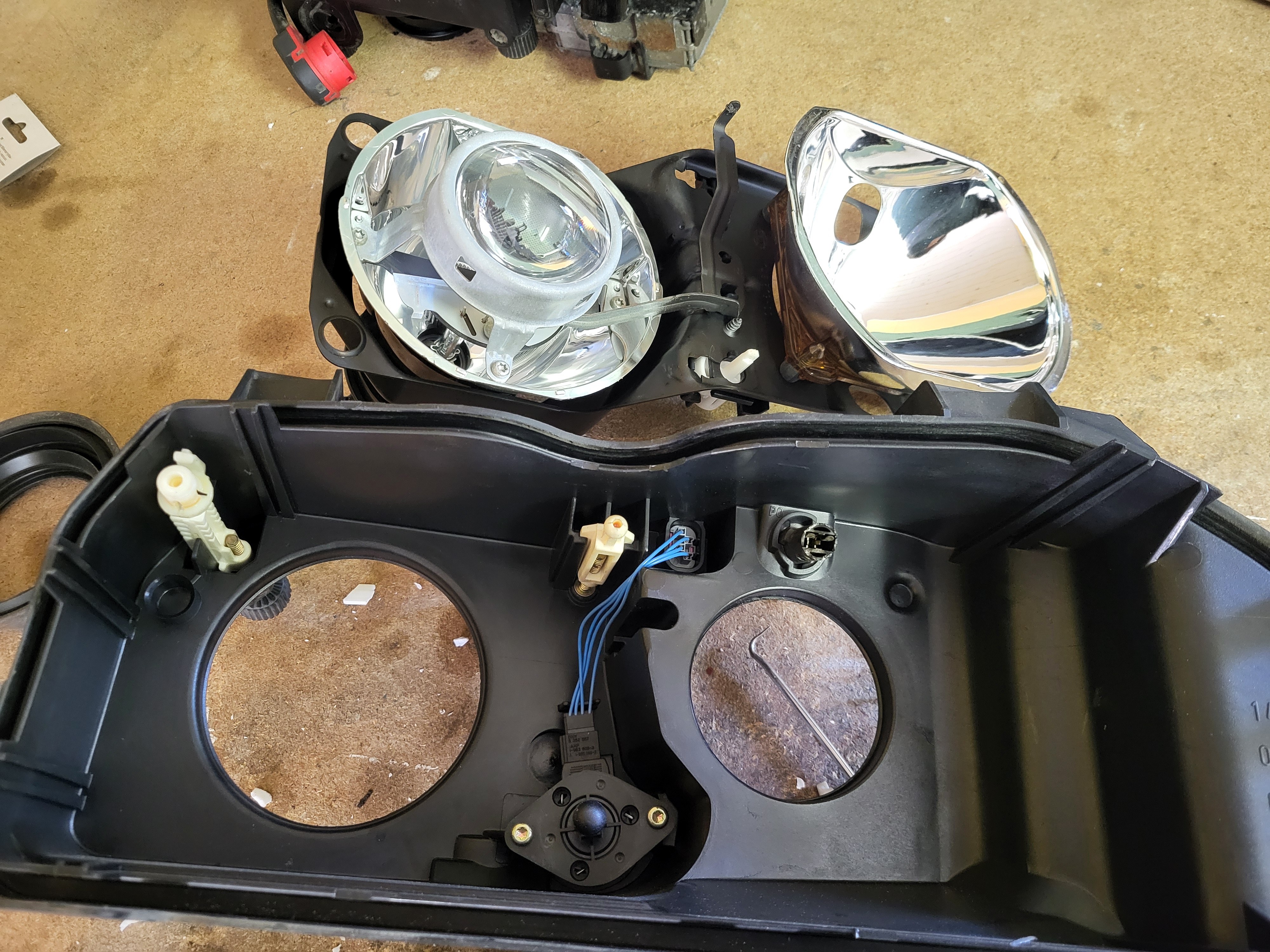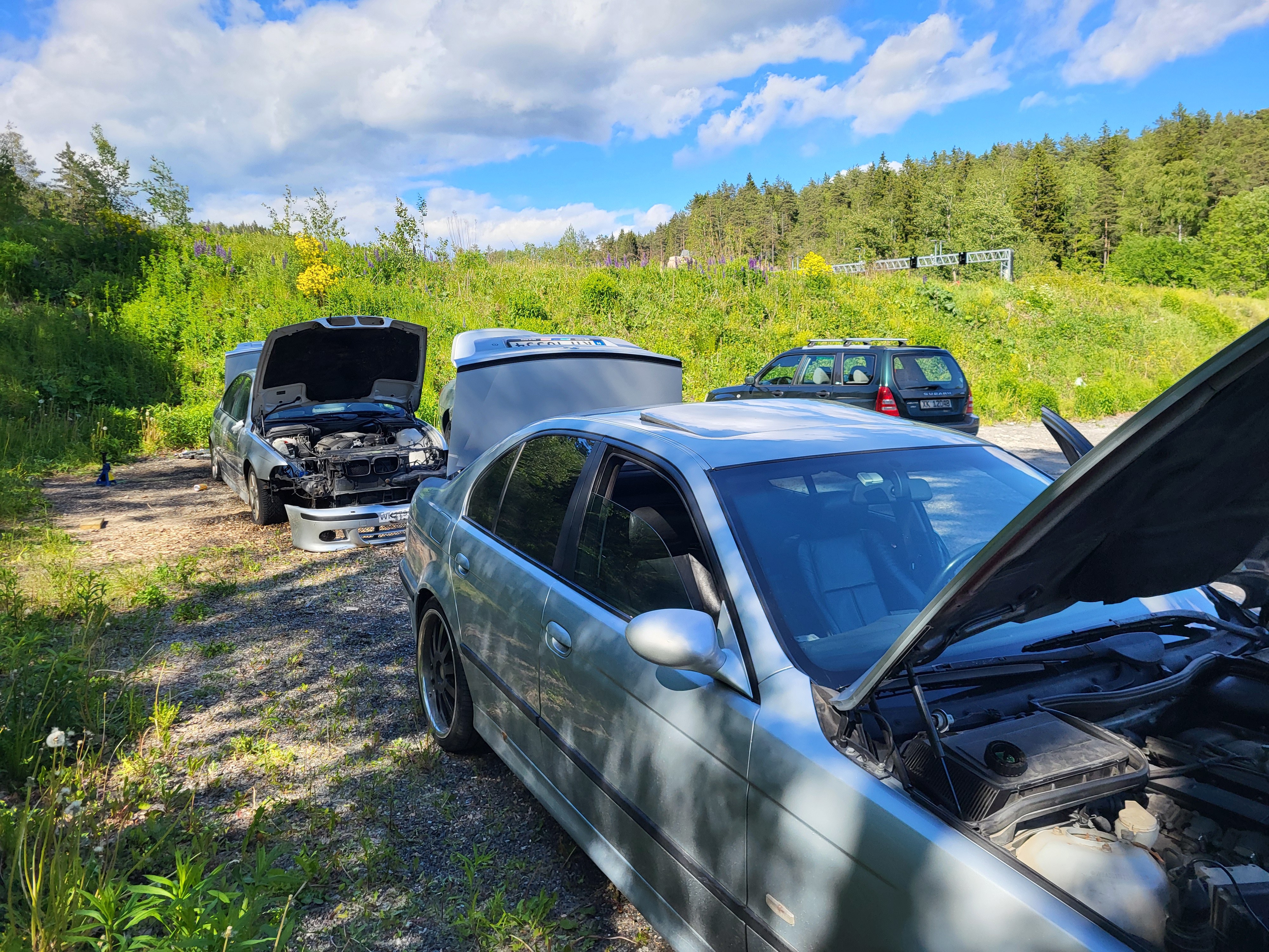 Vegard_ Skrevet 5 timer siden Forfatter Skrevet 5 timer siden Retrofitbonanza del 1: Xenon hovedlykter med auto LWR Det finnes et par måter å montere xenon på disse bilene, der det enkleste er å bare montere xenonlyktene og beholde manuell justering. Dette er vel teknisk sett ikke "lov" og man kan vel få en feil på PKK slik. Den neste metoden er å montere auto LWR modulen i følge av offisielle BMW retrofit papirer hvor man beholder originale lysmodulen. Da slipper man å skaffe ny lysmodul og kode den. Her så bypasser man justeringshjulet ved siden av instrumentpanelet, da går auto LWR modulen sin output til input (fra justeringshjul) på lysmodul som da går ut til justeringsmotorene på lyktene. På siste metoden så er det som om bilen kom med xenon fra fabrikk, da trenger man ny LCM, koding og auto LWR modulen. Da sender LCM kun signal til Auto LWR modulen som går direkte til justeringsmotorene på lyktene, og ikke gjennom LCM som forige metode. I og med at jeg skal ha autolys og RLS (Regn og Lys Sensor) så må jeg ha en nyere lysmodul, da måtte jeg gå for siste måten, men det er jo enkelt når man hadde en hel delebil på lager. Ledningsnett og sensorer fra delebil Jeg måtte også plukke litt fra en delebil, da det er noe forskjell mellom sedan og stasjonsvogn bak. Svingarmen på xenon biler har festepunkt for staget til bakre nivåsensor, svingarmen på halogenbiler har ikke. Her henta jeg også et sett med xenon preface lykter. Vasket og klar til montering, foringene her er OK. Lyktene var i dårlig stand, men det gjør ingenting når man har ett bra sett fra før, men disse var halogen så det krevde en del ombygging. De er veldig modulære så det var jo ikke noe problem, justeringspinnene var også perfekte i halogenlykte som originalt stod på bilen. Her ser man forskjellen på halogen og xenon glass. Xenon har en ekstra prisme(?) på nærlyset Ferdig satt sammen, polert glass og i perfekt stand med nye xenonpærer. Montert på bil (før polering) LWR modul på plass, så begynne med ledningsnett. Her går det ledninger mange steder, utrolig nok. Frem til ABS modul, her trakk jeg også en ekstra kabel til navigasjonsretrofitt. Pin 27 på LCM Det var også en del ledninger som gikk til diverse hubs/koblingsbusser under dash, men det fant jeg ikke noen gode bilder av. Jeg sendte alt av ledninger gjennom et tidligere hull laget til for tidligere DEFA kabinvarmer, og motorvarmer. For ledningene til nivåsensorene så fulgte jeg retrofit papirene til BMW, da jeg kunne bruke hull som allerede eksisterte her, og ikke trengte å borre nye hull lenger bak. Til sensoren bak så fulgte jeg bremserørene langs gulvet, og så opp ved bensintanken og inn til sensor. Her er også faktisk bakre travers annerledes mellom xenon og halogen bil. Xenonbiler har en "nippel" for braketten til sensoren, men her brukte jeg bare 2 bolter og muttere. Dette fungerer utmerket. Nye stag framme og bak fra BMW ble sevfølgelig montert og klipset fast. For å kode LCM så prøvde jeg meg på NCSexpert og NCSdummy, men det fikk jeg ikke til å fungere, så da ble det til at jeg bestilte PAsoft/BMW Scanner 1.4 med dongle. For å få dette til å fungere så ble det til at jeg satt opp windows xp på en VM. Det var ikke bare bare det heller, masse feilmeldinger og masse reinstalleringer. Men når jeg først fikk det til å fungere, så fulgte jeg bare E39 source sin guide på dette. Veldig enkelt og rett frem. Voila, tamper dot borte og nyere og oppdatert LCM er installert, klar til å ta i mot RLS. Snapchat-451707325.mp4 Og alt fungerer! Jeg ser lyktene justere ettersom hvordan baken eller fronten på bilen beveger seg i fart. Sverre 2468, Dusy, E.C. og 4 andre reagerte på dette 7