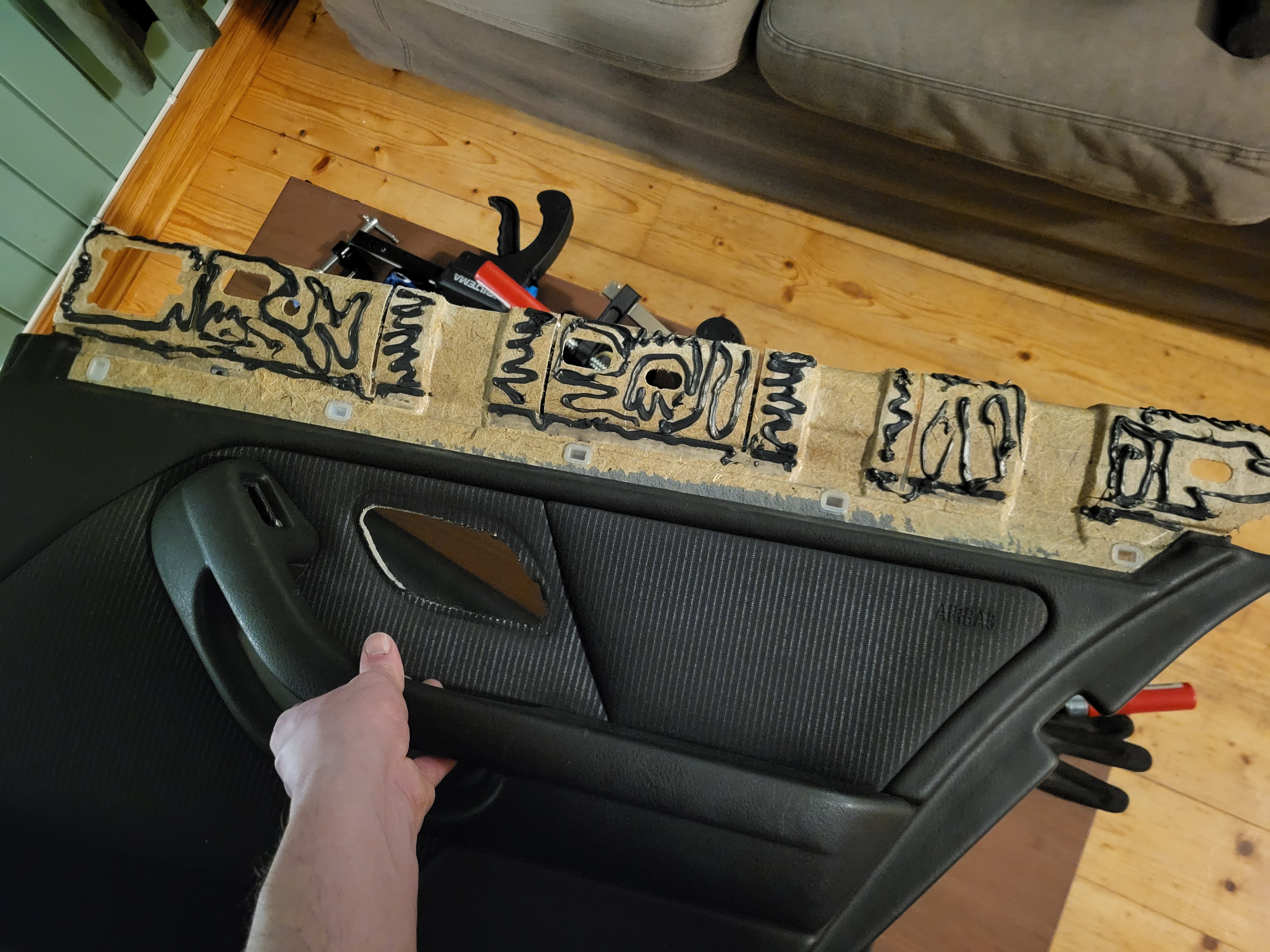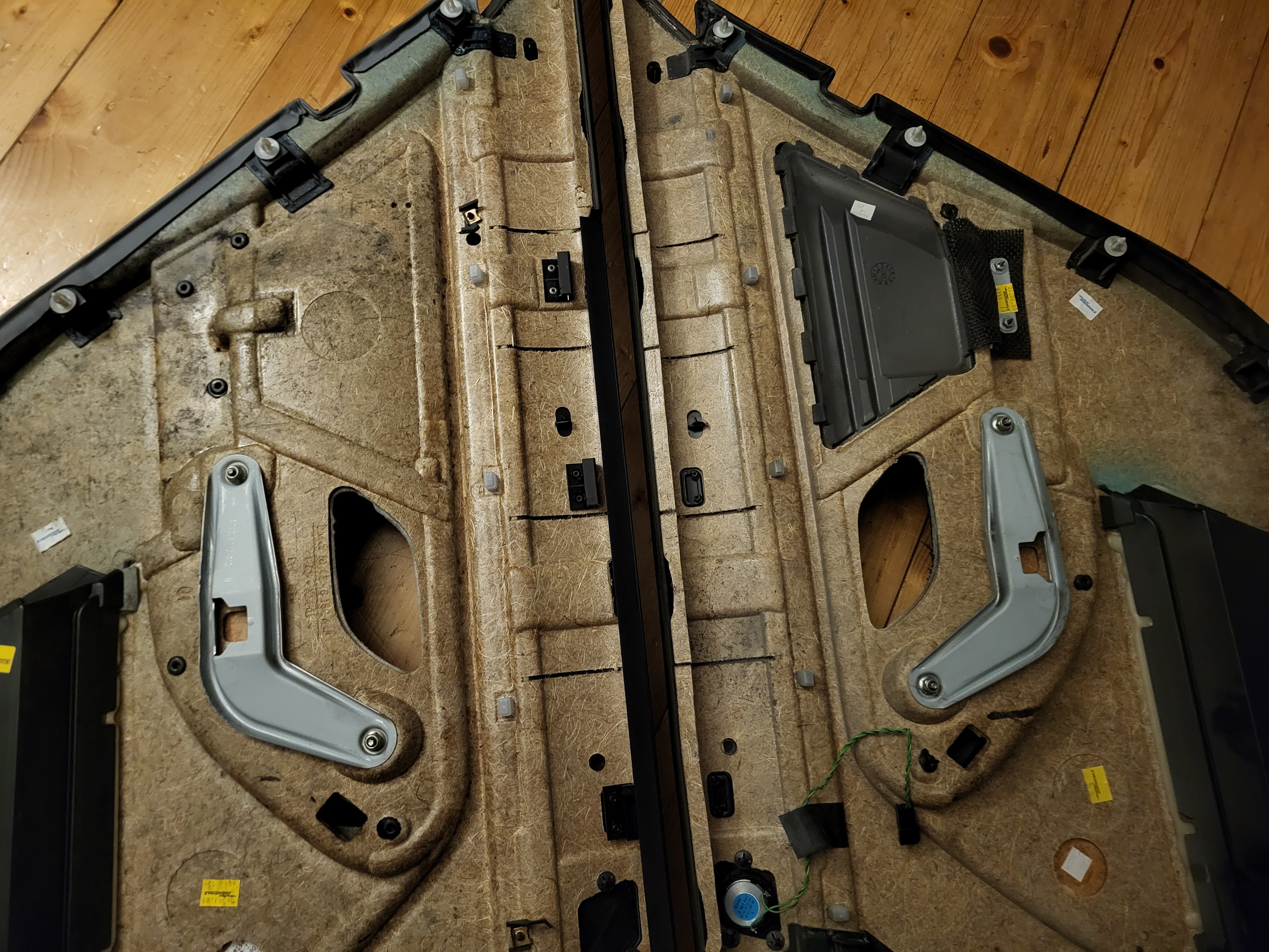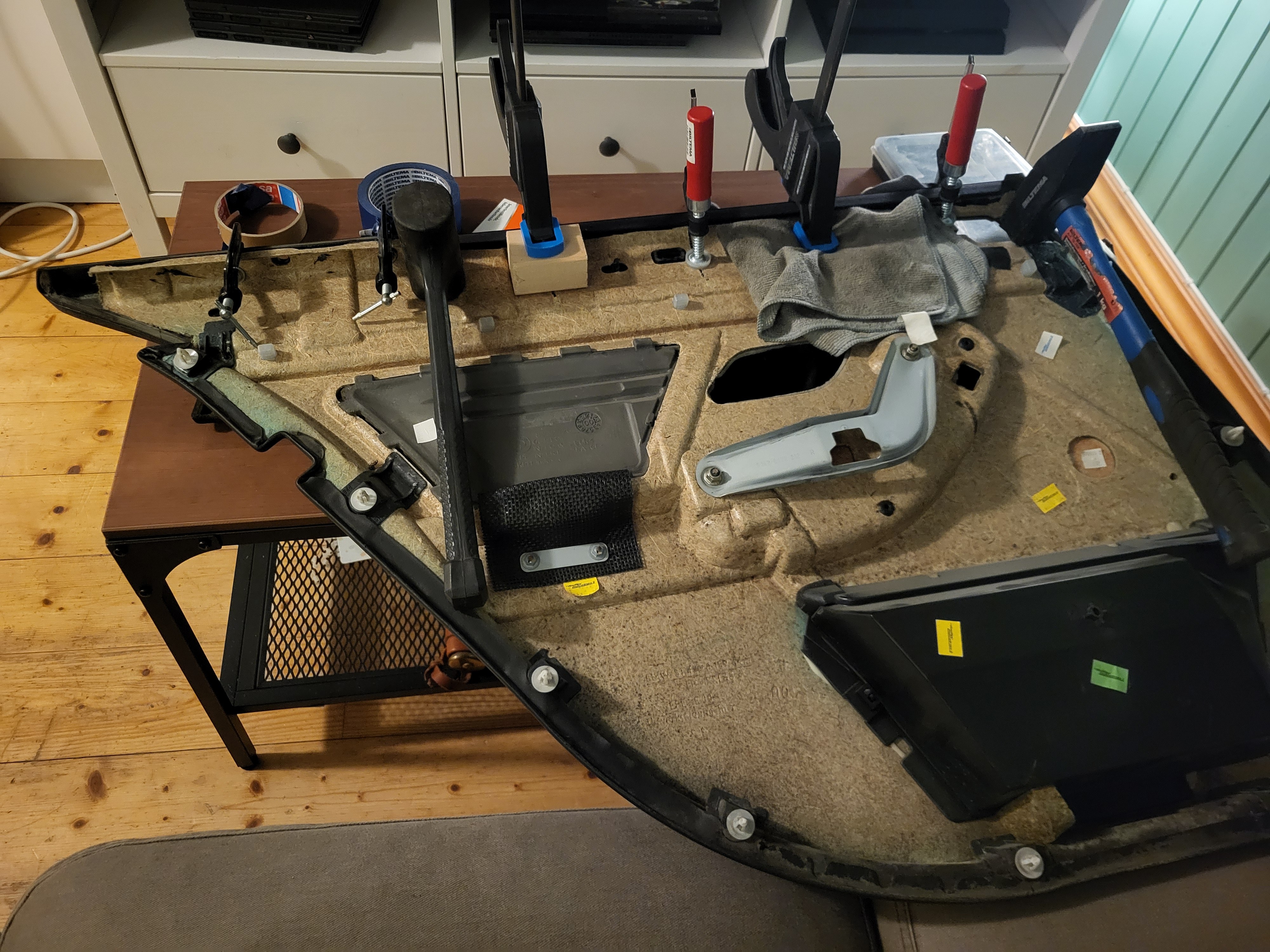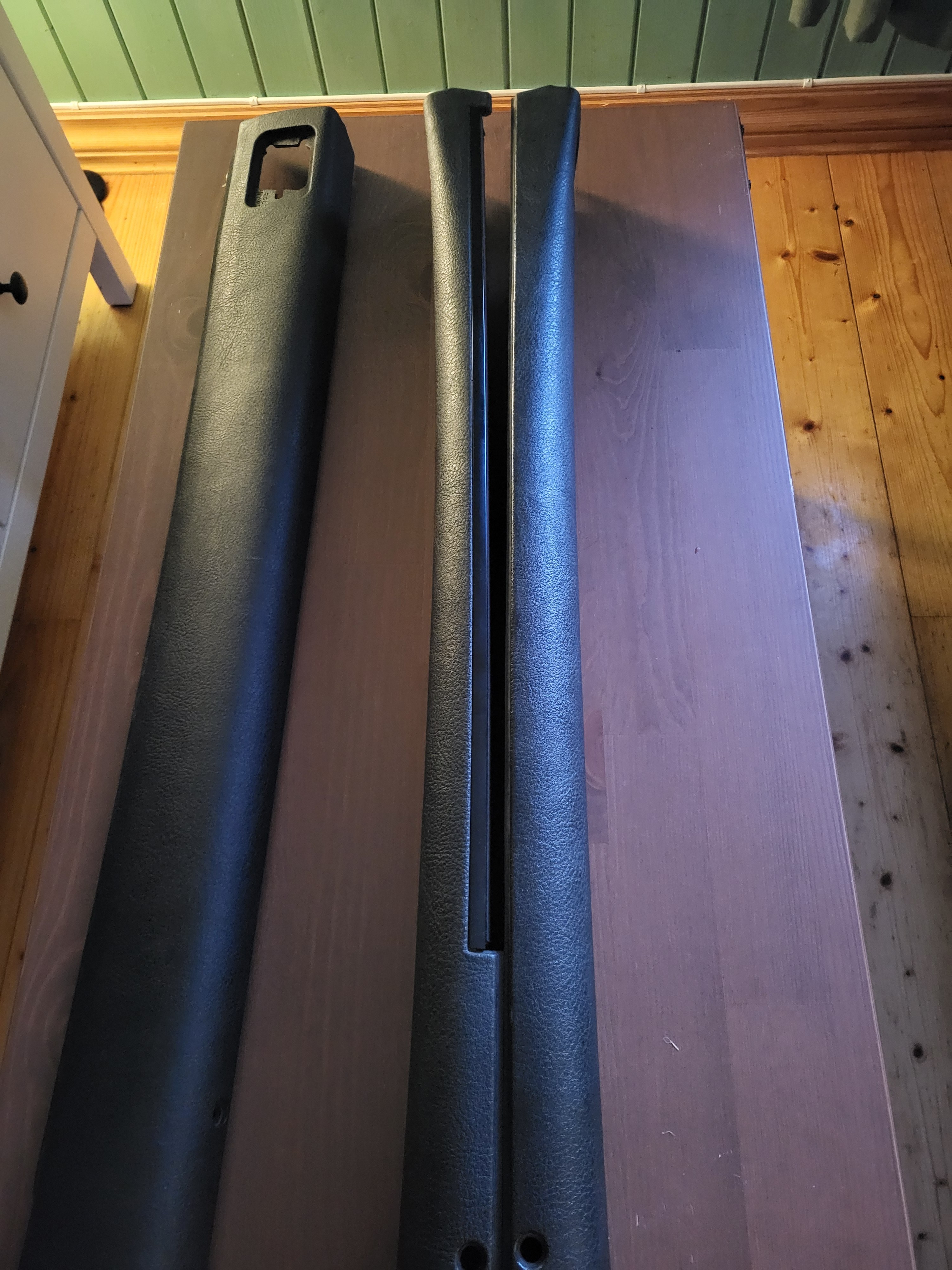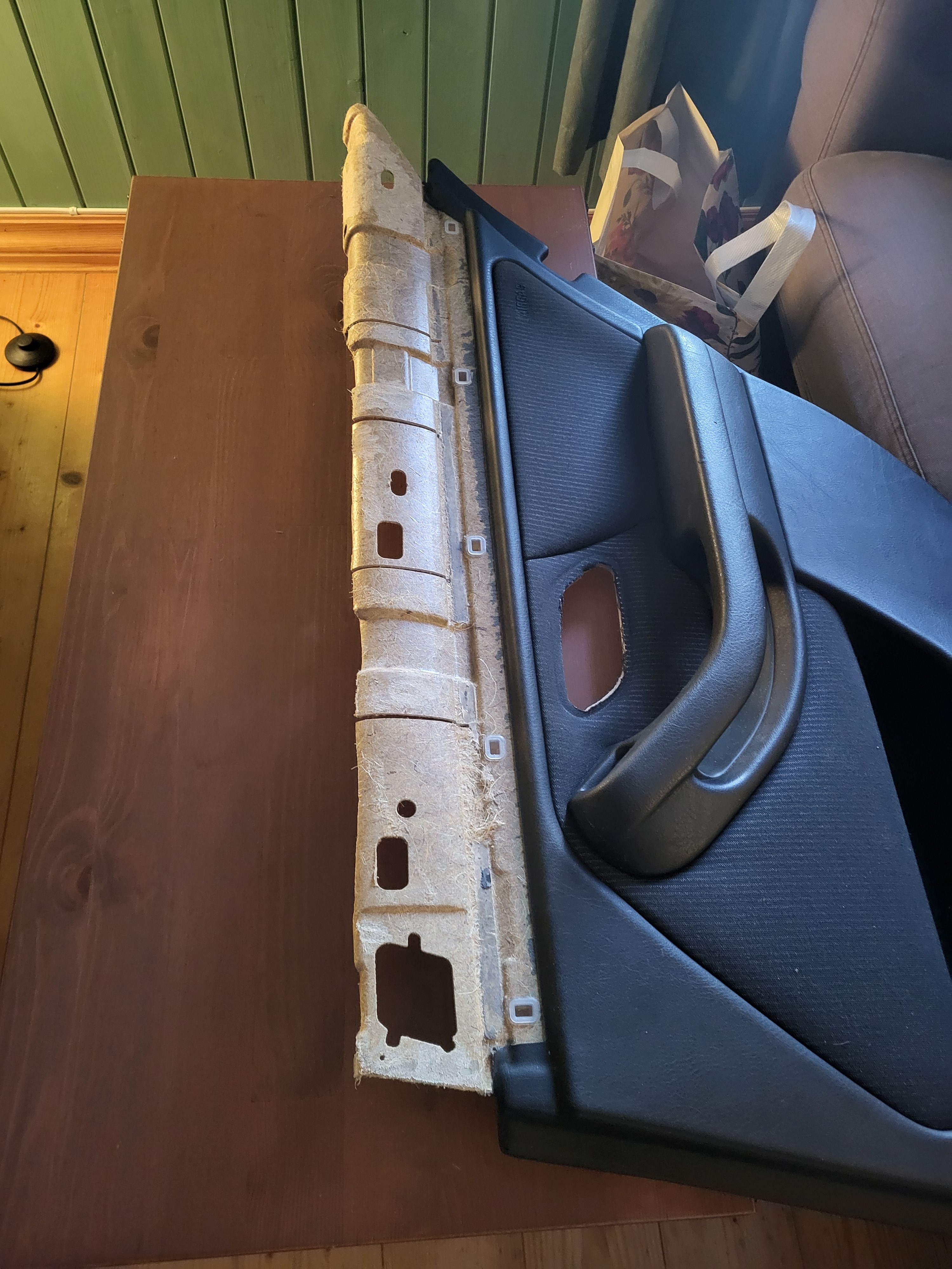 Vegard_ Skrevet 6 timer siden Forfatter Skrevet 6 timer siden Retrofitbonanza del 3: Lateral sun shades / gardiner i bakdør I desember fikk jeg øye på en 525ia som har stått stille en stund her på Lillehammer, sjekket opp regnr og den hadde ikke gått gjennom PKK tidligere på året, sjekka vin nummer på nett og jammen var det noe godsaker på denne. Da det var midt i desember-kaoset med tanke på jul og nyttår, tenkte jeg å vente litt med å ta kontakt med eier for å høre om han var villig til å selge. Når midten av januar kom så var bilen jammen meg sendt til opphøgger for en liten stund siden. Etter en spørrerunde og løping rundt på diverse opphøggere i Innlandet så fant jeg meg jammen bilen stående på nærmeste opphøgger. Ingen deler var tatt eller demontert så her fikk jeg plukke det jeg ville ha. Nemlig hovedsaklig gardiner til bakdører, facelift xenon lykter framme og bak, til og med shadowline lister rundt vinduene! Da delebilen hadde grått interiør og jeg nå har svart prøvde jeg i mellomtiden å kjøpe noen dørpanel i sort skinn, men der var prislappen (i mine øyne) for høyt, eller så var det i slik stand at 2 par sett med dørpanel hadde måtte blitt ofret uansett. Tenkte at nå har jeg brukt for mye penger på E39'n, og jeg må fortsatt kjøpe inn nytt svinghjul og ny AC kompressor så da brukte jeg bare det jeg har liggende uten å måtte tømme lommeboka enda mer. Jeg endte opp med å slakte 2 sett med dørpanel for å ha 1 som passer, veldig synd egentlig for begge settene med dørpanel var brukbare. Under demontering så eksploderte desverre ene gardina, men når man først har gullhår i ræva så har man gullhår! Koed hadde lagersalg og jammen så hadde de akkurat den jeg trengte til 68% avslag. Ettermontering av gardiner i ett sett dørpanel er faktisk ikke så vanskelig som man skal tro, det eneste som kan være trøblete er å løsne den øverste trimdelen om limet fortsatt ikke har løsnet av seg selv. Det krever også kutte deler av panelet samt bore noe hull, enten for nagler eller gjennomføringshull for skruer. Forskjellen på baksiden av panelene, enkelt å plassere de brakettene på nytt da trimdelen har "mottak" til de, med unntak av det siste som er naglet på plass. Her ser man også forskjellen på panel til bil med eller uten airbagger i bakdørene. For at gardinen skal ha plass så er det en annen åpning inn mot vinduet, da også med forskjellig vindutrim i forhold til standard. Trimmet og klar til å lime fast den nye trimdelen. Det er noen gode cm den må kortes for at det skal passe overens. Jeg vet ikke om Tec7 var det riktige valget her, men det var det jeg hadde på hånd. Det holder fortsatt, men det har dog bare vært på bilen i et par måneder. Braketter naglet og limt fast med epoxy Gardinen er på plass, og det passer Så til montering på bil, trimdelen på toppen av vinduet er også annerledes for å holde kroker til gardinene. Her så er det bare plastikk på plastikk, og krokene skrus fast i ekspansjonsmuttere som bare bankes på plass i hull allerede i døra. Nedre vindutrim på plass "klipsmutter" har også allerede hull i døra laget fra før, her er det bare å fjerne teipen som forsegler døra og smelle det på plass. Siste braketten som boltes fast til døra også naglet på plass, venta med den til slutt for å være sikker på at det skulle line opp med hullet i døra, denne skrus fast bak den minste gardinen. og vipps så var det gardiner i dørene mine også Til slutt, ny aluminium trim da min var knekt Ampera, GtiGtr og Sverre 2468 reagerte på dette 3