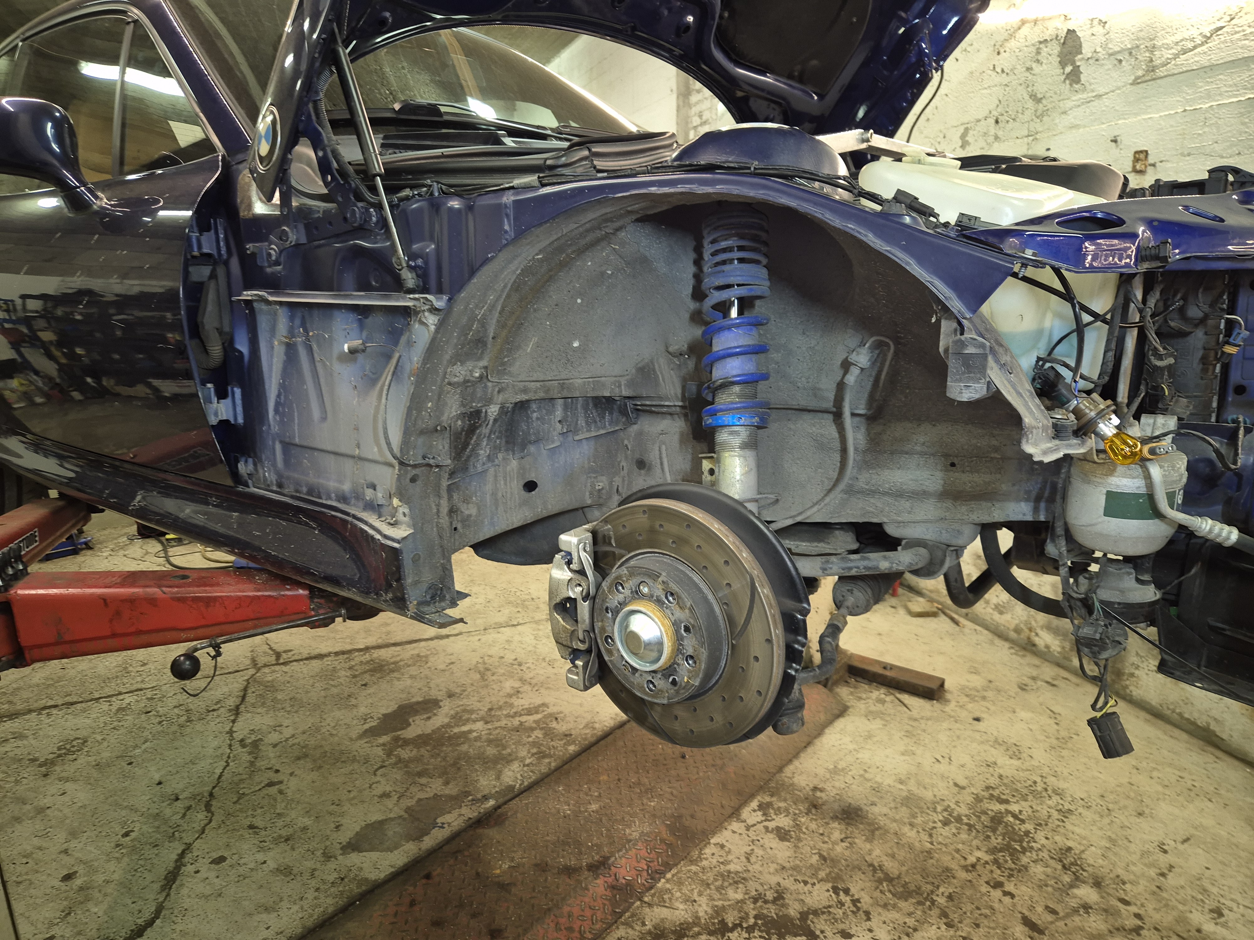 E30TurboTouring Skrevet 13 timer siden Forfatter Skrevet 13 timer siden (endret) Da er vintersesongen og tiden for å friske opp Z3 kommet. Bilen er ikke så fin i lakken som det ser ut på bildene og tenkte derfor å få lakkert opp deler av bilen. Men etterhvert som jeg holder på så ser det ut til at dette ender med hellakkering. 😂🙈 Demontert nesten hele bilen og det er fantastisk å jobbe med en bil som er så godt som rustfri, eneste er litt overflate i front på kanaler. Men masse veistøv bak alle paneler så blir godt å få vasket alle steder. Endret 12 timer siden av E30TurboTouring Lars S, Lars89, Skulebollen og 1 annen reagerte på dette 4