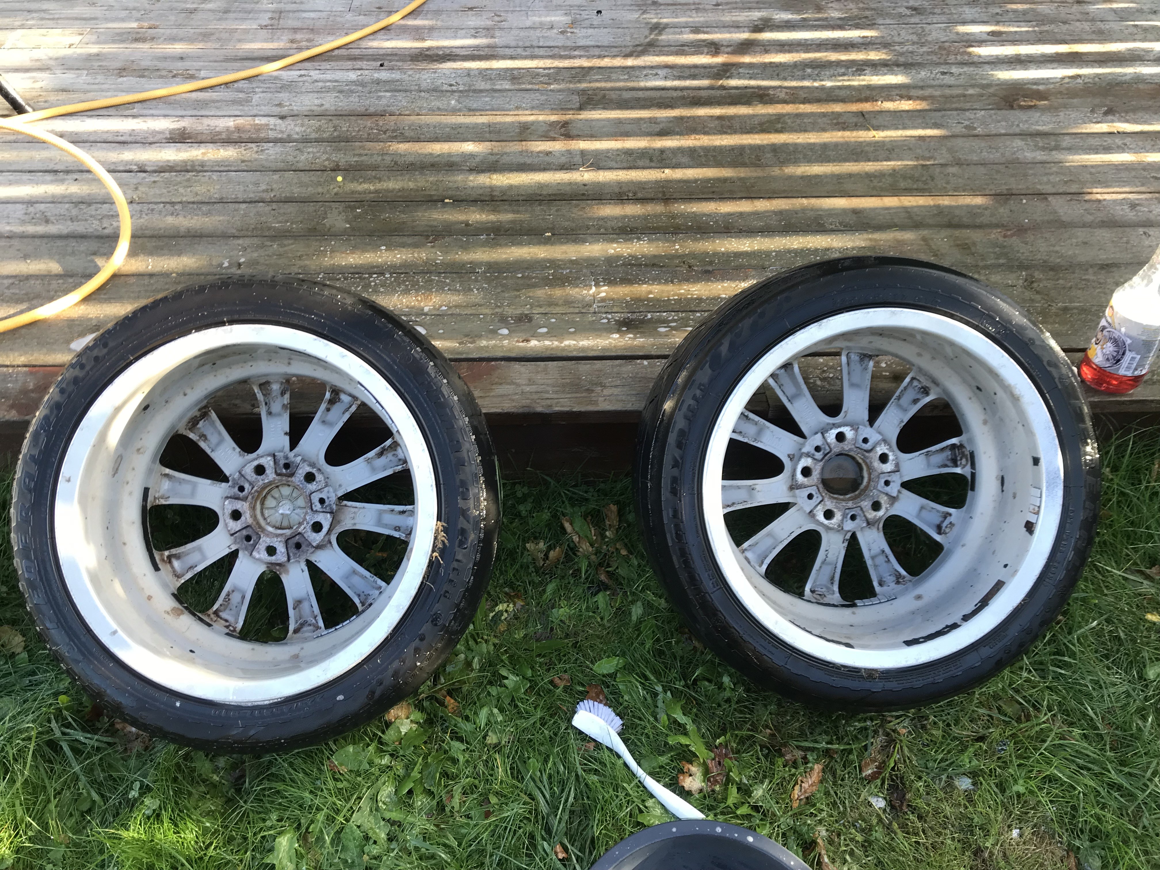 sveigis Skrevet 6 timer siden Forfatter Skrevet 6 timer siden Da ble det endelig style 285 etter mye om og men … Første settet jeg så på ,var jo ikke bra . Det settet jeg nå har kjøpt ble det og styr pga han som hadde de ikke var hjemme og når jeg hadde tid ,hadde ikke han . Lang historie kort ,jeg sa at jeg vipser nå ,legg ut felg så henter jeg så fort jeg kan . Kanskje en råsjans og ta ,men Agder er lite så gikk fint . Etter den daglige økten med trim ,ble jeg hentet tidlig idag og vi satte nesen 10 km fra Fevik 😊. Joda selger gjorde som avtalt han og de lå på utsiden . Ingen sprekker eller noe ,kun kantkjøringer osv så disse ble med hjem 😊 Hjemme : Foruten igjengrodde av møkk ,samt hakk her og der så er felgene bra . Den verste : Hvertfall så blir det ikke lakk og fiks i år. Nå er det kun snakk om og få de gullende rene og bare det ,vil hjelpe tror jeg . Dette samt litt polering vil dempe noe av småskrap osv . Men her venter vi ikke og satte i gang I gang og dritt løsner : Og vips en kraftig forbedring : Så var det og fortsette : Her måtte jeg gjennom tre omganger men da ble det rent : En viss forskjell : Tilslutt er alle rene og tørket : Tror disse kan bli fine på Treg 18 : Igjen null oppussing av disse foreløpig . Nå skal der på Michelin Pilot på den og jeg må si jeg gleder meg nå til å se hvordan det blir på bilen 😊 Han som kjørte meg sa at det er ille ,men nå er jo snart e91 like diggbar som e61en din 😅..Vel der må jeg være uenig . Likevel så er det jo fryktelig morro å få en bil til og se ut som du så for deg når man startet . mslello, ///M-ini95, Daniel. og 2 andre reagerte på dette 5