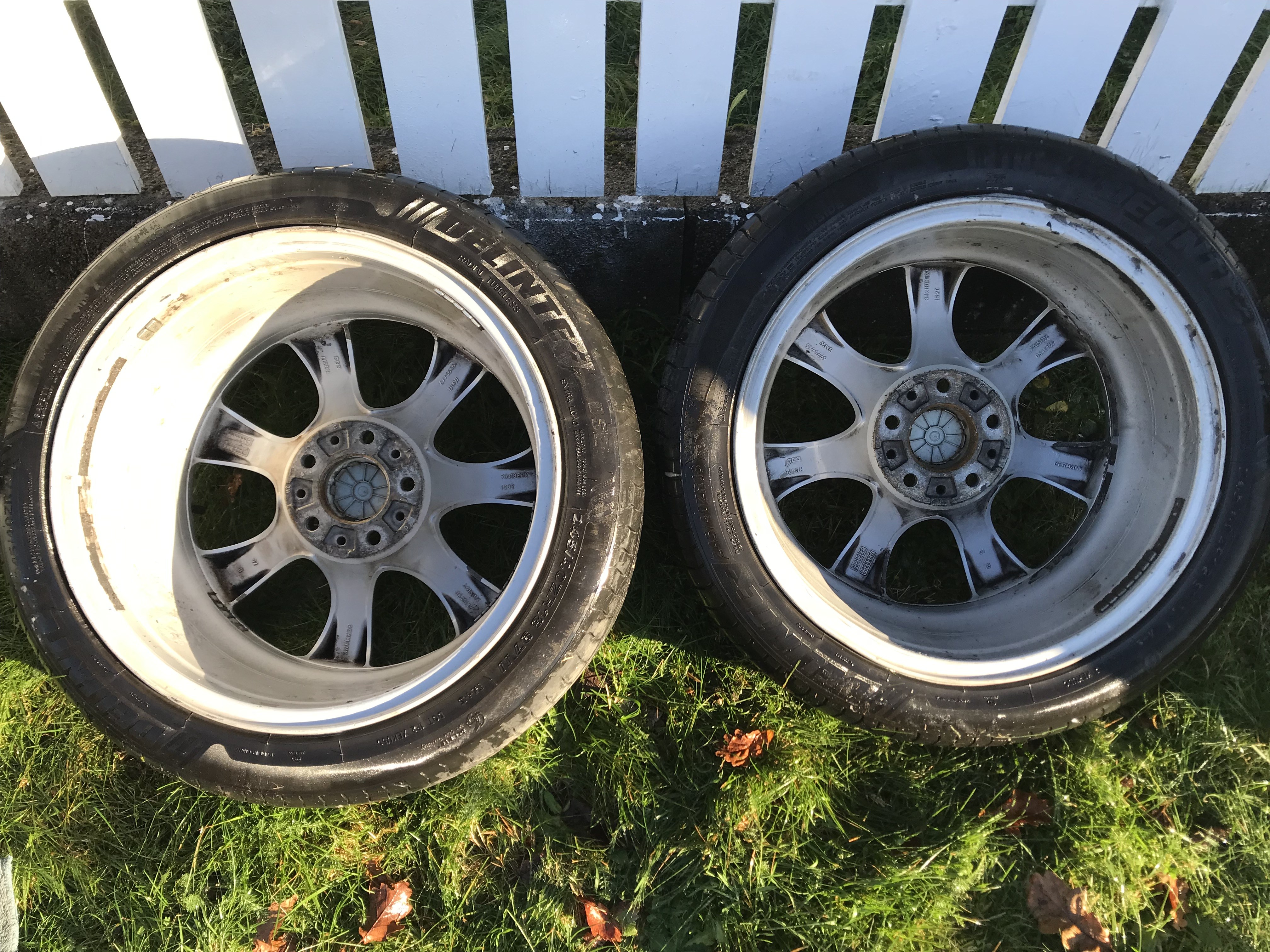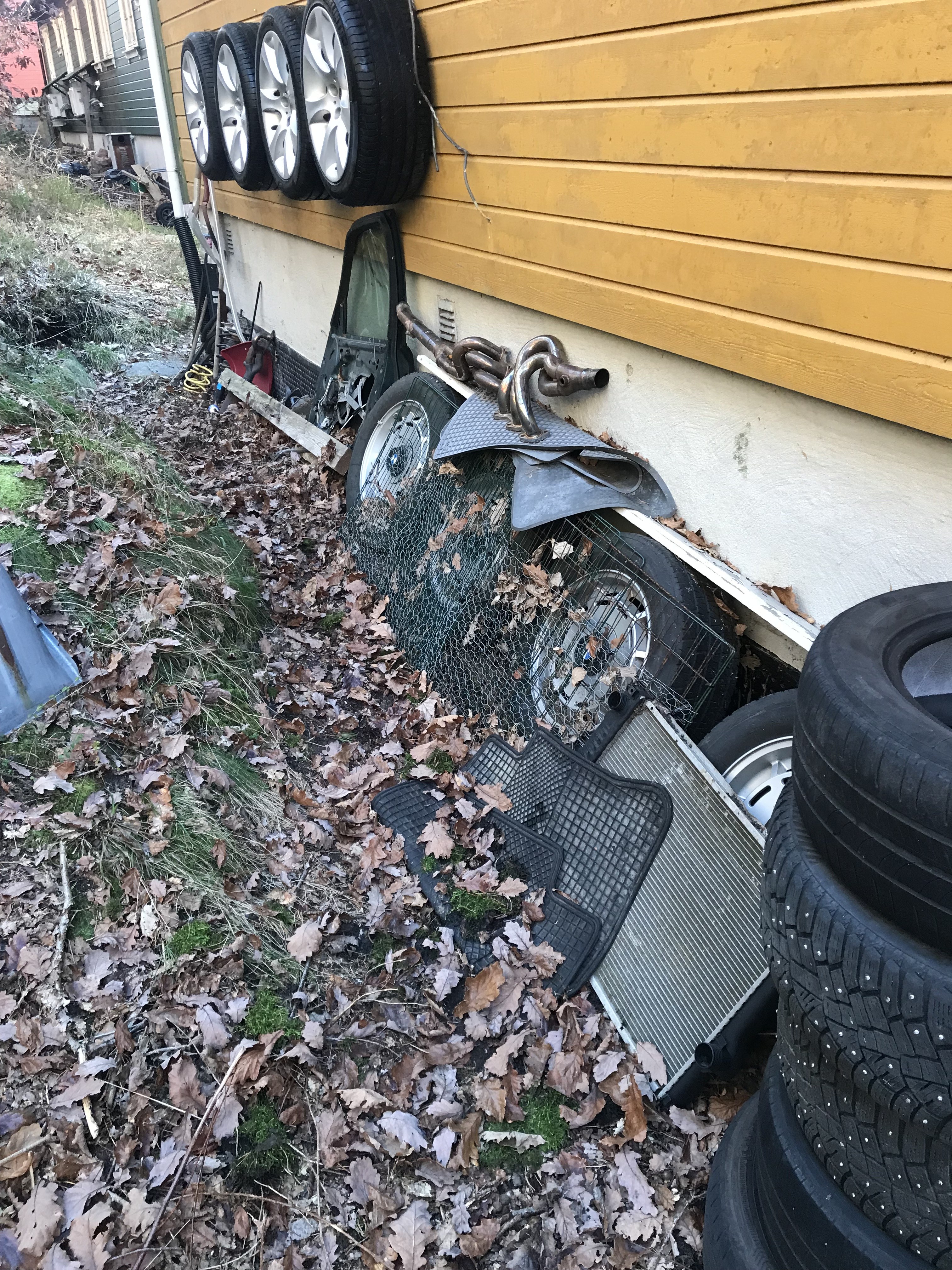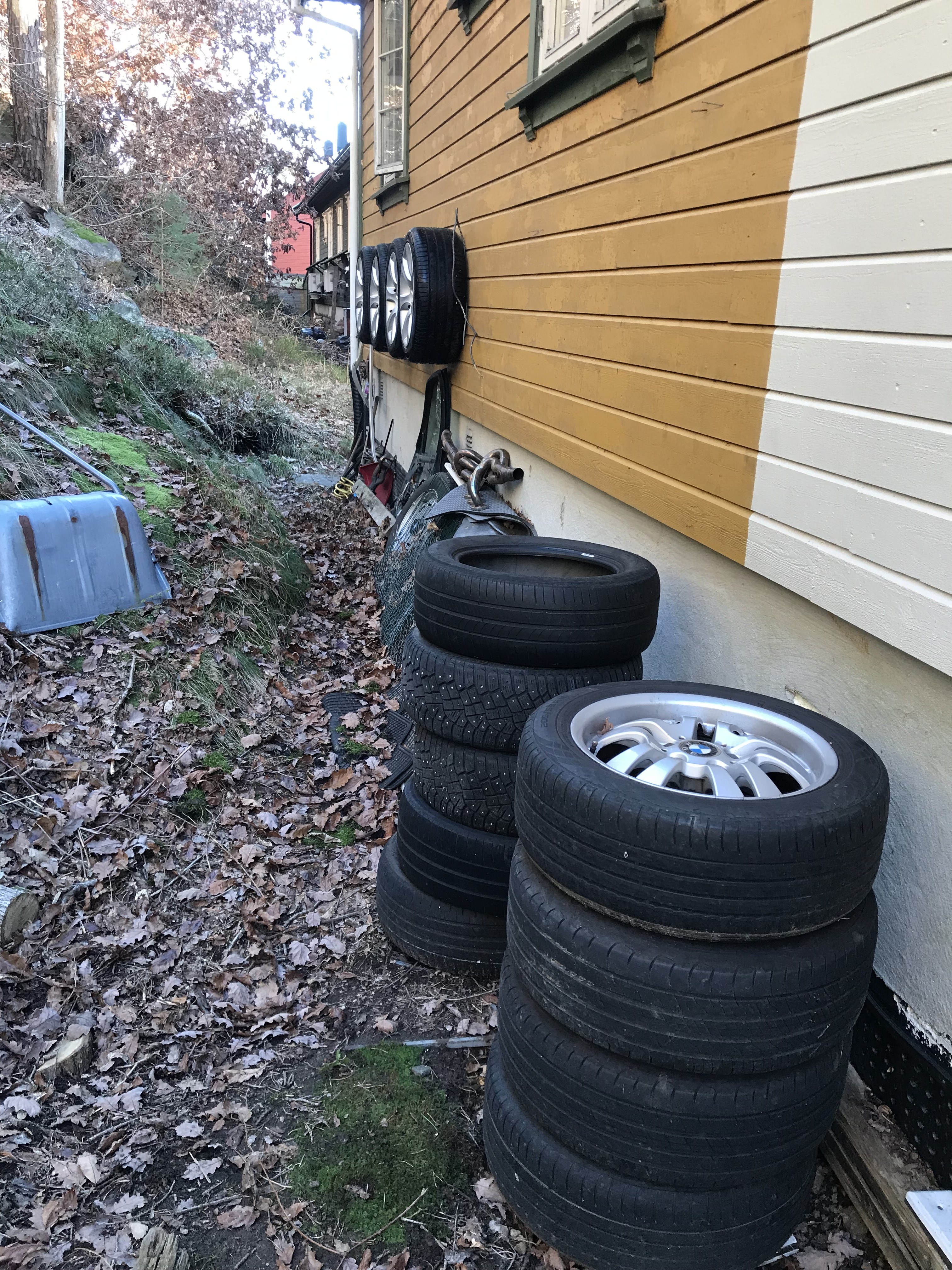 sveigis Skrevet 2 timer siden Forfatter Skrevet 2 timer siden Da ble man endelig ferdig med felgvask osv . Starter selvsagt med utgangspunktet: Ikke vasket bak siden ifjor : Da er det og finne frem diverse dill og sette igang : Og etter noen runder blir alt så meget bedre : Dritten inni eiker bak fikk jeg ikke bort dvs jeg gadd rett og slett ikke frem med noe sterkere og tror ikke jeg hadde fått det bort heller . Men det går helt fint for min del 😘. De ble tørket og fant frem noe polering som jeg hadde og vokset de opp. Ferdig resultat : Alle fire : Så bak og få hengt de opp: Og apropos bak ,her har jeg alt av ekstra dekk og felger ja det meste som kan stå ute 😊 Radiatorer til e34 og TRX hjul bla : Men bak her blir det forandring til neste år . Det skulle skjedd i år men ja resten vet dere jo . Og hva skal skje ? Jo området ved snøskuffe : Så skal fjellnabben der renskes ,selve bakken skal gjevnes ,evnt fylles opp . Så skal jeg lage en platting der sånn at alt står fint og ryddig . Samtidig så må og masse kastes som jeg har tatt vare på i årenes løp . Jeg har jo bla annet en bra dør til e34 men ingen er jo int så da blir nok det og kastet . Er jo deler bak der som jeg ikke vet hva er til og da må det kastes . Så jeg har noen planer på alt etterhvert men planen idag var hjul og den planen ble jo fullført 😊 Pga sur kald vind ble det ikke vask av e91en. mslello, Ampera, Paulus og 1 annen reagerte på dette 4