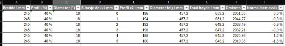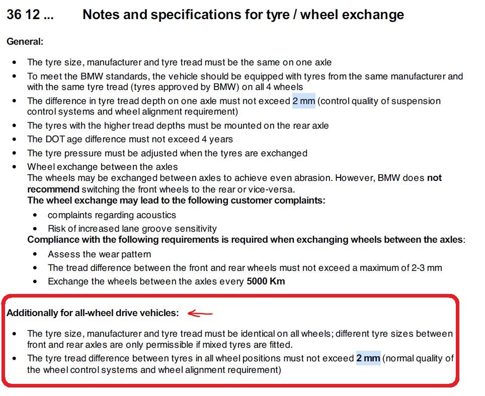 teerex Skrevet 20 timer siden Skrevet 20 timer siden (endret) 13 minutter siden, Ingvaldsen skrev: 1% er altfor mye, og hvor finner du dette utsagnet fra bmw? 1% er noe som er skrevet på div. forum og rundt omkring, og som man finner på AI. Men ser nå at BMW skriver max. 2 mm differanse i mønsterdybde i vedlegget under, så det blir langt under 1% ja. Nærmere bestemt ca 0,5%. Om man tar utgangspunkt i f.eks. 72 cm dekkdiameter. Greit å få det avklart iallefall. https://f30.bimmerpost.com/forums/showthread.php?t=1142647 Endret 20 timer siden av teerex mr.pingu, eivi91 og Ingvaldsen reagerte på dette 3