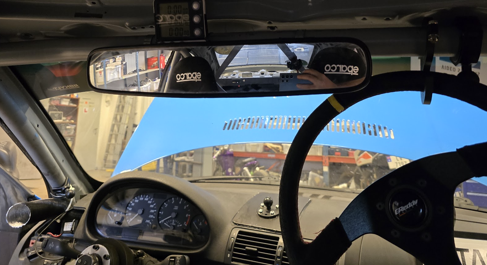 chiller Skrevet 3 timer siden Forfatter Skrevet 3 timer siden (endret) Et par andre observasjoner: Etter å ha sett en youtubevideo av en E46 M3 med hood pins, hvor panseret fløy opp i frontruta i 250 km/h så fikk jeg litt angst og sjekka banebilen vår... Joda, her var det godt på gang: og andre siden: Dette er ikke langt unna katastrofe! forsterka hele greia med en stor plate under. Hvis du har noe lignende kan det være verdt å ta en liten titt! LK-30 pumpa og yellowtagen fra finn har funka bra hele året. Det svetter ut litt servoolje når vi kjører hardt fra luftinga, men temperaturen ser ikke så halvgærn ut. Vi har målt den til 70 grader på en varm dag. Her er passasjerstolen montert med millway-festen. De funker bra og stolen sitter som støpt. Fikk også montert stort speil så vi slipper orginalspeilet som "datt ned" over hver curb. Her avbildet sammen med en 3d-printa rattkrok. Designa rattkroken og printa den bare for å sjekke fitmenten, men den har faktisk funka fint i hele år. Endret 3 timer siden av chiller Lars89 reagerte på dette 1