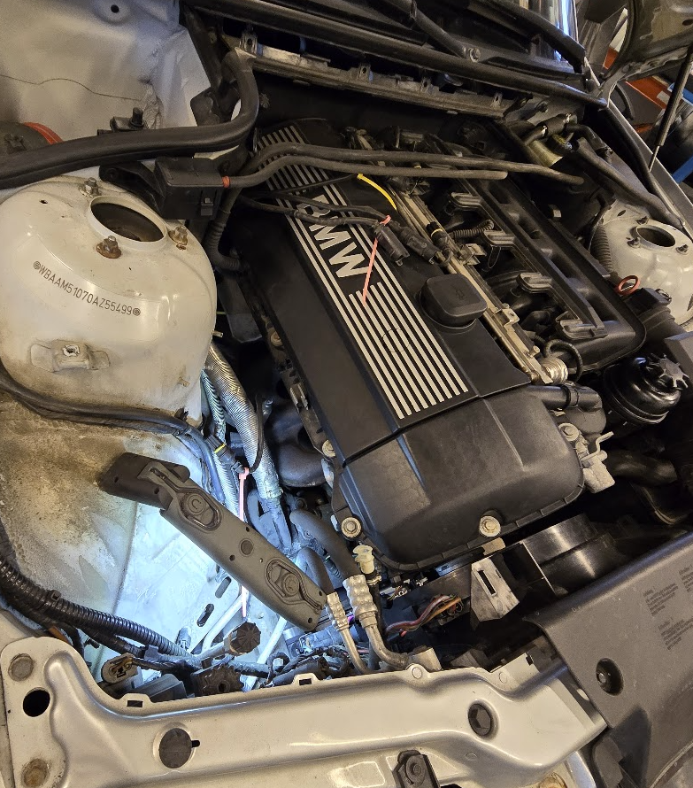 chiller Skrevet 3 timer siden Forfatter Skrevet 3 timer siden Etter jobbinga med veibilen, og litt slossing fordi jeg hadde fått feil på manglende bremseskjold (det skal -ikke- være en feil hvis det mangler helt) så gikk den igjennom EU. Jeg kunne derfor gå løs på å bytte inn headersene. Forbanna trangt når man har AC. Her er lambdaene markert så de ikke blir bytta om. Når man står på oversiden er man sikker på at det er lettere å komme til undenifra. Helt til man legger seg under og skjønner at det er håpløst. Etter masse jukking kom alle boltene ut fra toppen - success! Når vi først var i området kunne jeg like gjerne få inn nye motorfester. Det var lurt for de var tydligvis "bluetooth edition". Dette har faktisk holdt tett siden jeg hadde nede eksosen for å bytte mellomakselen. Nye motorfester (passer E46 også) Kjøpte nye studs til toppen, og velger da å fylle alle hulla, selv om BMW bare bruker halvparten. Mye mer plass når alt skal på uten de store katalysatorene, så det gikk radig. Lurer på hvor lenge dette holder tett. Jeg brukte nye pakninger av skikkelig kvalitet, ikke de som fulgte med kina-headersene. Lars89 reagerte på dette 1