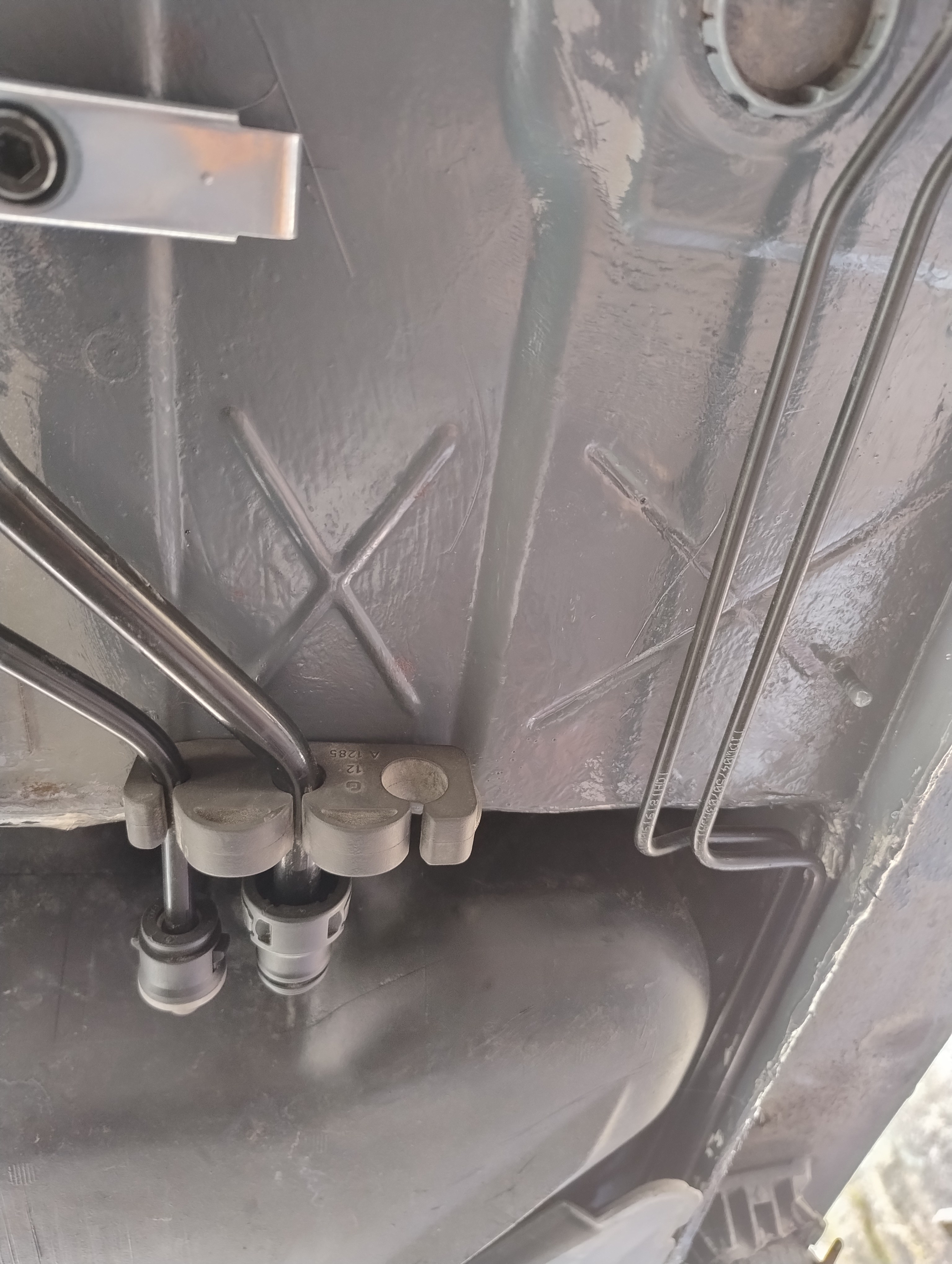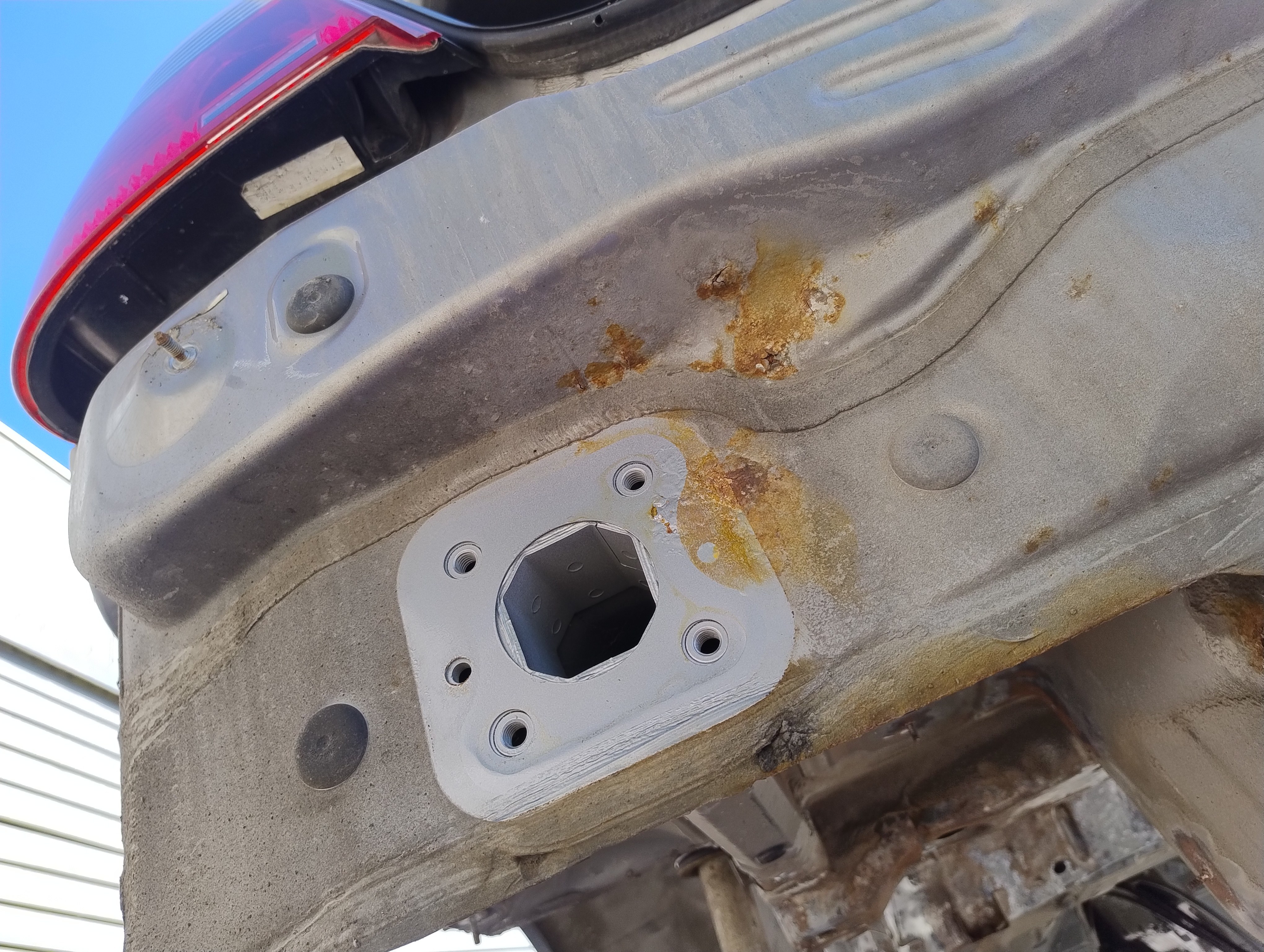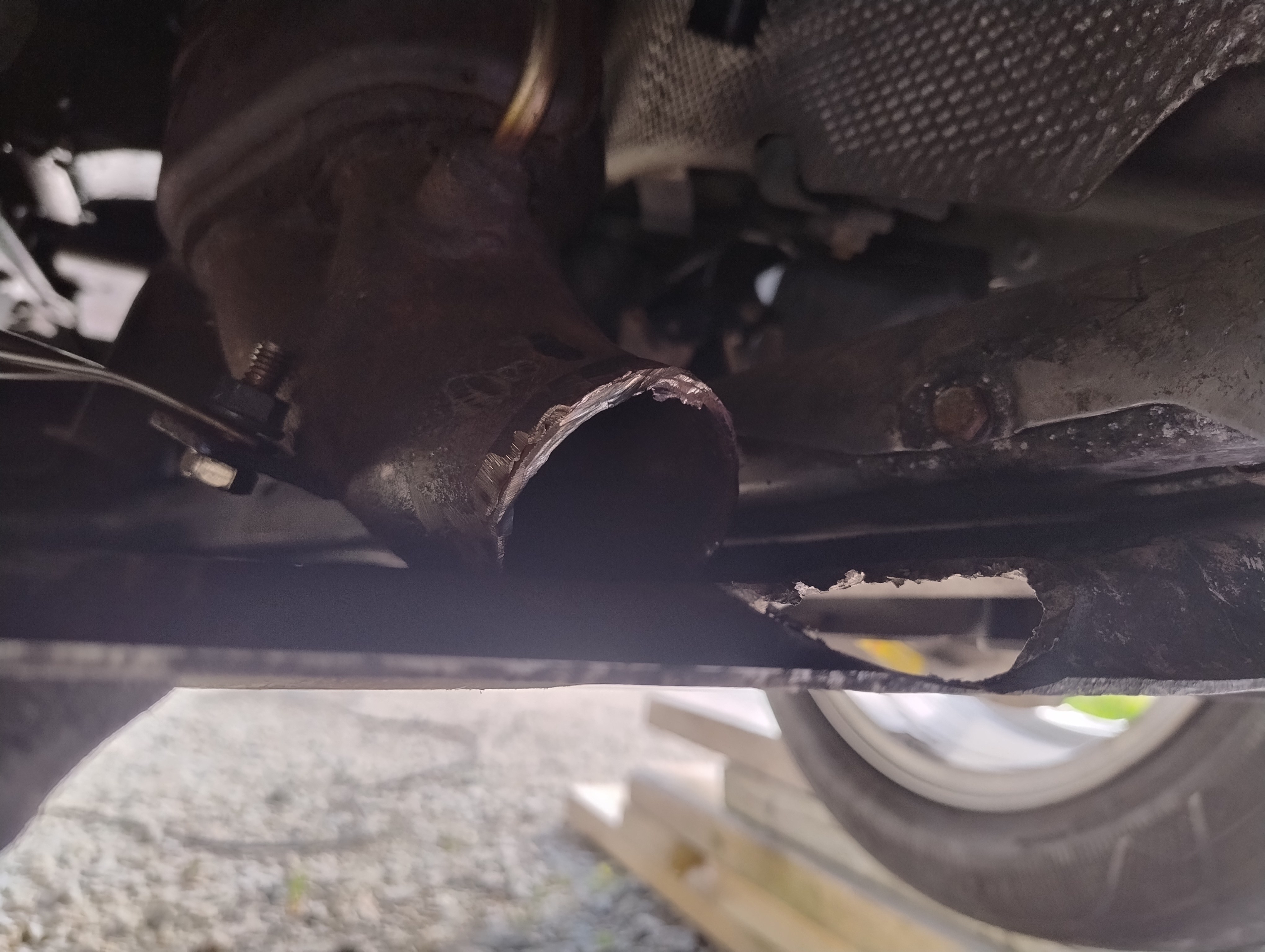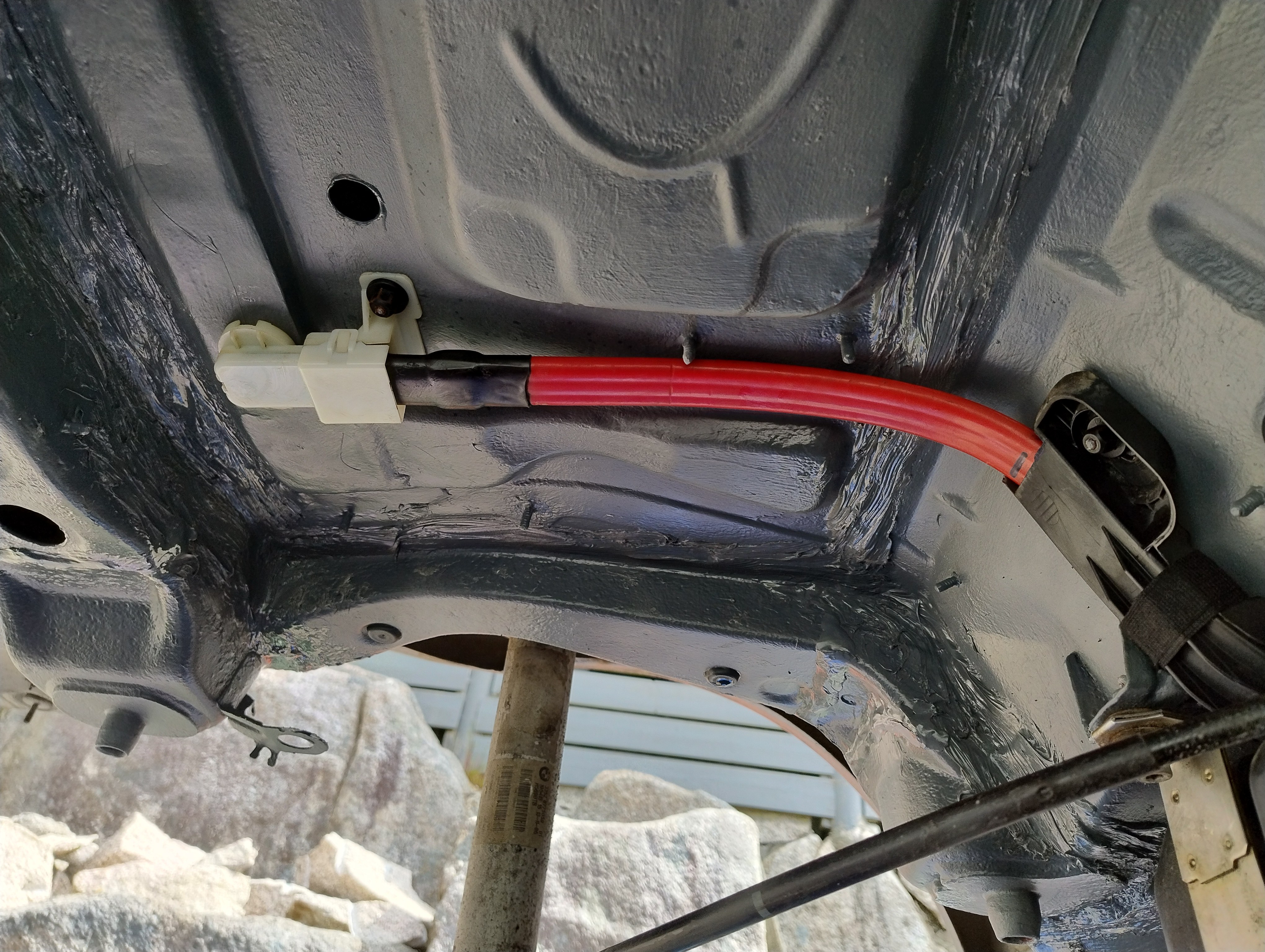 Haug530D Skrevet September 23 Forfatter Skrevet September 23 Da blir det litt fastforward her, jeg har lassevis av bilder men jeg tenker at jeg ikke trenger og bombardere tråden med bilder, skal bli bedre på bilder fremover jeg lover men anyway, kjøpte jo som sagt bilen uten og ha sett den og hentet den noen dager senere, den var treg og starte og i tilegg så var den veldig treg og få i gir, mer om det senere. men anyway, fikk den nå hjem og sjekket litt her og der hvilken deler jeg trengte og fikk bestillt opp, fikk også startet med og bytte diverse bærearmer og bremser, etter hvert så oppdaget jeg også det at denne bilen tydeligvis ikke hadde vært på recall i forbindelse med batterikabel i bagasjerom, her hadde det tydeligvis vært fyr baki Selger opplyste ikke om dette i anonnse men bilen ble nå solgt som repobjekt/delebil som den er osv... så det var vel litt min egen feil også, men men, jeg elsker faktisk utfordringer, så etter og ha studert baki der hvor forrige eier hadde laget noe jallamekk med korrugert rør og hjemmemekka strømkabel bestemte jeg meg for at her skal hele travers ned, samt diesel tank (siden jeg har hatt nede travers på E87 og regnet med at det nok var mer rust enn det man så. Så igjenn litt fastforward her, for en del har jeg visst ikke tatt bilder av, blant annet den hjemmemekka strømkabel løsningen, hehe, men uansett dette bildet viser nå litt av galskapen. Her er travers og diesel tank allerede tatt ned og man ser til høyre i bildet der hvor altså bodykiten har smeltet og sprukket blant annet. På enden der på strømkabel ser man også rester etter det korrugerte røret, slik hang det egentlig under bilen, så hadde kabel tatt borti karosseri igjen ja da hadde det tatt fyr igjen. Nytt bilde av samme sted men fra en annen vinkel.