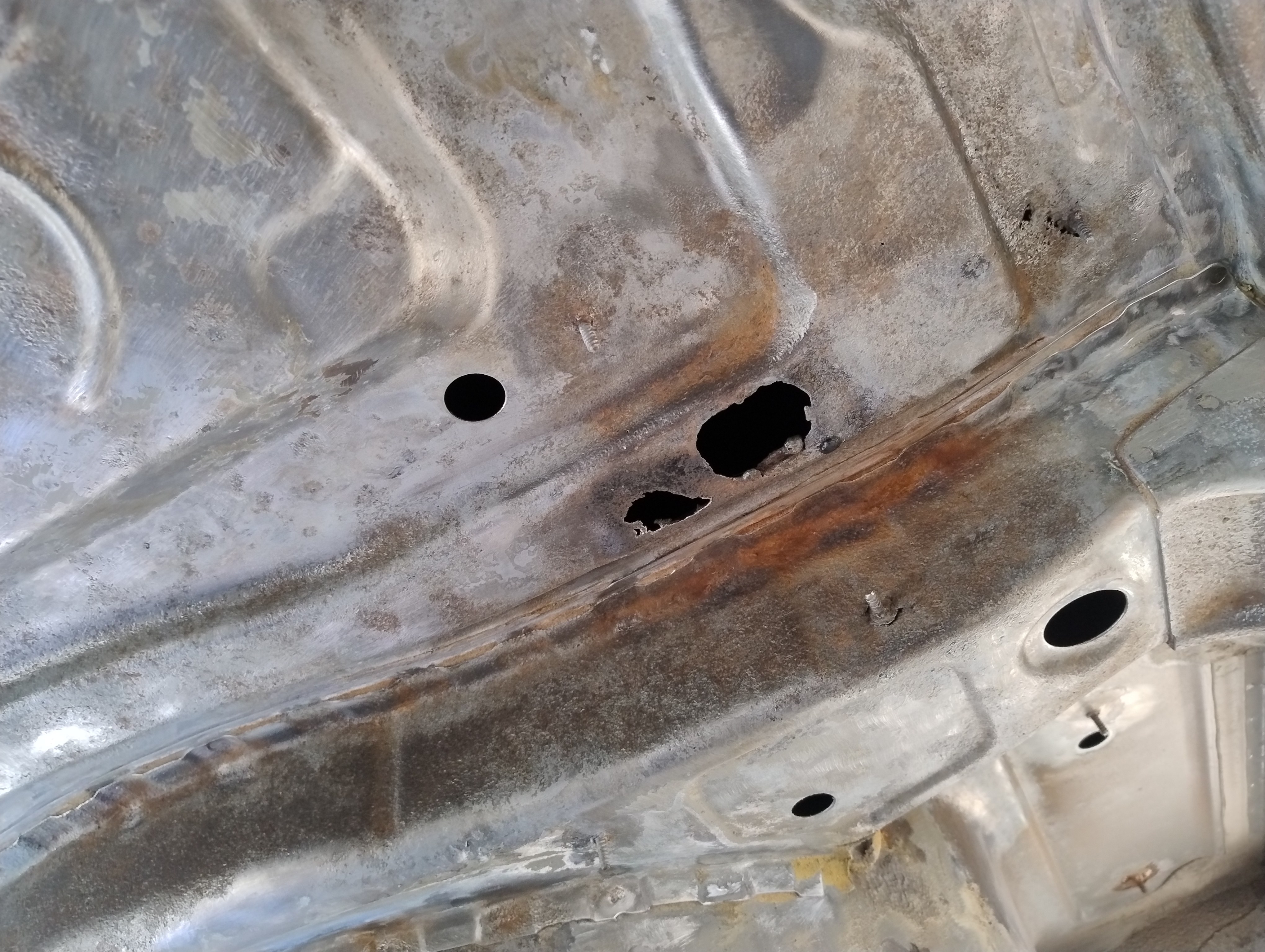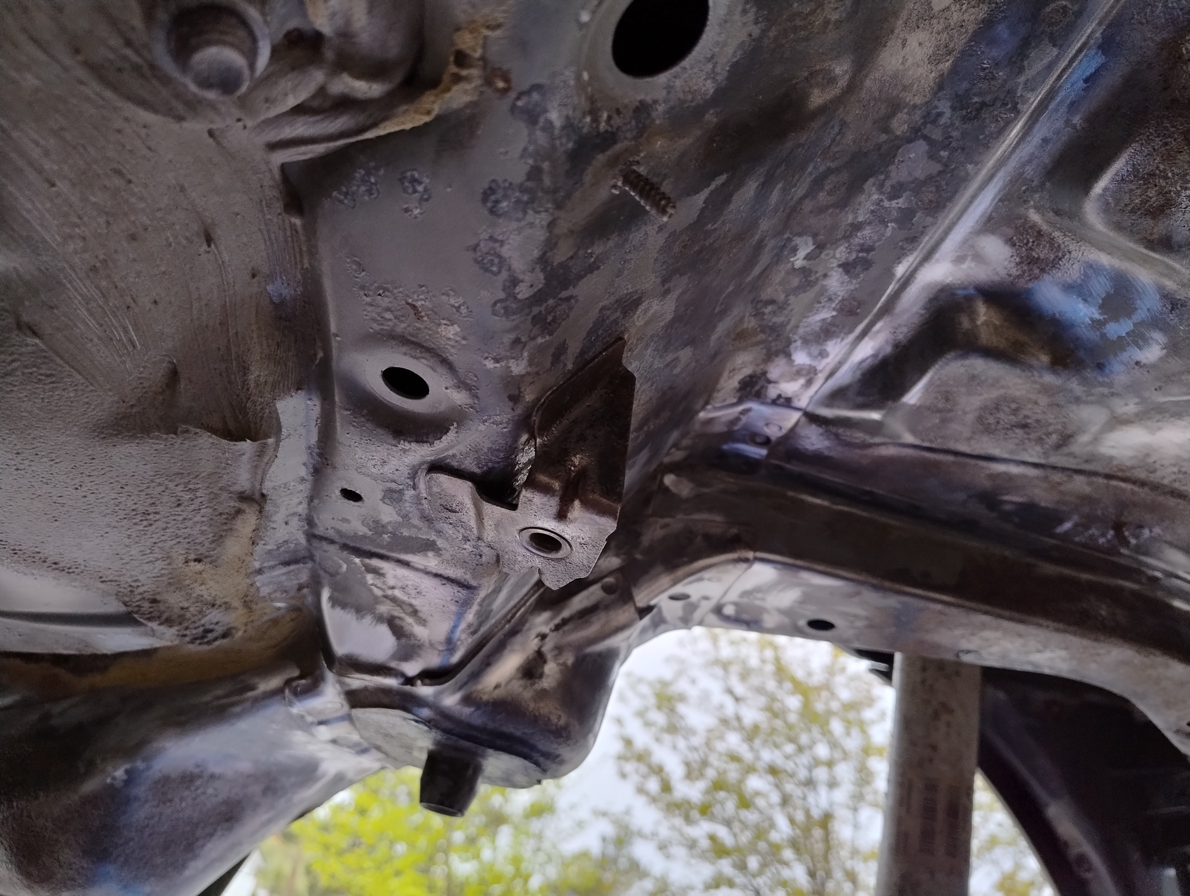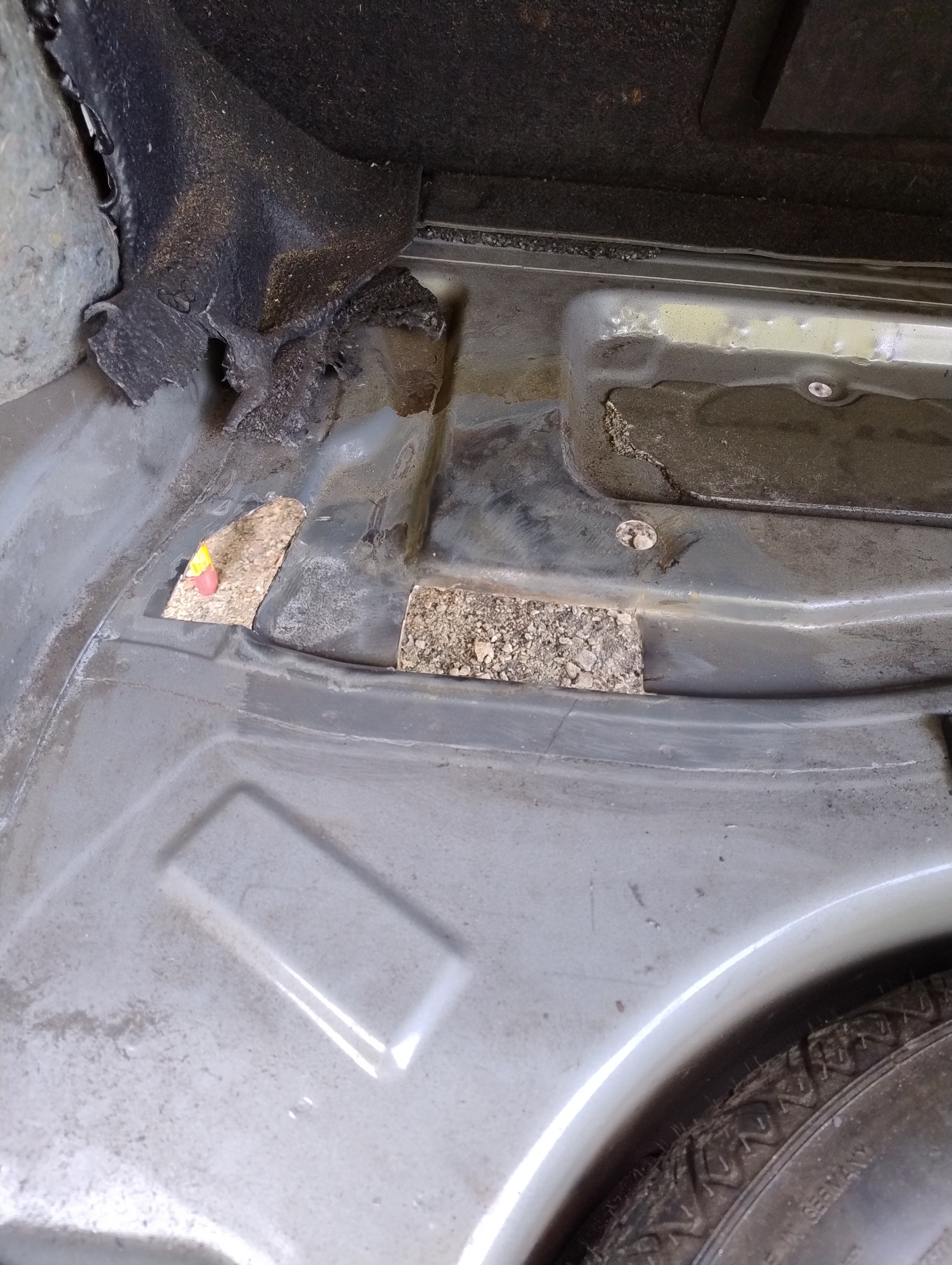 Haug530D Skrevet September 23 Forfatter Skrevet September 23 Så var man igang med rustfjerning, sist jeg holdt på med dette så leigde jeg en Kaeser M50 som kan levere 5 kubikk med luft ved 7 bars trykk så luft nok i massevis (Tror jeg brukte 15l med diesel ca) Men denne gangen tenkte jeg og bare ta det over litt lengre tid og bruke roterende stålkost, litt bilder av prosessen. Dette er da etter noen runder med slipemaskin og borremaskin og jommen meg dukket det opp ett ekstra hull ved siden av batterikabelhull, så da ble det jo til at jeg måtte kappe ut litt og sveise inn nytt stål, usikker på om jeg har bilder av dette, men om jeg finner så dukker det nok opp i tråden her ja Olaandref reagerte på dette 1