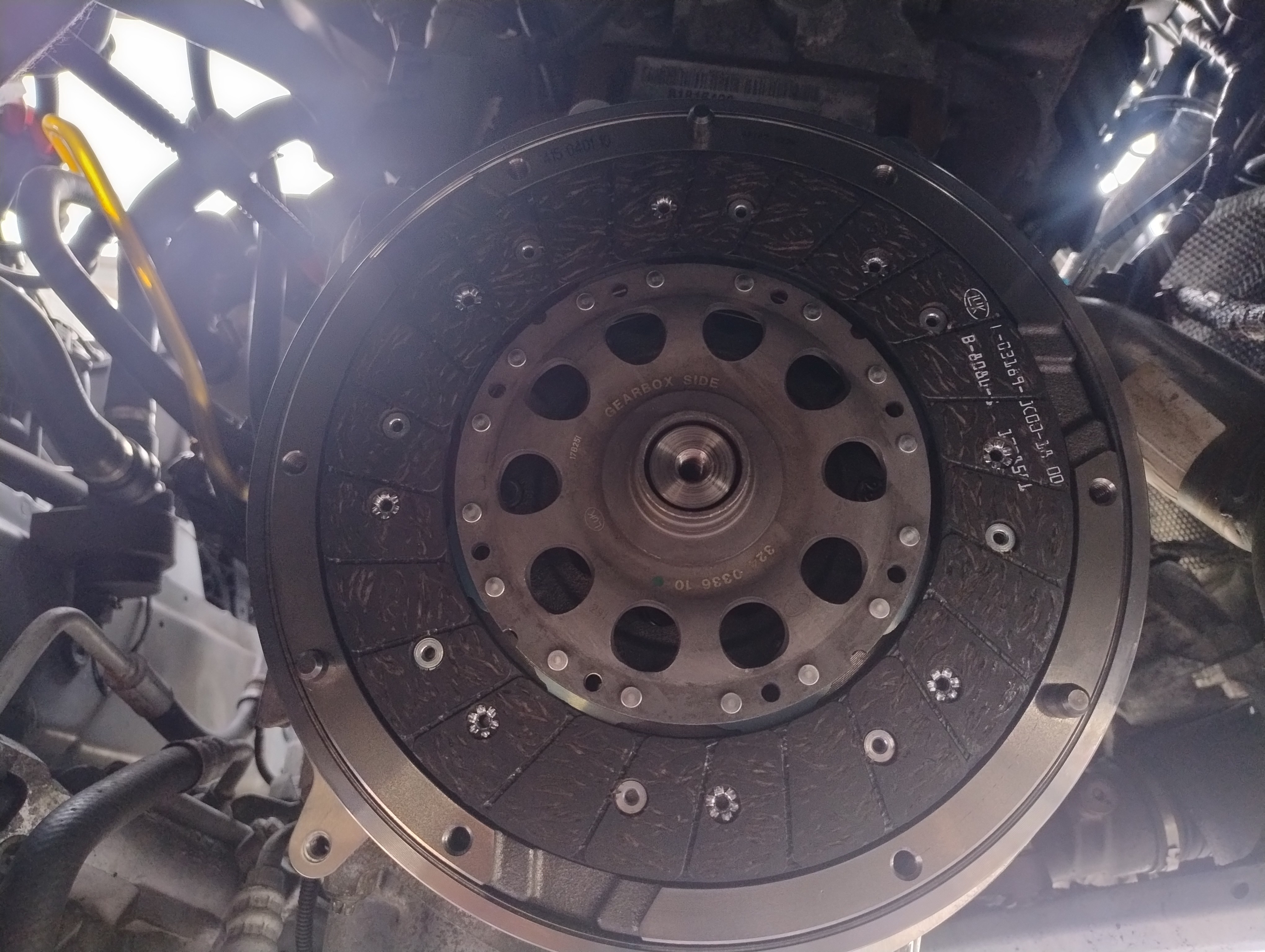 Haug530D Skrevet September 23 Forfatter Skrevet September 23 Anyway, tidligere så skrev jeg jo om at bilen var treg og få i gir, jeg håpte jo på at det kunne være noe så enkelt som utlitt stag, eller dårlig olje, så fikk jo skiftet olje og sjekket stagene uten at det gjorde noe forskjell. Så da ble girkasse revet ned og nytt dobbelmasse svinghjul, clutch og alt det andre dillet man trenger fra Thansen av merket LUK ble bestillt (Litt hell i uhell kan man vel si, så var det faktisk tilbud hos Thansen, så det fikk jeg da til 6500,-) Sentreringsverktøy hadde jeg jo ikke, så da ble det en kjapp tur på jobb og fikk laget meg det også. Girkasse nede, gikk overaskende lett og kjapt og få denne både ned og opp. Nytt svinghul på plass. Clutchplate med egenprodusert sentreringsverktøy. Når jeg hadde fått dette på plass og knekt ut den der låsesaken, så kom jeg på ette middag at jeg hadde glemt og montere den sensorplata der, så jeg ble faktisk litt redd for at spennet i clutchplata skulle forsvinne når jeg demonterte den igjen, men det gikk fint, fjærene rikket seg ikke når jeg skrudde den ned igjen Ny sensor ble også montert da jeg ikke fikk den gamle hel uttav simmeringplata. Sentreringsverktøy og svinghjulslåsepin (Egenprodusert) Simmering ble også byttet, hvorfor ikke, når motor har gått over 300k, jeg aner ikke når disse ryker, ser på bildet der hvor sensor hadde knukket av, mye eir og dritt. RemyNG, mslello og mr.pingu reagerte på dette 3