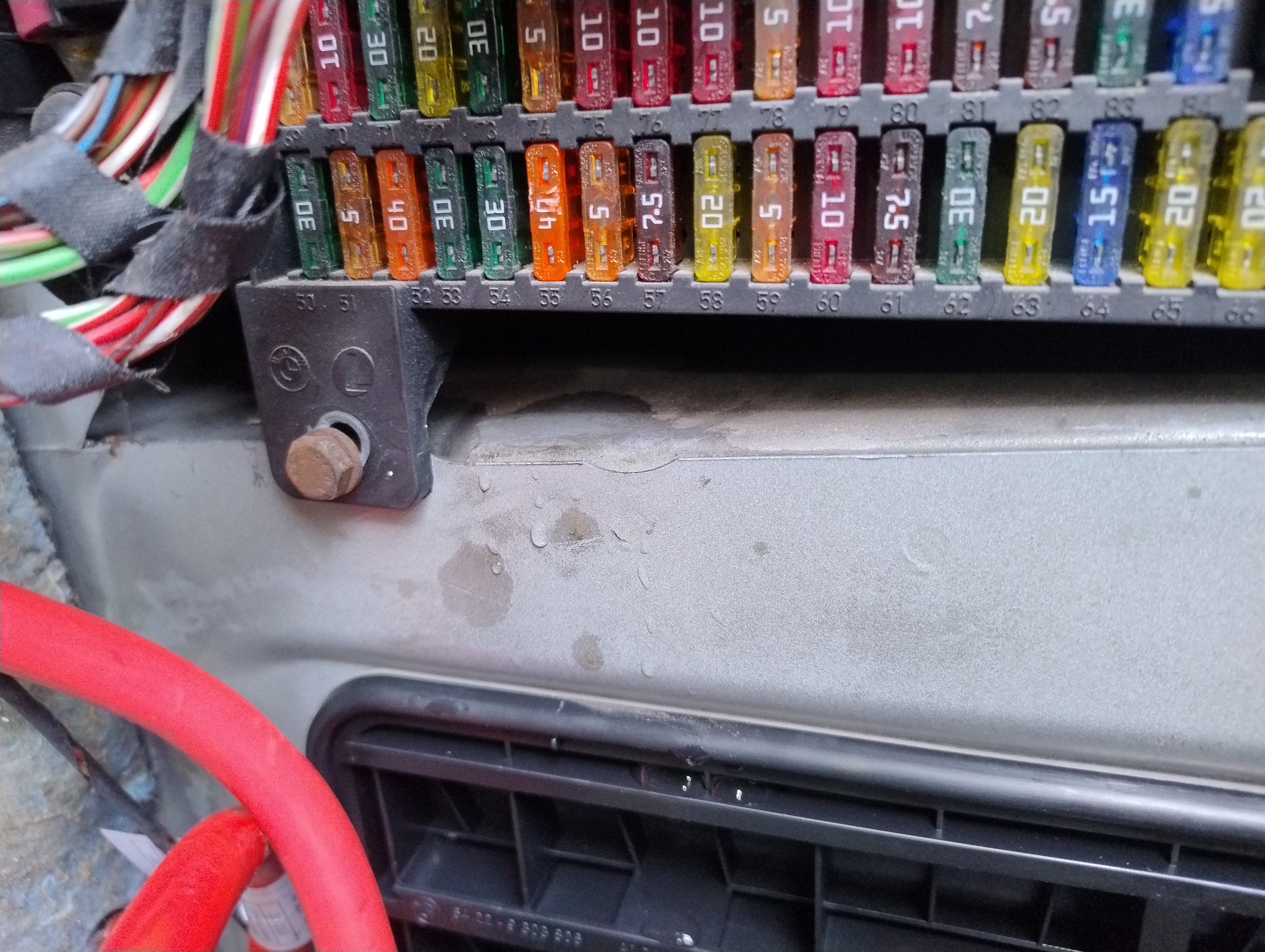Haug530D Skrevet 9 timer siden Skrevet 9 timer siden Noen som har en formening om hvor dette vannet kan komme fra? i fra bakover så er det nedover så jeg tenker det må komme derfra eller noe, altså vann rett under sikringene.