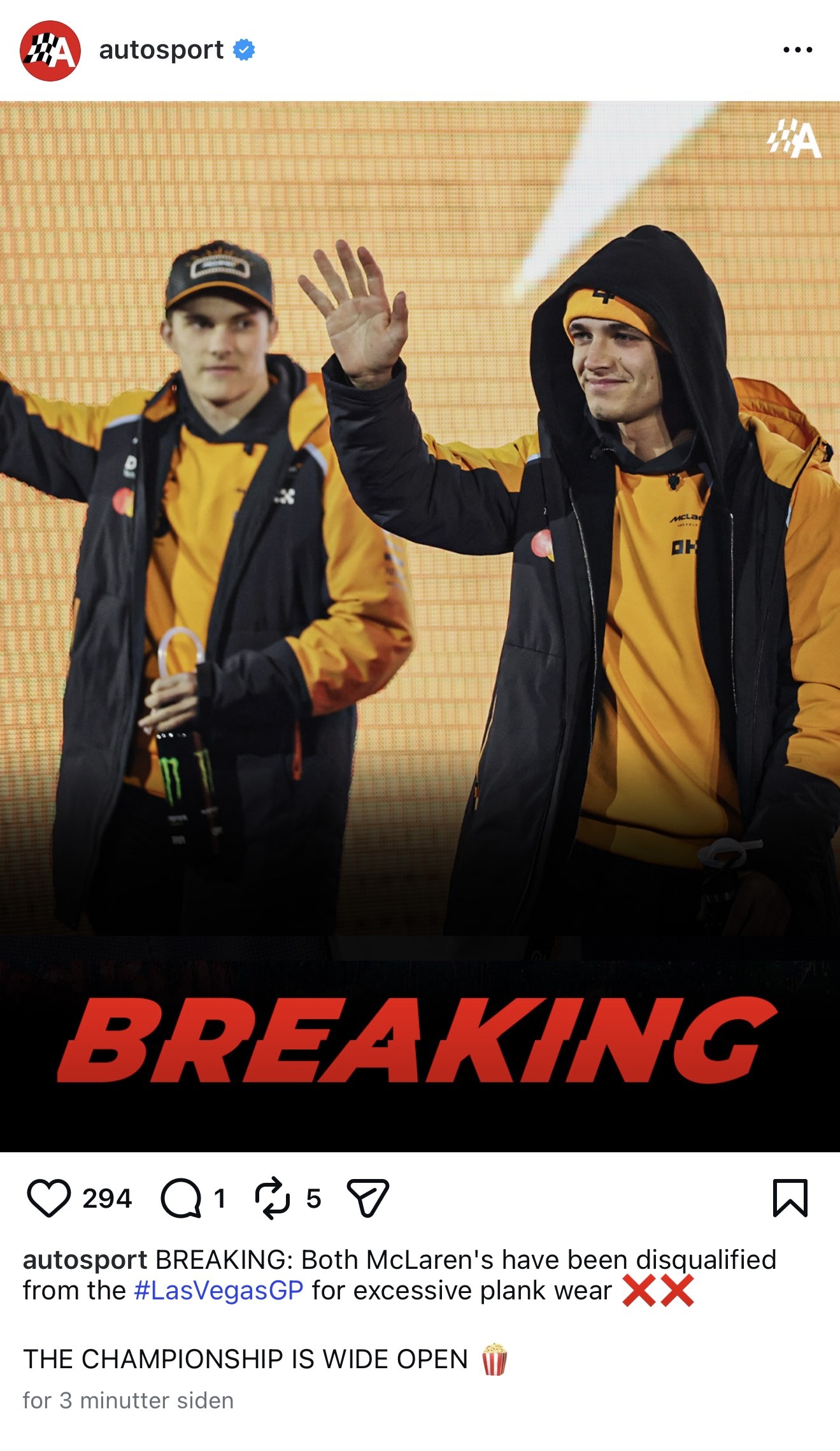mr.pingu Skrevet i går, 11:24 Skrevet i går, 11:24 😱Hva har skjedd her da? Stor tabbe av McLaren spør du meg! Det blir veldig spennende sesongsavslutning 🤩