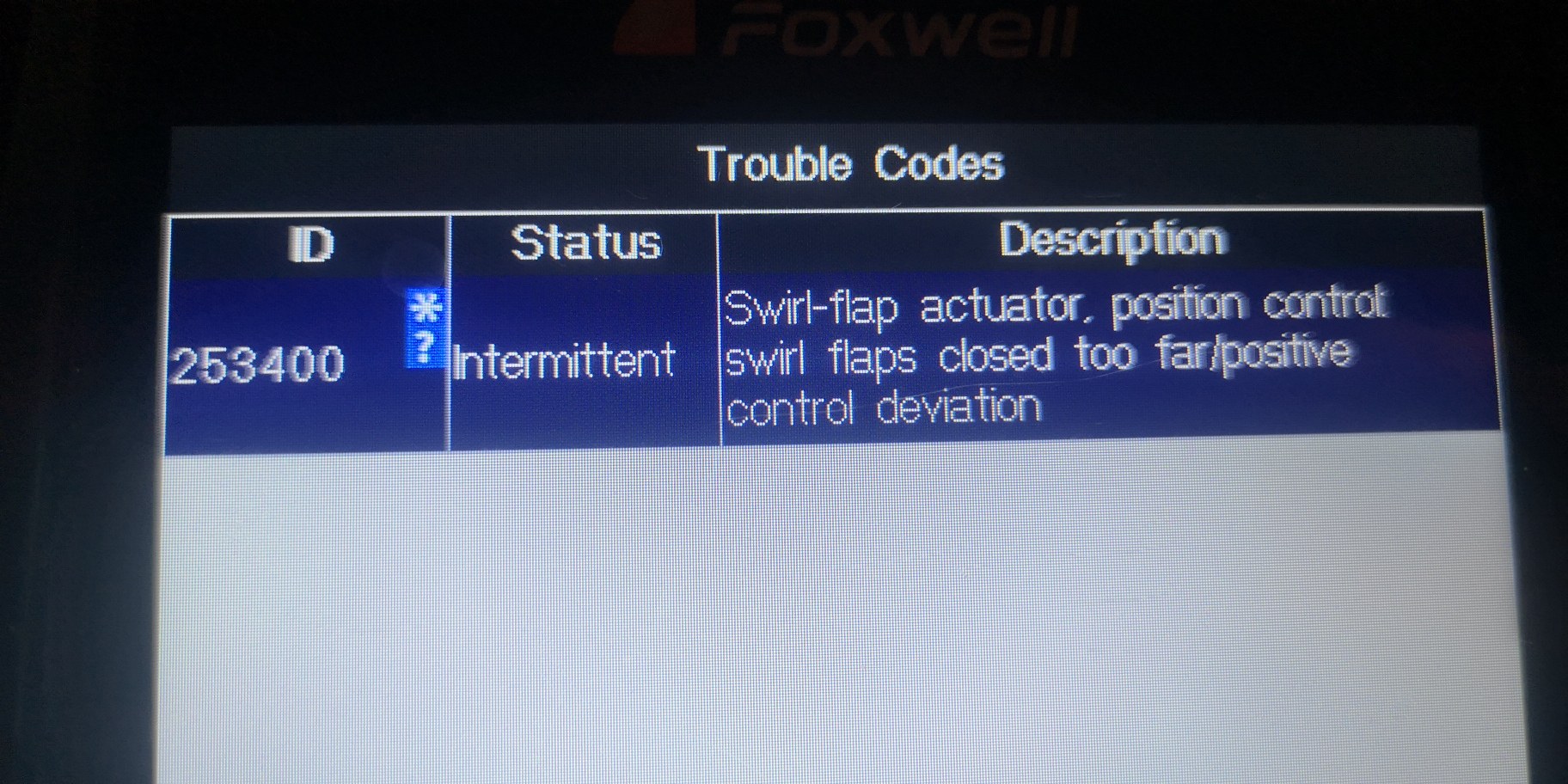 e39en Skrevet i går, 20:06 Skrevet i går, 20:06 Hei,jeg skifta komplett innsugingsmanifold med akturator til swirl flaps i april i år,merke DR Automotive til min N57 motor 525d 2011 model.Den var så kokset.Får opp feil 253400 på swirlflaps etterpå.Feil går å slette,men kommer igjen ved kjøring.Hva kan vere grunnen til dette når delen er helt ny?Må det kalibrering til og oppdatering av programvare?Legger ved bilde av feilkodeleser.km:130000