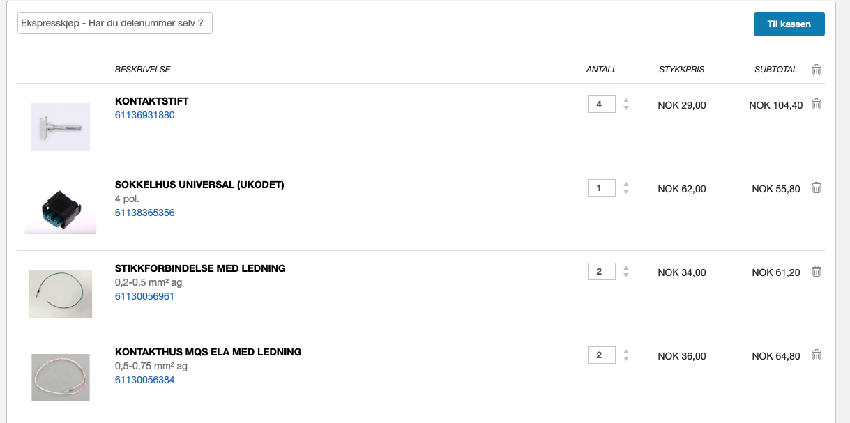 mr.pingu Skrevet Tirsdag kl. 09:12 Skrevet Tirsdag kl. 09:12 1 minute ago, VictorH04 said: @E.C. Takk Skal sende mail til KOED nå, ser dem har mange fine diagrammer og oversikter over kabelsett og repsett. Sendte mail til Sulland også men han ville ha nummer på selve kontakten, noe som jeg ikke har nå siden det er utydelig på bildene... Ser nummer ganske klart på hvite delen 1-968981-1, dette er TE (OE til konkakter og kontakthus) nummer; 1-968981-1 - NTI - The Connector People. Ut fra TE nummer er det med kjapt google søk mulig å oppdrive BMW nummer: 968913-1. Den tar vanlig MQS hun pins. (RealOEM.com - Online BMW Parts Catalog) VictorH04 reagerte på dette 1