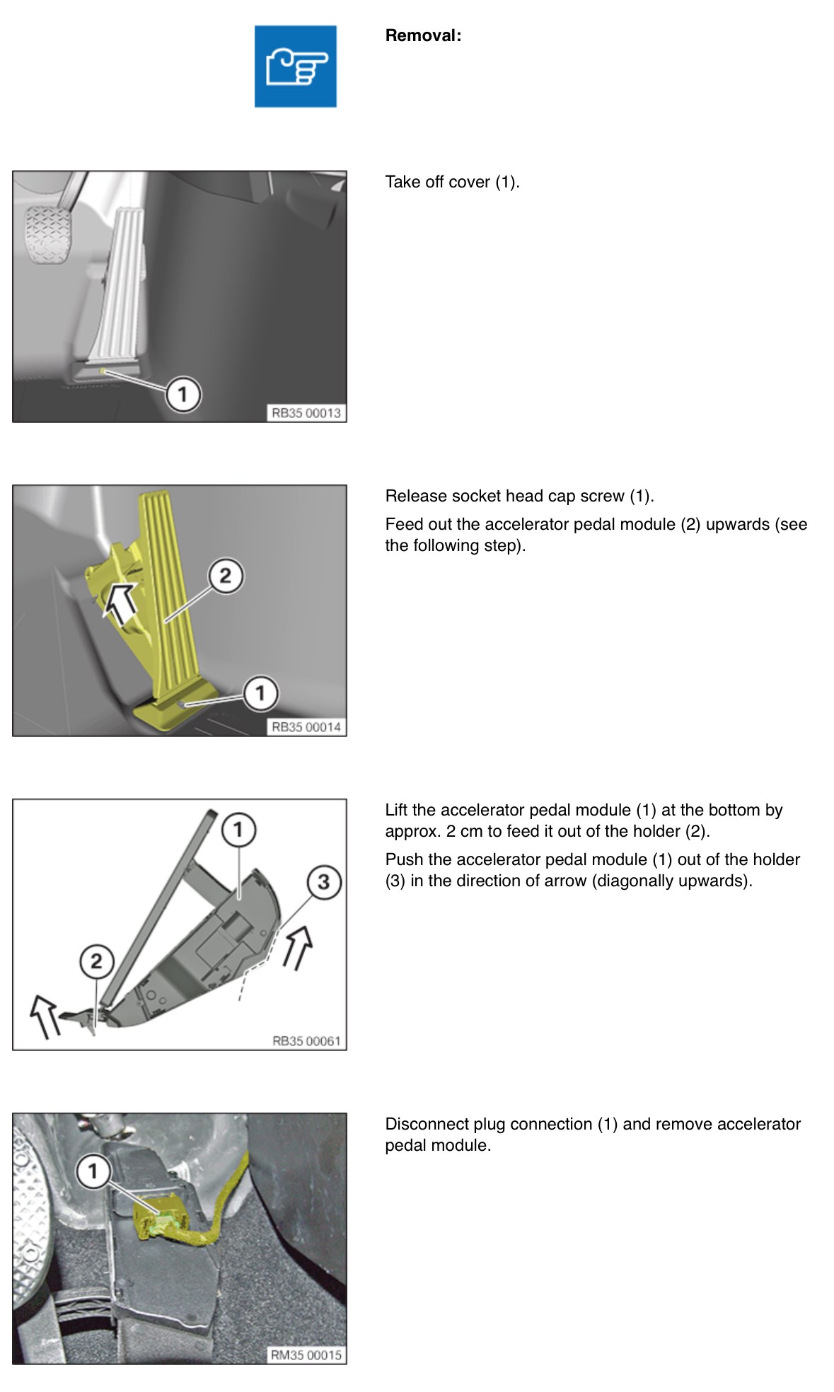 Norbert Skrevet Tirsdag kl. 14:20 Forfatter Skrevet Tirsdag kl. 14:20 2 hours ago, mr.pingu said: Sitter skrudd med den skrue nederst og så er resten klipset fast. Om plasten er knekt vil jeg tro du må ha ny pedal. Koster brukt ikke så mye Gasspedalen er 1 del. Kan nesten bruke hvilken som helst gasspedal, jeg har en G-series i min F4x. Synes den var finere med metal Hos min var det forresten en garantisak at den har løsnet (forrige eier). Legger ved instruksene, veldig grei jobb å gjøre selv. Takk for tipset. Godt å vite at det er en grei jobb å gjøre selv. For en bilanalfabet (med dobbelmatte) så er det godt å høre at byttet av gasspedal ikke er komplisert.