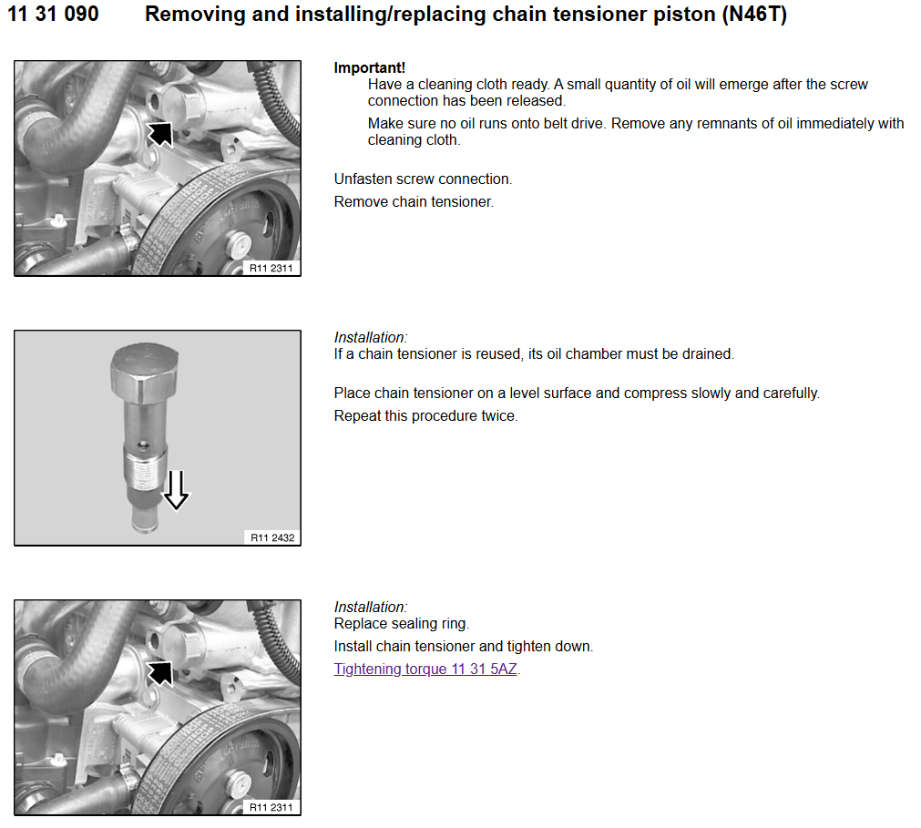 E.C. Skrevet 2 timer siden Skrevet 2 timer siden Du må tømme den for olje før den går inn igjen. Ha den stående på benken med hodet opp og trykke ned et par ganger, så all oljen som er innvendig i den renner ut. Strammes med 65 Nm. Du kan vurdere å kjøpe ny strammer siden disse motorene er kjent for å ha problemer med kjededrift.