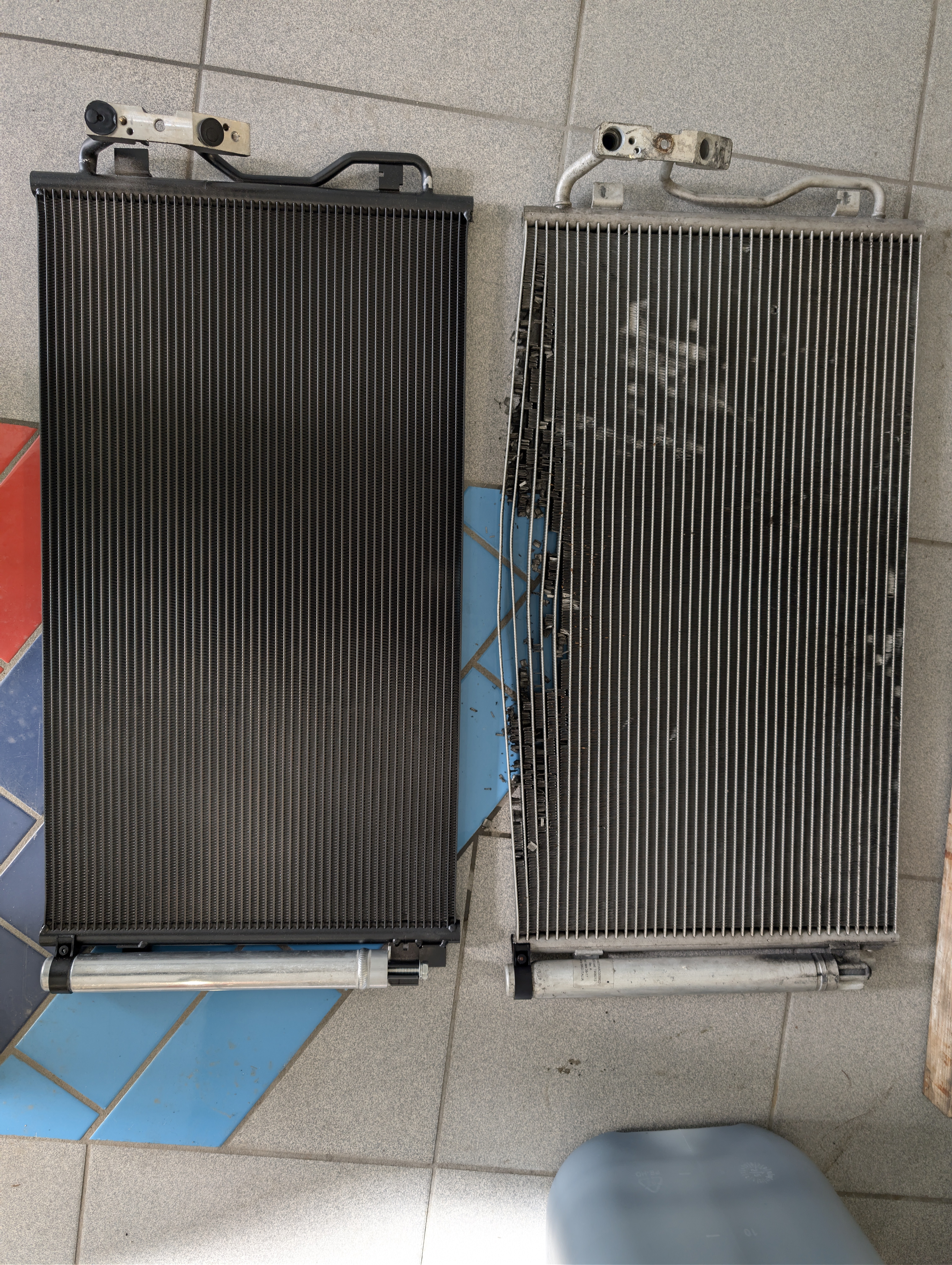 Øyvind L. Skrevet 1 time siden Forfatter Skrevet 1 time siden Varmet de og etter litt herjing så løsnet de, men de satt hardere enn jeg hadde trodd. Nå har den fått nye AC radiator med nye o-ringer. Håper den er tett når jeg skal fylle gass til uka. Game radiator var klar for å bli byttet ut. Saltet ødelegger mye. Og Mahle made in Kina.. Vi for se hvordan den kvalitet er.. ahj, K.F, sveigis og 1 annen reagerte på dette 4