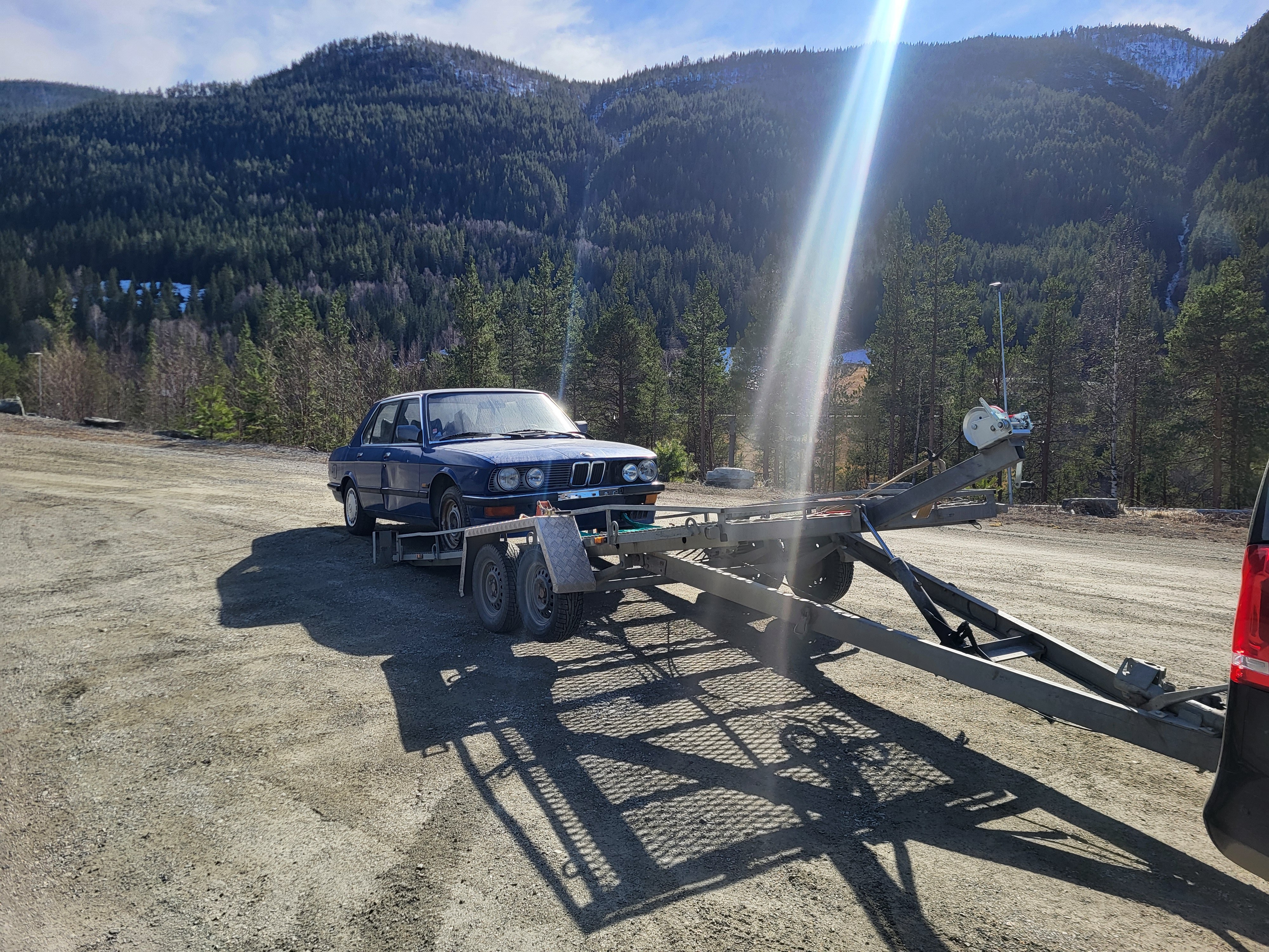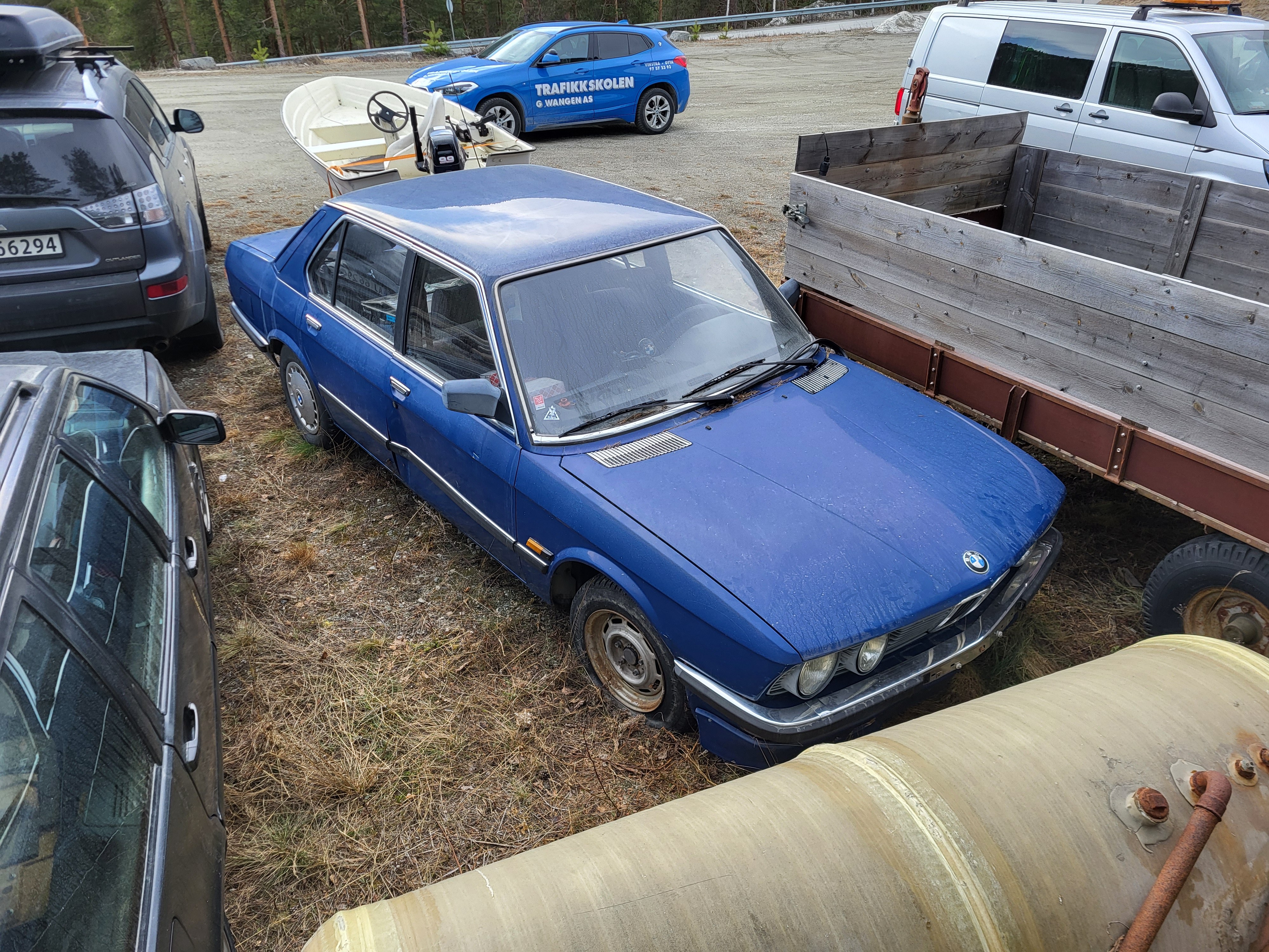 Vegard_ Skrevet 8 timer siden Skrevet 8 timer siden Nå var det endelig min tur til å eie en E28! Fargen er Saturn blue over blå stoff interiør, manuell girkasse (eneste kravet jeg hadde). Bilen er HS registrert og har vel holdt seg mesteparten av livet i nærheten av eller i Gudbrandsdalen, nå får den fortsette livet her i Øyer (om jeg får den i gang). Denne har nok mange historier bak seg, og om noen tilfeldigvis har noe kjennskap til denne så gjerne kommenter! Bilens skiltnr er HS58210 Den ble lagt ut på Facebook og jeg hoppet umiddelbart inn i bilen og kjørte til Otta for å se på den. Etter en hyggelig prat med selger så kjøpte jeg bilen der og da. Dette er en enkel 518i med manuell gir i litt grov tilstand, men den ser relativt grei ut totalt sett 🙂 den har vært avregistrert siden 2009, og kun blitt kjørt litt her og der. Om det har vært på prøveskilt og noen lengre turer eller om det kun har vært rundt på gårdsplassen vet jeg ikke. Det jeg ble fortalt er at en tidligere eier bytta noe deler rundt gnist og tenning, men så ikke fått start på den. Dette var ca 2-3 år siden fikk jeg høre. Den stod godt inneparkert når jeg tok første turen for å se på den. Det er jo ikke noe problem når folk som bruker plassen er medgjørlige, vi fikk flytta unna det som trengtes. Det var en liten kamp for å få den opp på hengeren med igjenrusta bremser og flatt hjul. Hjemme og inn i garasjen, ved siden av neste "daily driver", en v70 D5 Det fulgte med haugevis av deler, og de skal jeg vise fram her inne. Jeg må bare gå gjennon alt først og sortert. Interiøret er i ganske god stand for hva bilen er tenker jeg. Dekselet til ryggen og en B stolpe er vel det eneste som burde gjøres noe med. Også til slutt det jeg har sett som må gjøres noe med, div lykter må byttes og antageligvis må det sveises rust før PKK. Høyre fordør hadde fått seg en ganske god bulk, i følge tidligere eier var en snøplog uheldig og kom borti. Slik rust er det på begge sider, gulv, kanaler og hjulbuer ser ellers ganske bra ut for alderen. Noe arbeid må til i motorrom. Panser og koffertlokk er veldig bra for rust På bilen stod en pfeba frontleppe allerede montert, og mtech spoiler lå i baggasjerommet. Denne tråden blir det nok oppdatert ettersom jeg gjør noe på bilen, da det blir litt lenge mellom hver oppdatering i E39 tråden selv om jeg gjør mye på den og. Siden jeg er helt fersk på E28, gjerne kom med tips, tricks og rop ut om jeg gjør noen grove feil! 😅 ///M-ini95, Sverre 2468 og sveigis reagerte på dette 3