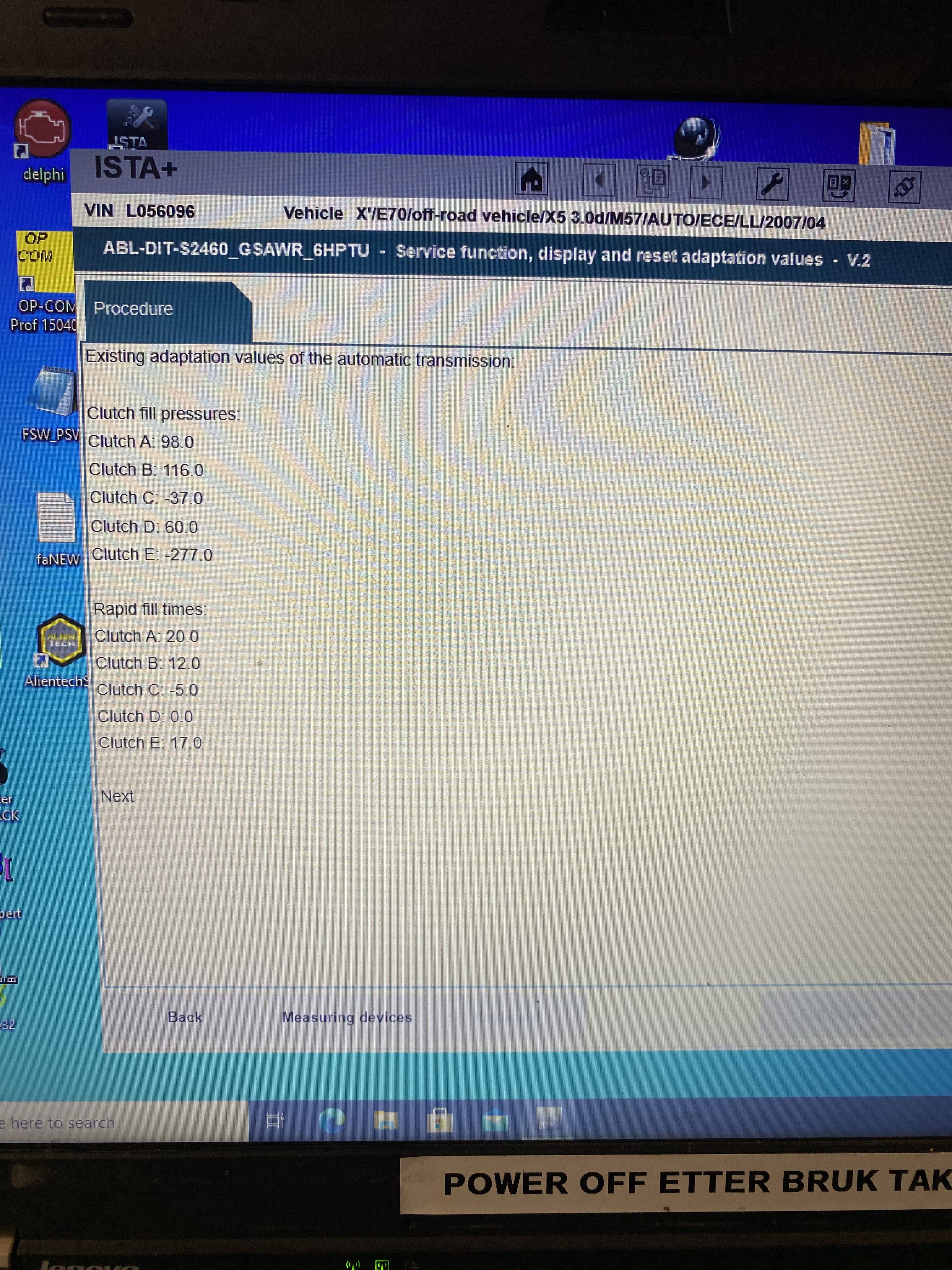 Iv3rs3n Skrevet 14 timer siden Skrevet 14 timer siden Kan ikke se at du nevner å ha lest ut adapsjonsverdiene på kassa. Verdiene kan fort fortelle deg noe om 4.gir. Siden det heller ikke er opplyst, har du prøvd å kjøre ny adapsjon på kassa etter bytte av olje? (Ikke gjør det før du evt har lest ut og notert deg gamle verdiene som nevnt over) Vedlagt er et eksempel tatt fra min: