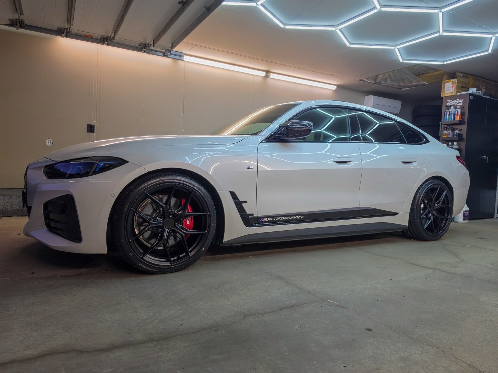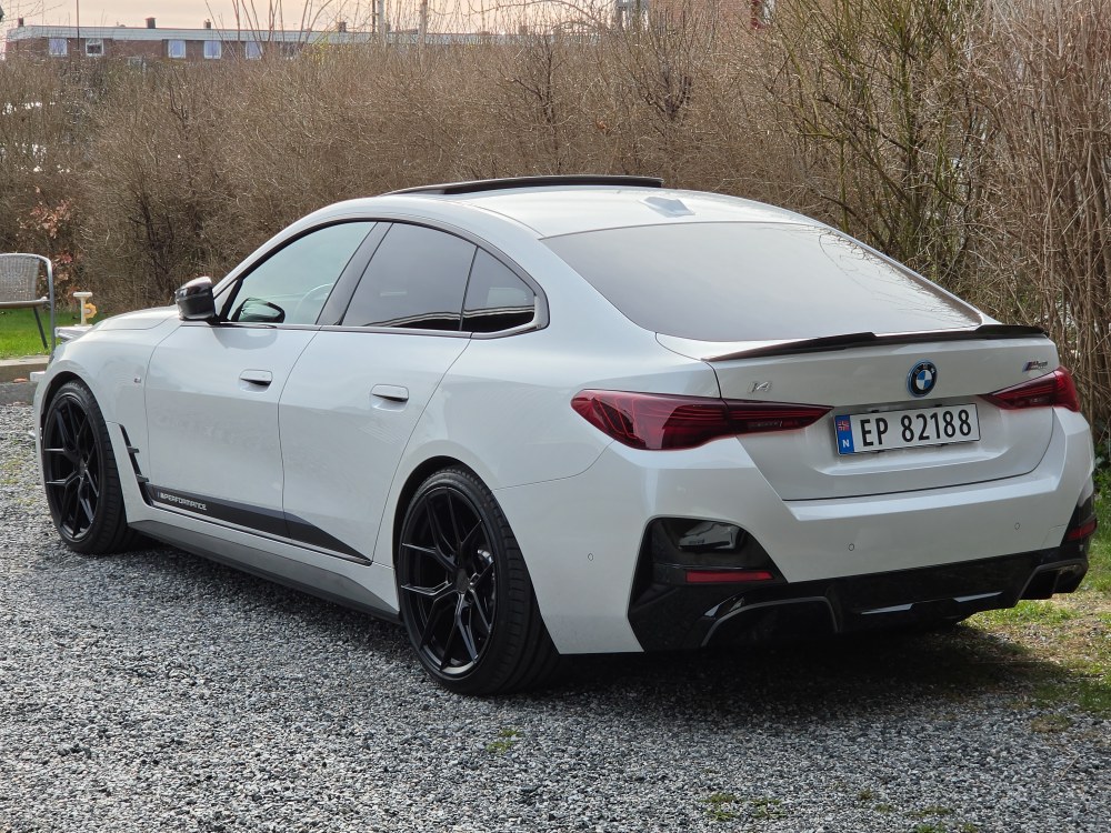 Takk for det. Settes pris på🤩 Ja syns den satt bra. Litt annet enn M-Performance og de mindre fra Kina. Kommer mer bilder, men nå står bilen på 3 vinter og 1 sommer😅 Og møkkete.