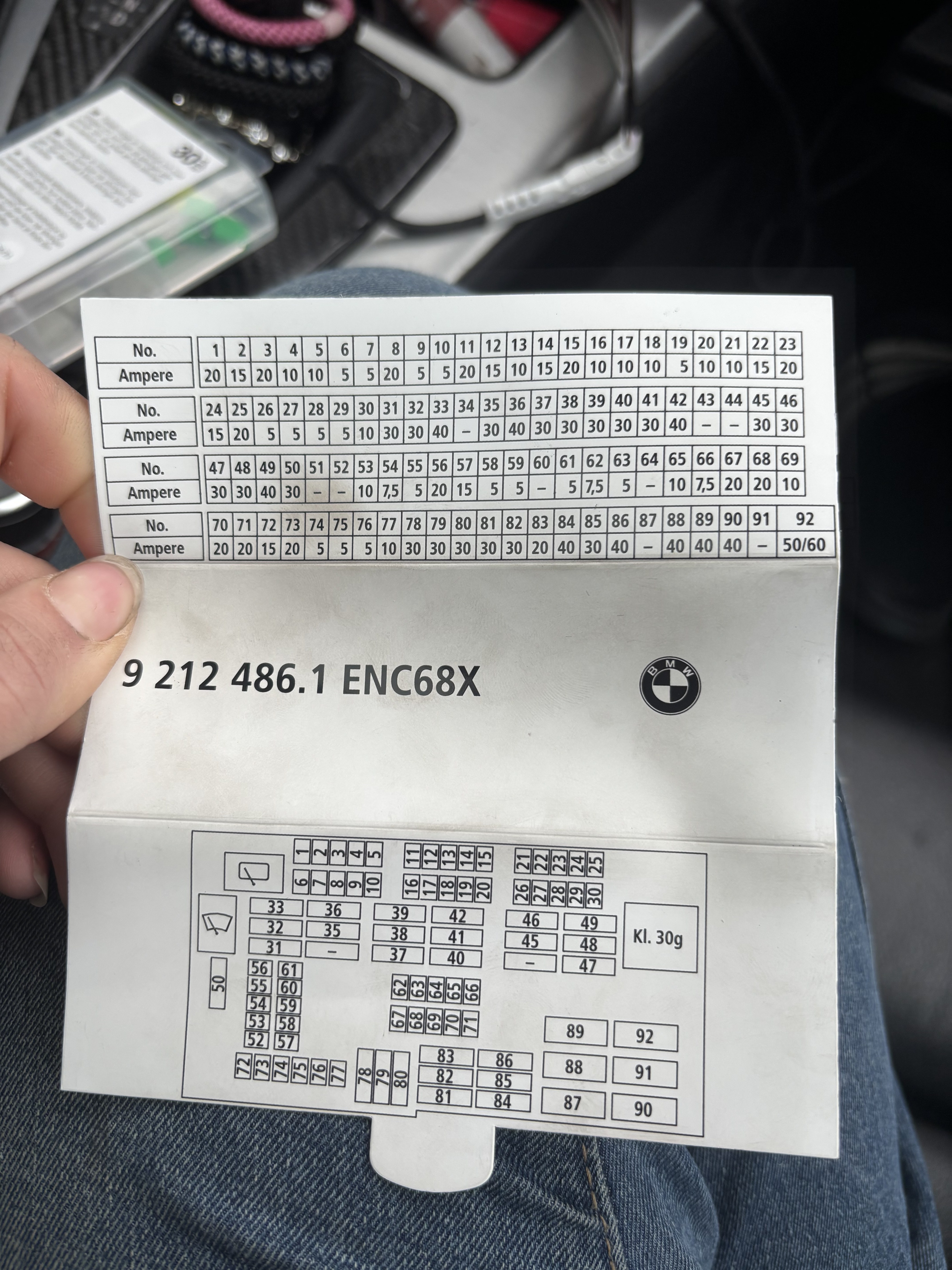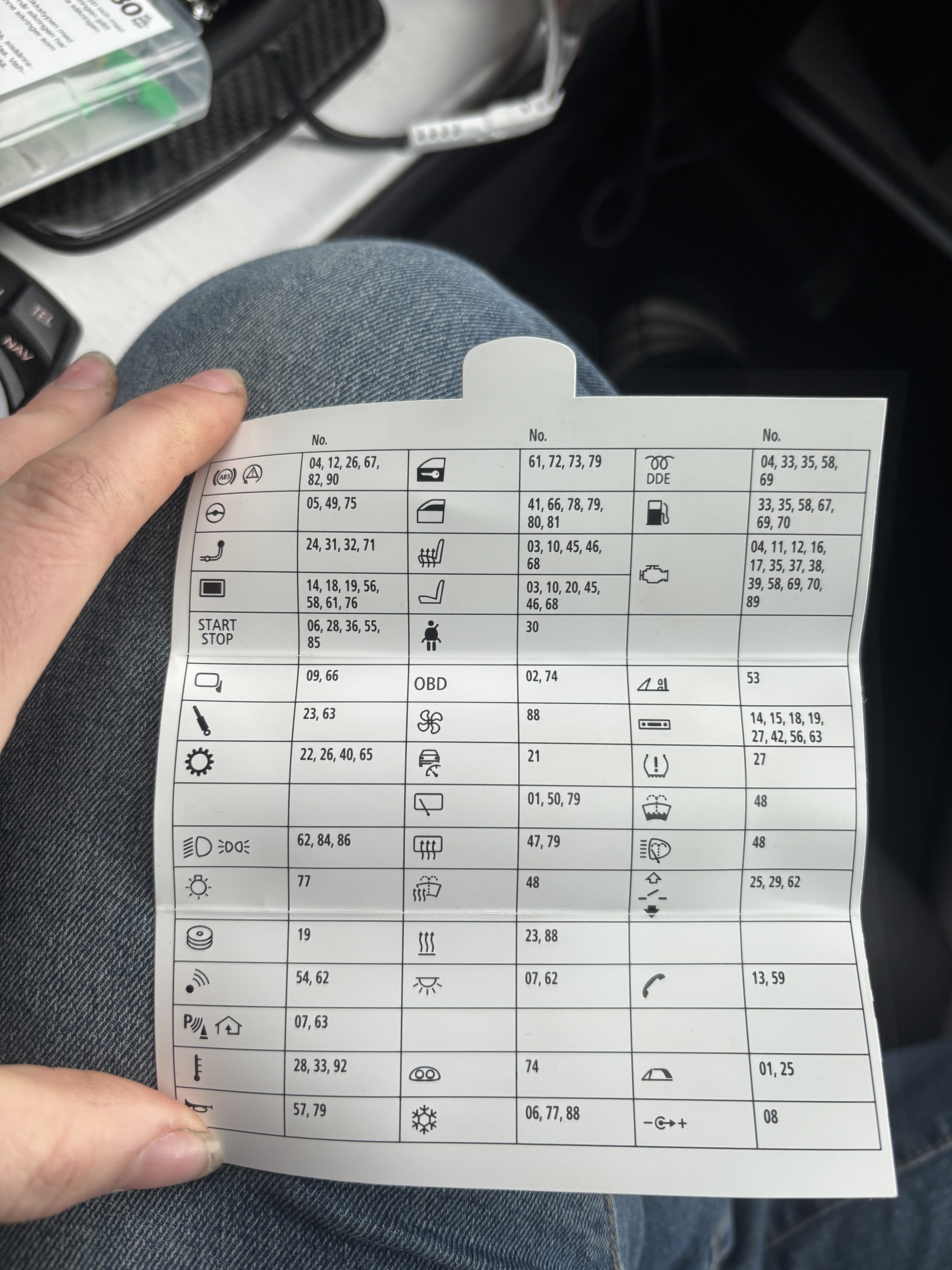 1. Begynner med å jobbe med resursene jeg har, nå har jeg sitt på alle sikringer som har dør symbolet med nøkkel og bare dør symbolet, såg at sikkring nr 61 var gåen litt bakrunnshistorikk på bilen da jeg kjøpte den så funket ikke setevarmen va viste det seg og være en sikkring som manglet så det er jo åpenbart noen som har vært her og rotet før ser at det er mange sikkringer som er på arket som mangler i sikkringsboksen, dette kan jo være ustyr bilen ikke har, men er det vits å sette i sikkringer der det mangler? Hvis jeg finner ut hvilken den skal ha ser ikke ut som jeg får til å låse/låse opp med dørhåndtak men keeyless start er jo verfall et pluss er det nå jeg kan begynne å tenke at håndaket er problemet? Etter jeg satt i ny sikkring har jeg kjørt en tur og stoppet og låst bilen etter på slik at den skal gå i dvalemodus, og den startet med keyless start etter en time