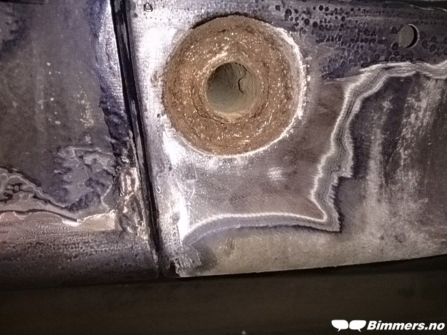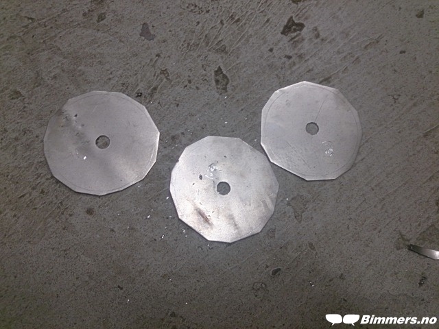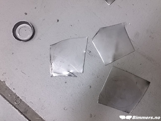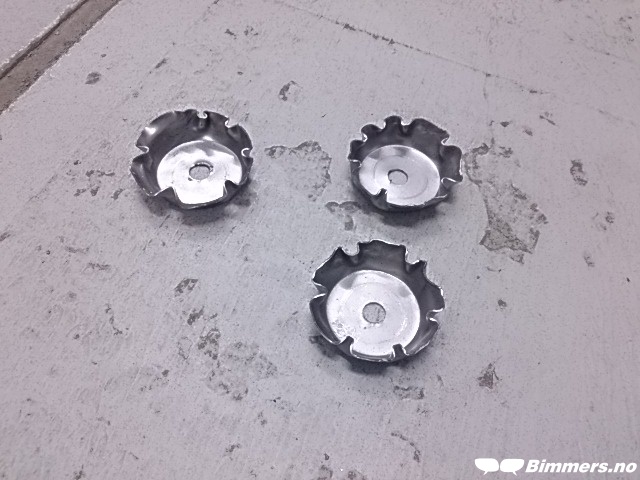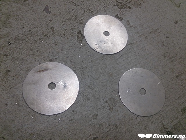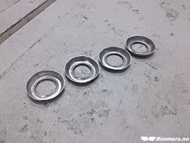 Kjøpte en bil til frøkna for en liten stund siden, og tok den inn på jobb for å fikse litt (mye) tekniske feil, og utbedre noen små skavanker og lakkere hele bilen. under demontering finner jeg den typiske e36-syken med rust rundt jekkfestene (ikke veldig overrasket) her var jeg da såpass heldig at kanalene ellers var hele og fine, så da var det unødvendig å skifte hele delen. jeg tok i stedet en liten wheeler-dealer og lagde nye sveisedeler selv. lekende lett om man har litt verktøy for hånden. (som man bør ha uansett hvis man skal gjøre noe med biler) liten DIY følger: (jeg grovlagde en først for å se hvordan det ble, og deretter tok jeg bilder underveis på de tre neste) Her er da problemet. man ser lett at "gropa" rundt jekkfestet er dårlig. Her har jeg merket opp en ring som er litt større enn platen jeg trenger, på en oppstykket stålplate. Grovkuttet sirkelen Funnet senter og borret et 10mm hull Finkuttet sirkelen Så setter jeg platen i en manuell lagerpresse med en hylse på størrelse med ytre kant på jekkfestet på en side, og en hylse på størrelse med ytterkant på selve "røret" til jekken. dette skues sammen. Voila, ut kommer ferdige "colakorker" Så er det frem med et trapes-bor og borre opp senterhullet til samme diameter som ytterkant på jekkfeste-"røret" og kutte av den bølgete kanten. og vips-ferdig. Ser ut til å passe bra, så da er det neste steg, å kutte bort ødelagt stål og sveise litt. og RUSTBEHANDLE godt. god som gull.