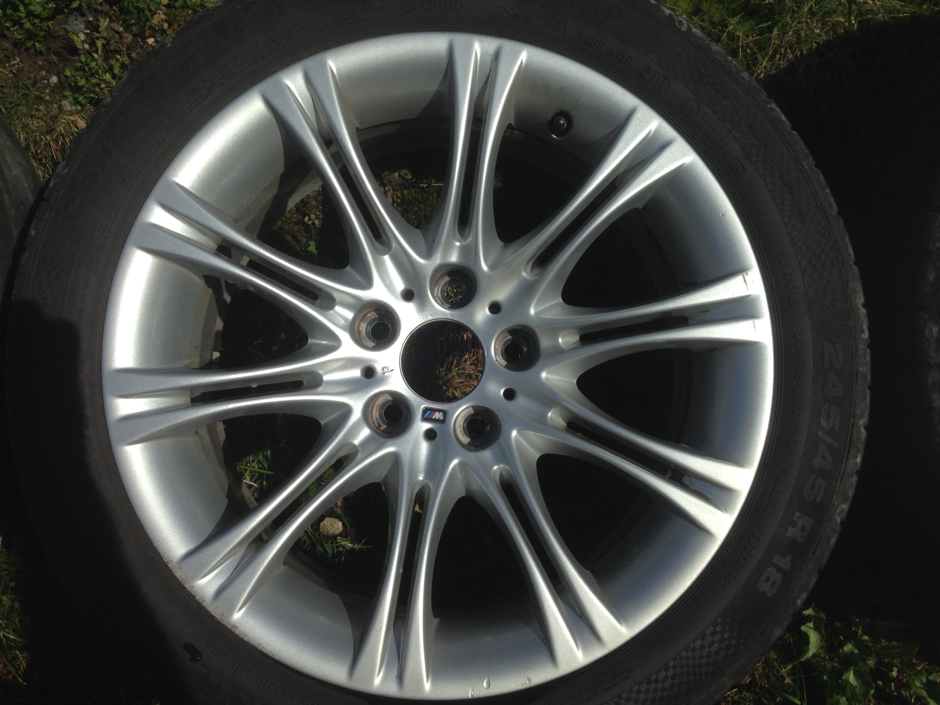 De er fortsatt tilsalgs. Nå med ny eier/selger og helt ny pris. Jeg solgte til lav pris for å bli fort kvitt, men den nye prisen synes jeg er en smule drøy. Felgene var med noen kantkjøringer og nesten utslitte dekk. Regnet med at de kom til salg igjen siden kjøper kjørte en e46. Her er de på Finn http://m.finn.no/bap/forsale/ad.html?finnkode=75643687