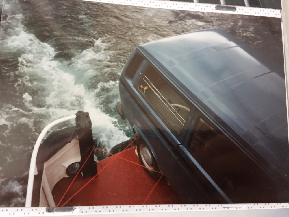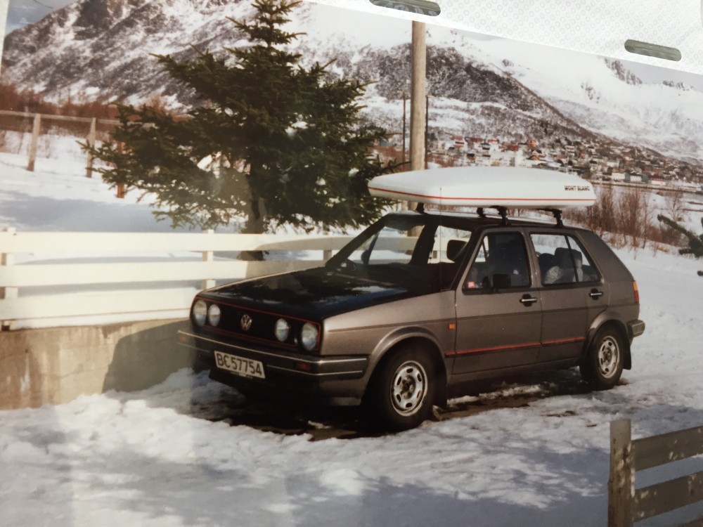 ..prat om hva vi vokste opp med... Jeg startet mine år i en Golf(II) 2-dørs før opphavet gikk over til en 4-dørs-utgave og deretter en Caravelle, som forøvrig var livsfarlig med bakhjulstrekk og bakmontert motor, vektfordeling var fremmedord. Byttet så til Golf(III) igjen før de gikk til Passat. Vi var ferdige i barnestol da Passaten kom i hus. Legger ved noen bilder fra "back then" som jeg postet i Fredrik sin tråd for 2-3 år siden. Og Caravellen bak på en ferge. HMS i høysetet. Kan tro reaksjonene til folk om dette hadde vært idag