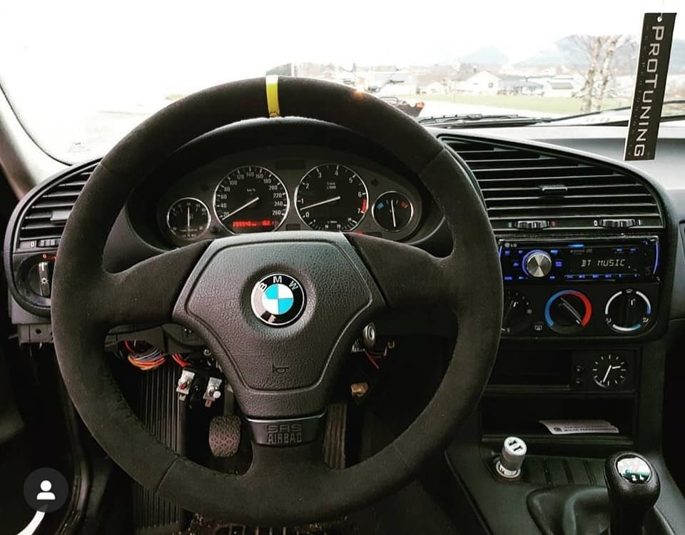 Jauda fått gjort litt idag også montert nye rattet jeg kjøpte, itillegg montert carbon bakgrunn i speedo med gule nåler som jeg malte, synes det ble ganske stilig ellers har jeg montert resten innvendig i tak, mangler kun å trekke opp lukedelen i alcantara, henter også ny radiator imorra så jeg får prøvd bilen en tur. Prøvde meg også på emblem i grillen, modifisert BBS emblem med vintage sticker, litt usikker enda på hva jeg synes egentlig men liker ting litt annerledes