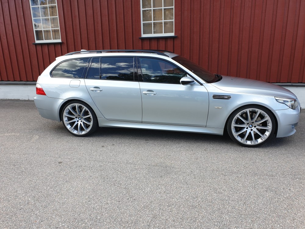 Hadde disse Hargte felgene på E61 M5, og med 30/25 profil som @Saltkjelen nevner. Legger ved bilde. Er god plass både foran og bak, samt de ser ikke for store ut til å være 21".