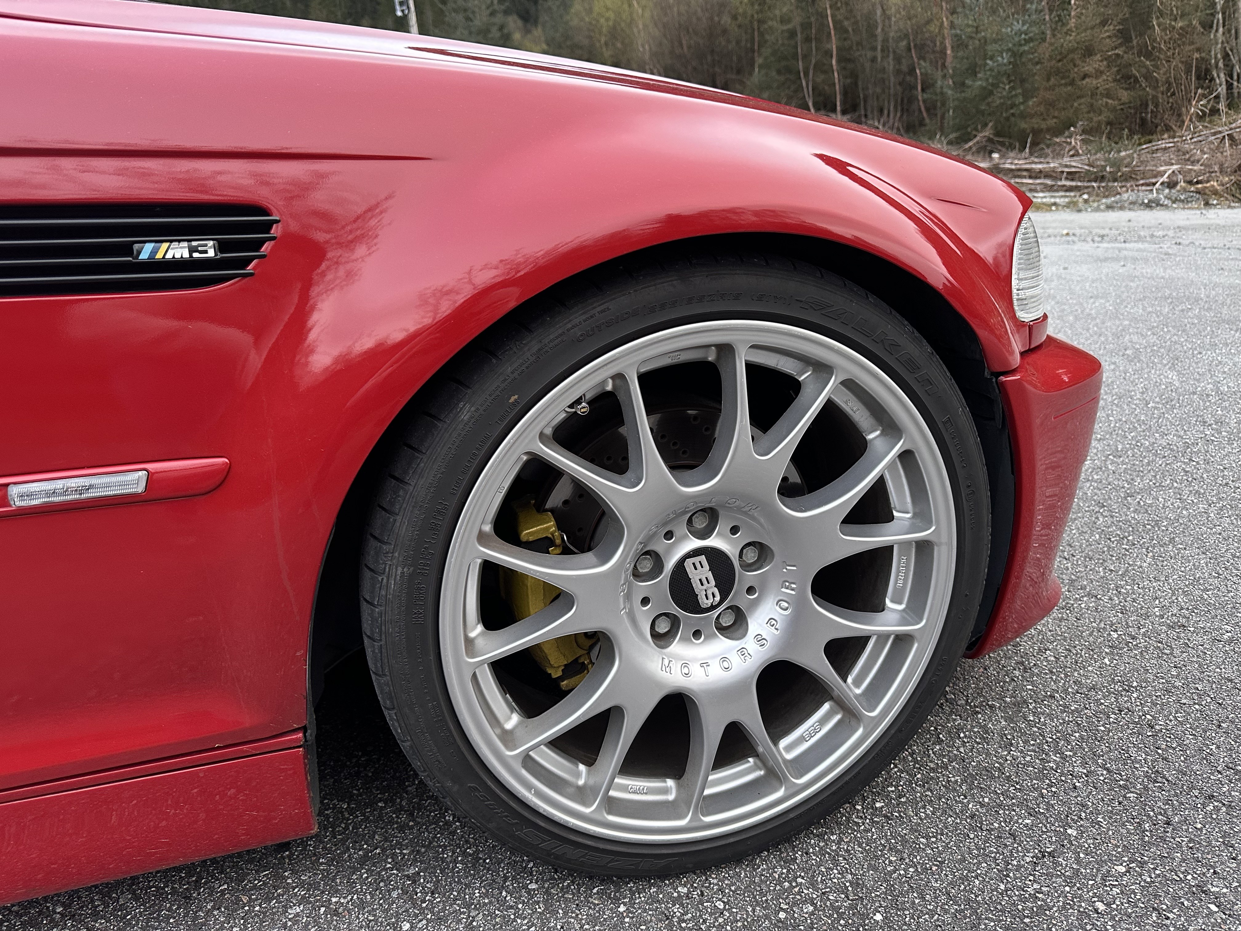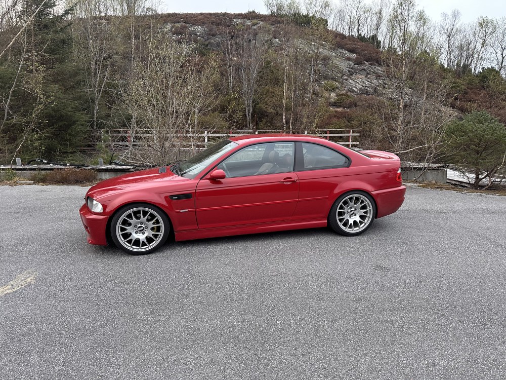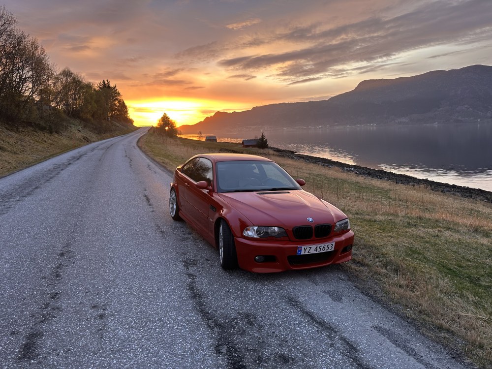 Hadde egentlig tenkt å være uten bil en stund nå, sånn utenfor E34 i hvert fall, men jeg merket savnet etter en kosebil som kan taes til treff, eller fineværsturer, så når denne dukket opp på finn bestemte jeg meg for å se på den på tur hjem fra påskeferie. Ombygd men godkjent bil, Imola rød, Cinnamon brunt interiør, manuell kasse og BBS CH felger. I tillegg har den KW V2, Eventuri innsug, GS performance bakpotte, og påbegynt alcantara omtrekking, fikk med stoff til tak. Tidligere eier har skiftet rådelagre, overhalt vanos og fått justert ventiler, så til tross for 208000 km bør den være ok på motorsiden. Nå er jeg veldig glad i CH felgene, syns de sitter fint på E46, men likevel må jeg si at LM står enda høyere, og når det dukket opp et ok sett i 19" samtidig med bilen fikk jeg sikret meg disse, så jeg får se om CH felgene kanskje kommer for salg. Plukket opp bilen på Gardemoen i dag, og fikk en fin tur på tørre veier hjem til møre 👌 Nå håper jeg å kunne ta med guttungen på litt treff til sommeren, han er i hvert fall veldig fornøyd så langt 🙂 -
