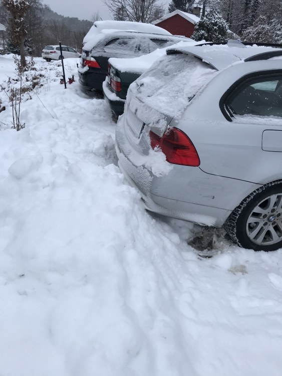 Vi er kommet til torsdag og uken nærmer seg slutten her og vi har jo fått litt snø her og kulde ,ikke det voldsomme greiene men nok til at vi kan si vi har vinter og typiske vinterveier hvertfall enkelte plasser. Jeg har funnet ut litt i det 27 årene jeg har vært sammen med kona,det jeg mener om god vinterbil trenger ikke å være noe god bil for henne . Mtp all den møkka hun har rullet rundt fra vi ble sammen og videre ,så har hun fått testet det meste 😊 Så hva er vel bedre enn å få et svar av ei som er totalt likegyldig til kjøretøy ? Som sagt veien hun har den består av is og snø hele veien og kan tidvis være utfordrende ,men hun er god bak rattet og klarer seg fint, Jeg spurte hvordan e91en var for henne og hun svarer at denne er suveren på vinterføret ,tenker ikke på at jeg kjører på glatta sier hun og det er jo en god ting 😊 Jeg mener de bruker jo aldri å være sene om å si ifra når ting er møkk ikke sant ? Så med nye vinterhjul foran og greie bak kan man konstatere at den fungerer på vinterføret for henne . Og så må jeg ha skvettlapper foran og her ser dere hvorfor : Med denne snøen som er nå blir det fort snødekt bak : Hverdagen : Og i kjent stil må man sjekke ut ting her : Alt ok: Igjen sommerens jobb holder delvis fortsatt 😊. Fant frem diagnose for å se at alt var greit og på motordel: Men jeg har endel feilkoder med sånn K-can og det flere plasser som feks her : Og det er jo rart for alt virker utifra det jeg kan se. Ligger både på takluke ,ja mye men igjen alt er iorden . Utifra googling så er det noe modul greier ,ledningstrøbbel ,radio enhet osv osv . Noen som kan gi meg tips ? Denne og : Foruten auc sensor ,sirkulasjonspumpe så er jo alt iorden så skjønner ikke hvorfor jeg har de feilkodene.. Jo forresten feil på tredje bremselys og men igjen alt virker 😊 Burde ikke bruke tid på det men jeg liker ikke røde varsler . Ellers igjen ,så brukes den jo flittig her av alle og til helga skal den brukes da jeg skal til Tvedestrand på fest med barndomskamerater . Detver jo en fordel for de andre at jeg alltid melder meg som sjåfør pga etter 8,5 mnd uten kjørerett ,vil man kjøre hele tiden . Var friskt idag tre km ifra meg idag . Fikk denne fra kona: Var 10 hos meg men i år så skal jeg slutte og klage over vinter . Jeg hater det som et helsike ,men jeg får heller tenke at jeg er heldig som får oppleve vinter og alle årstider og faktisk føle den . Det er ikke en selvfølge etter alt som skjedde 😩 Uansett så får jeg etterhvert se litt på mer av disse feilkodene for vært gøy og sett hva det er.