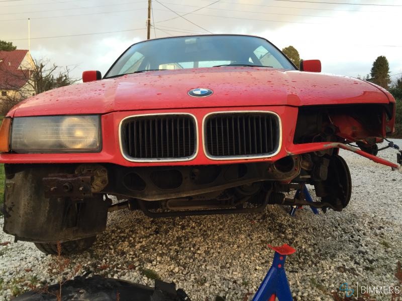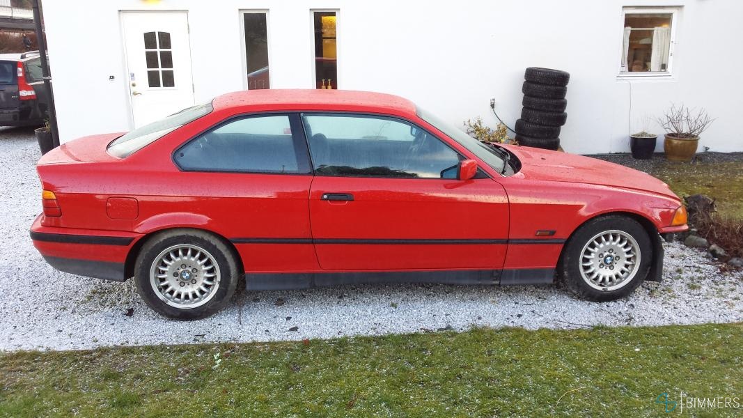 Bilen ble importert av meg fra Tyskland i 2001. Det dreier seg om en rød 320i coupe som ble førstegangsregistrert måned 12 i 1992. Dette er med andre ord en 1993-modell med Vanos-motor. Jeg er andre eier og bilen har siden 2001 kun vært kjørt av meg med respekt og omtanke. Aldri høyt turtall på kald motor osv. Bilen er godt vedlikeholdt og fikk ny lakk sommeren 2013. Da ble også det som var av rust fjernet. Det er dog kommet noe tilbake på panseret og litt på venstre forskjerm (etter kollisjonen).