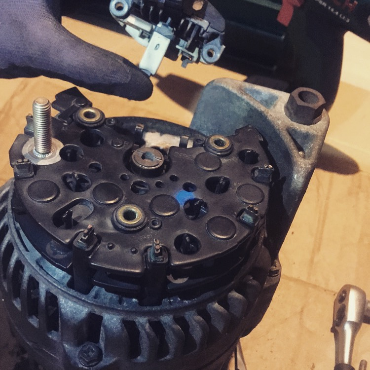 Dynamo er fra en 1997 528iA modell som har gått knappe 85000km. Dynamoen er i veldig god stand og er ikke lengre å få tak i via BMW sin katalog. Dele.nr. 1231 1 740 629. Passer til de aller fleste E38/39 bensinmotorer, blant annet 535/735i Den ble tatt ut av meg for to dager siden da jeg trodde det var lageret som var gåent men det viste seg å være den mekaniske strammeren som er rett ved siden av, en tabbe av meg. Lydene er ganske like så jeg ble dessverre lurt av lyden. Jeg har kjøpt ny Bosch dynamo som står i nå så derfor har jeg ikke bruk for denne. De er veldig dyre hvis en skal kjøpe ny og bare panten til Bosch er på 1250kr. Har fått pris på en 140Amp på alt fra 6-8500kr forskjellige steder. Jeg holder til i Bergen. Til de som er interessert selger jeg evt istedetfor den nye som står i bilen nå til 3500kr som er en Bosch 120Amp kjøpt hos GS Bildeler forrige uke. Pris ny er 5500kr PM