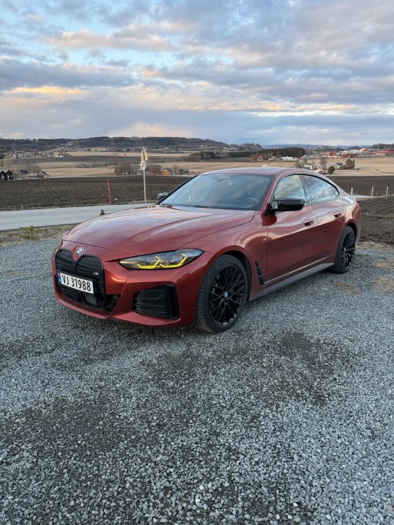 Herved også på el-bil kjøret🖐️ Da var jeg sannelig på entusiast kjøret igjen, etter noen år med mer nøkternt bilhold. Etter siste tråd her inne på min F06 650i så hadde jeg et kortvarig opphold bak rattet på en BMW i3, før det så ble G30 540i et års tid. Fantastisk bil på alle måter! Kjente dog på at det kostet mer enn det smakte, og savnet etter V8 tok for mye plass. Gikk så til innkjøp av et kompromis i form av en 2018 mod F36 420i. En noe rimeligere bil som fortsatt leverte kjøreglede og var praktisk som daily driver.😀 Valget denne gangen sto mellom en G30 M550i med V8 og denne i4 M50. "Fornuften" seiret, og jeg er herved lykkelig eier av en i4 M50 i fargen Sunset Orange, som jeg synes kler bilen utrolig godt!🤩 i4 imponerer stadig, for en fantastisk kjøremaskin! Et hav av krefter "under panseret" og bilen sitter som støpt på veien. Det at bilen veier nært 2,3tonn synes jeg er godt kamuflert. Har nå eid bilen såvidt en måneds tid. Jeg har bare gode ord om bilen for øyeblikket, ved unntak av noe pirk som f.eks at jeg ikke liker de blå detaljene i interiøret og sånne småting. Men det er jo bare gøy å ta tak i😎Savner mer trøkk i subwoofer fra Harman Kardon anlegget, det spilte faktisk bedre i F36'en. Antakelig pga. sub under setene. Det utgår vel pga. batteripakken i denne, og sub er dermed plassert under bagasjerommet. Hadde jeg bestillt bilen fra fabrikk hadde jeg nok valgt et noe sprekere interiør, men det sorte Vernasca interiøret er i alle fall et nokså trygt valg. Generell Info: 2023/02 G26 i4 M50 35 600 km Sunset Orange - C1X Sort Vernasca Skinn interiør Utstyrsliste Jeg har i tradisjon tro surfet omkring på diverse forum og fått en hau av inspirasjon til små mods og retrofits eller hva en skal kalle det. Noe er allerede tatt tak i, og ønskeslista har noen punkter det også. Har ikke satt meg inn i om alt er mulig uten videre styr, men liker å tro at det meste lar seg gjøre. @Saltkjelen , Fikser du de @%&#'s blinklys hendlene?😆 Planer (x) Utført (x) Ikke utført (x) - Bytte M 50års emblem med vanlige BMW emblem (x) - Velour Matter (x) - Flytende BMW senterkopper (x) Bytte blå girkule detaljer med aluminium (x) Bytte ut blå start/stopp knapp med aluminium (x) LCI-Grill (x) Bytte ratt airbag (for å få vekk blå ring rundt BMW Logo) (x) Senk? Jeg er alltid på utkikk etter tips og triks om hva som er mulig å få til med i4, har ikke rukket å pløye igjennom hele i4 tråden enda. Jeg begynner vel å stille en del spørsmål når tråden er ferdig lest, i frykt for å stille spørsmål som det allerede finnes svar på.🤓 Også litt bilder da! Her med 18" Vinterfelger. Kjent location, @mslello ? 19" Sommerfelger som medfulgte handelen. Jeg var noe skeptisk til sorte felger i frykt for at detaljene forsvinner. Meeen, jeg synes de funker. Synes det er litt mye luft i hjulbuen, men noe lavere ned mot bakken trenger den egentlig ikke.. Tips og råd mottas med takk! Også brannfakkelen da. Gule CSL-lys! Bilen ble solgt sånn, men jeg synes sannelig det funker mot Sunset Orange fargen. Fikk plutselig motivasjon til å montere hexagon belysning i garasjen og. Nei, dette var stas. Hyggelig å sjekke innom bimmers igjen etter noen år på gjerdet.😁