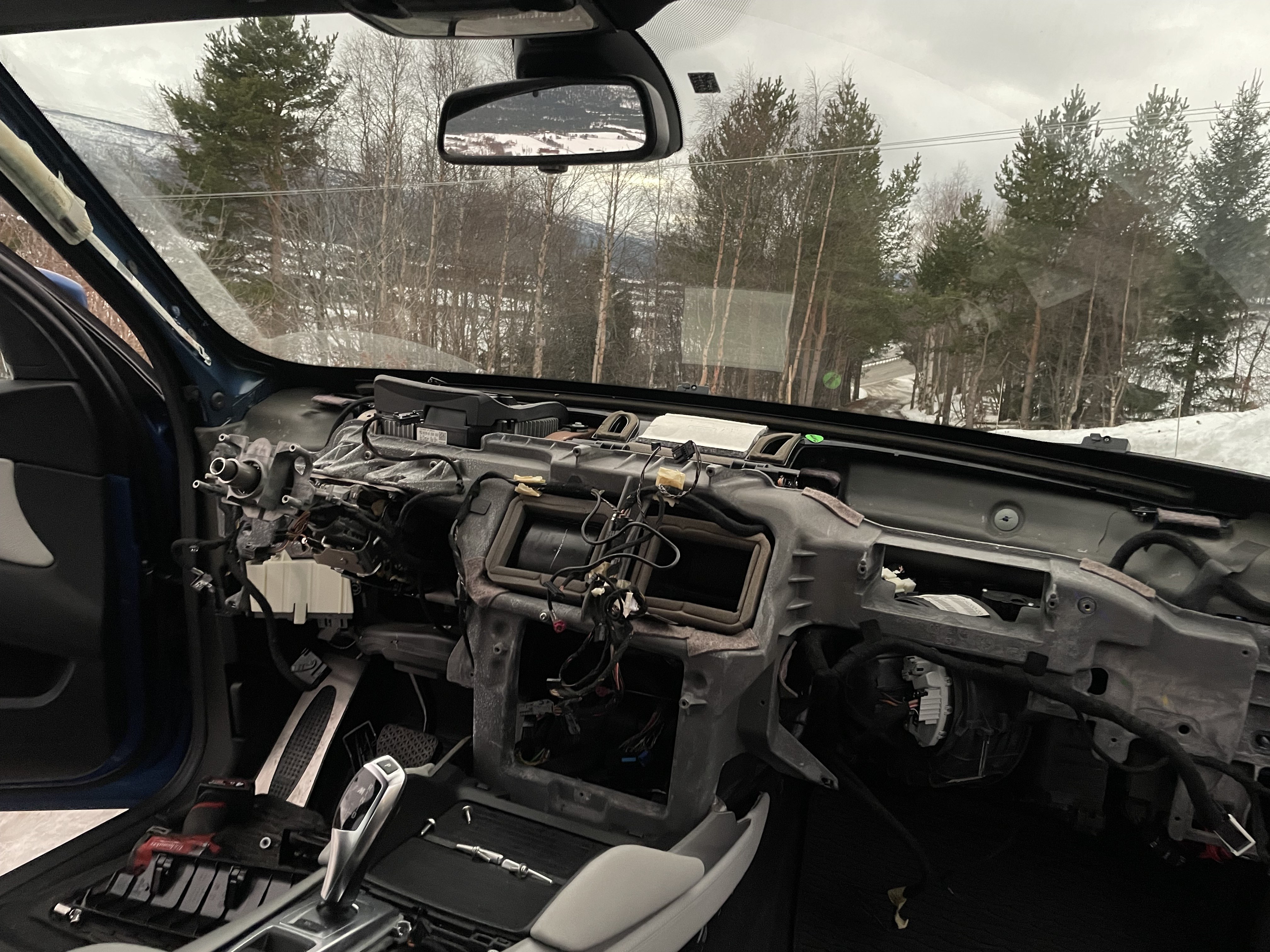 Det er begge airbag framme som skal byttes, for å bytte passasjersiden på dashbord ut. denne innkallingen begynte i 22/23, alle e70 skal inn. det ble også byttet en bolt på klimaanlegget som var aksjon på, men har ikke sett meg inn i nøyaktig hva og hvorfor. Litt arbeid å ta ut dash, bilder fra da jeg bytta på x5M