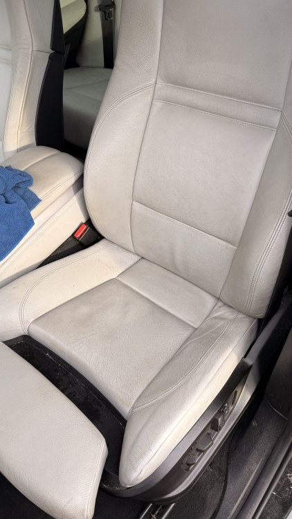 Vanskelig å se på bilde men interiøret er veldog møkkete, så prøvde å få det renset. Men var tom for swisswax sin rens så den jeg hadde til overs var ikke sterk nok. mellom setene var det mye rester fra Ørsta fett å frityr som ikke egnet seg på bildet, men ble kvitt det meste. Fikk det litt renere men det lukter ivertfall godt i bilen nåda. bilen hadde time på airbag innkaling på digereneset, så da ble det turen dit idag. Denne gangen tok det 3 timer imotsetning til nesten 2 måneder på x5M, alt i alt ser det ryddig ut så kan anbefale å ta den jobben her. Vet bmw estimerer 5 timer på jobben.