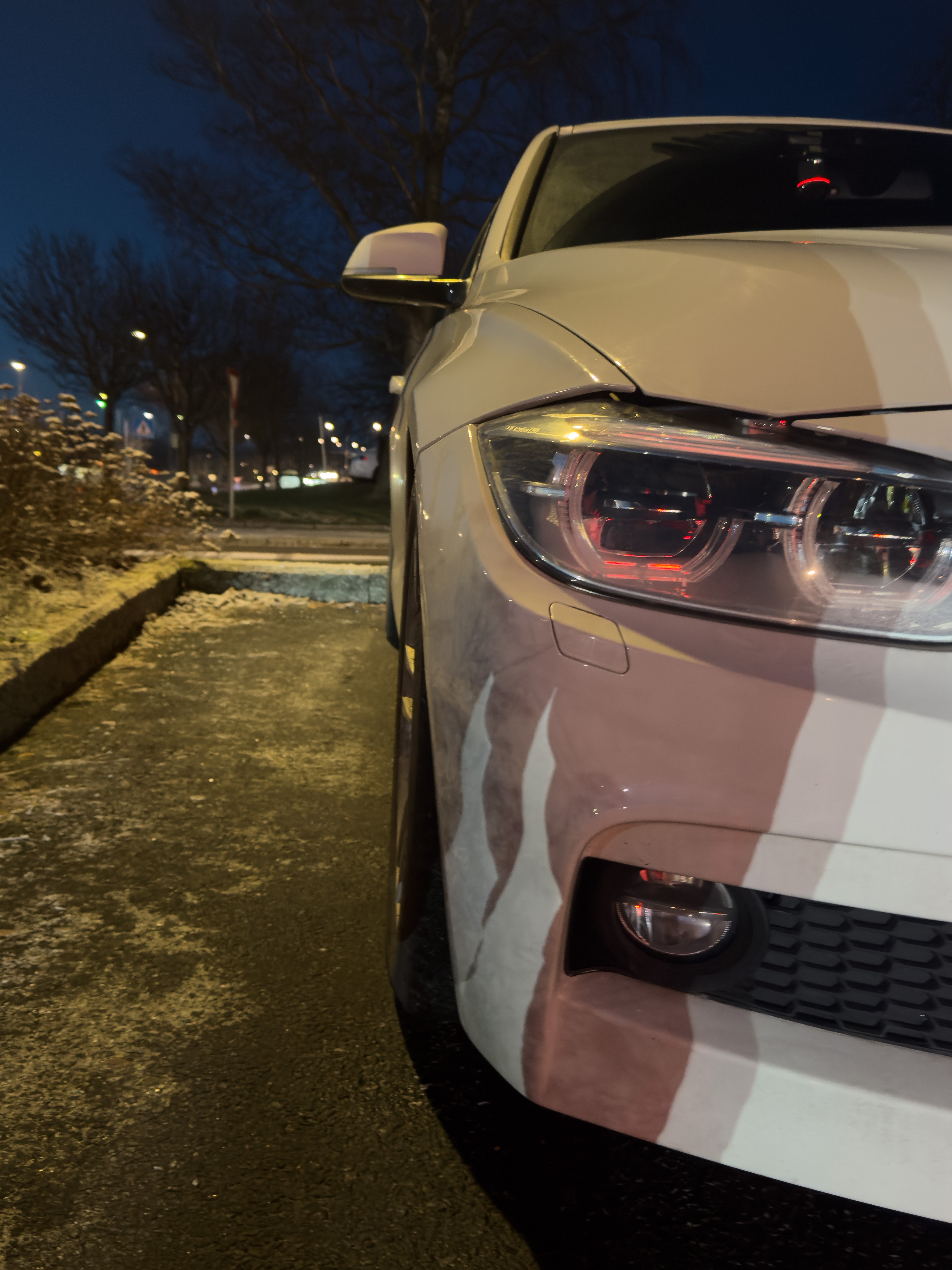 Dårlige bilder siden bilen er skitten og det var mørkt... Men jaja. Bilen gikk igjennom PKK med null feil idag. Samme time som EU kontrollen så ble det satt på M3 nedre kontroll armer som er 3cm bredere enn vanlig 3-serie armer, som gir bilen like mye camber foran som bak og stivere foringer. Er også satt på en ny Masata Aluminium chargepipe, bare så jeg ikke trenger å tenke på om den originale plastikk chargepipen en eller annen dag eksploderer.